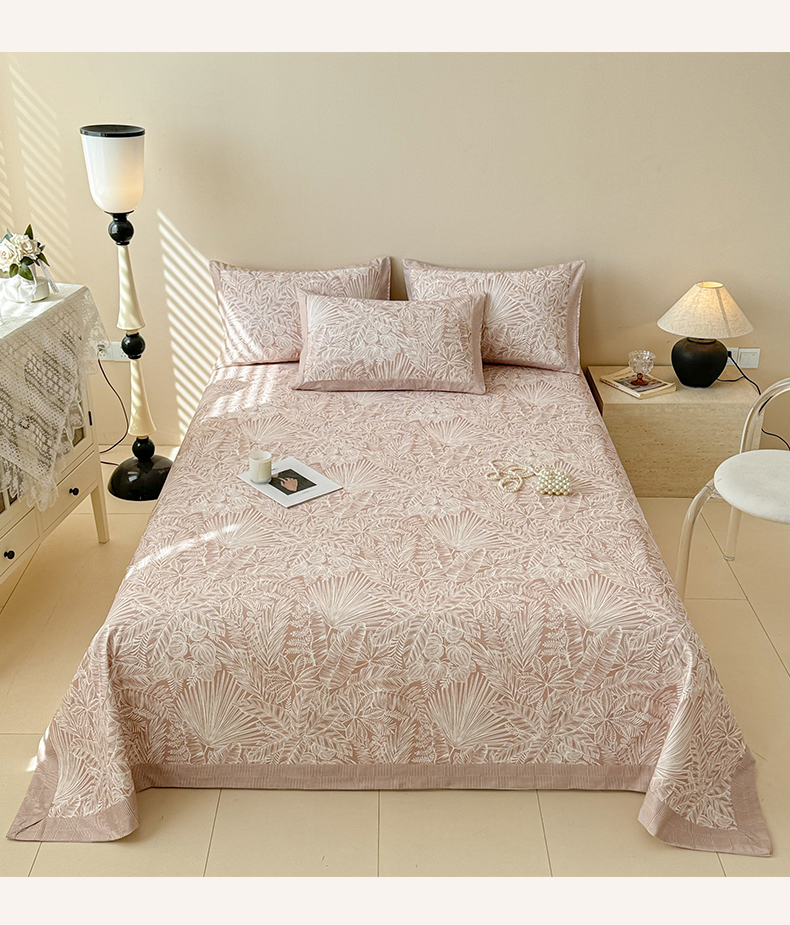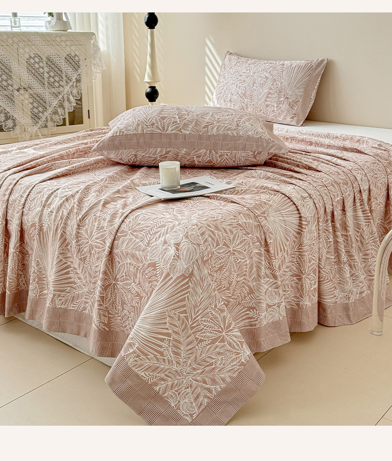 蓝邻家纺 2025新款100%新疆原棉粗布小清新拼角工艺款系列单床单 雨藤-咖