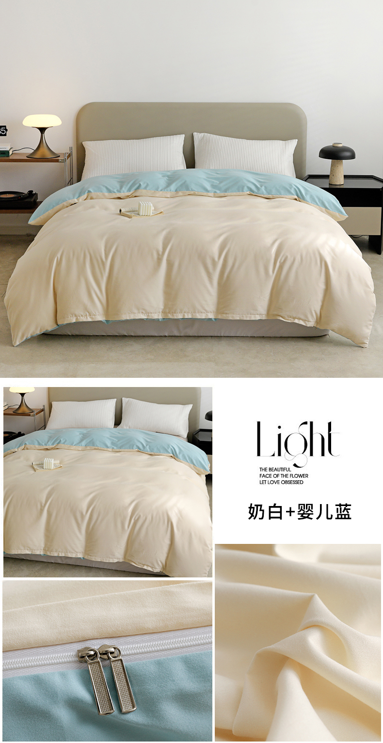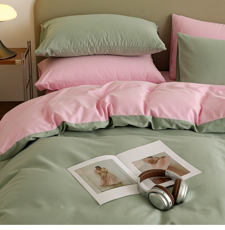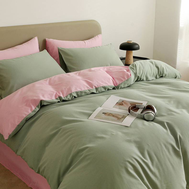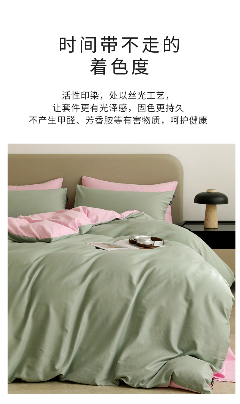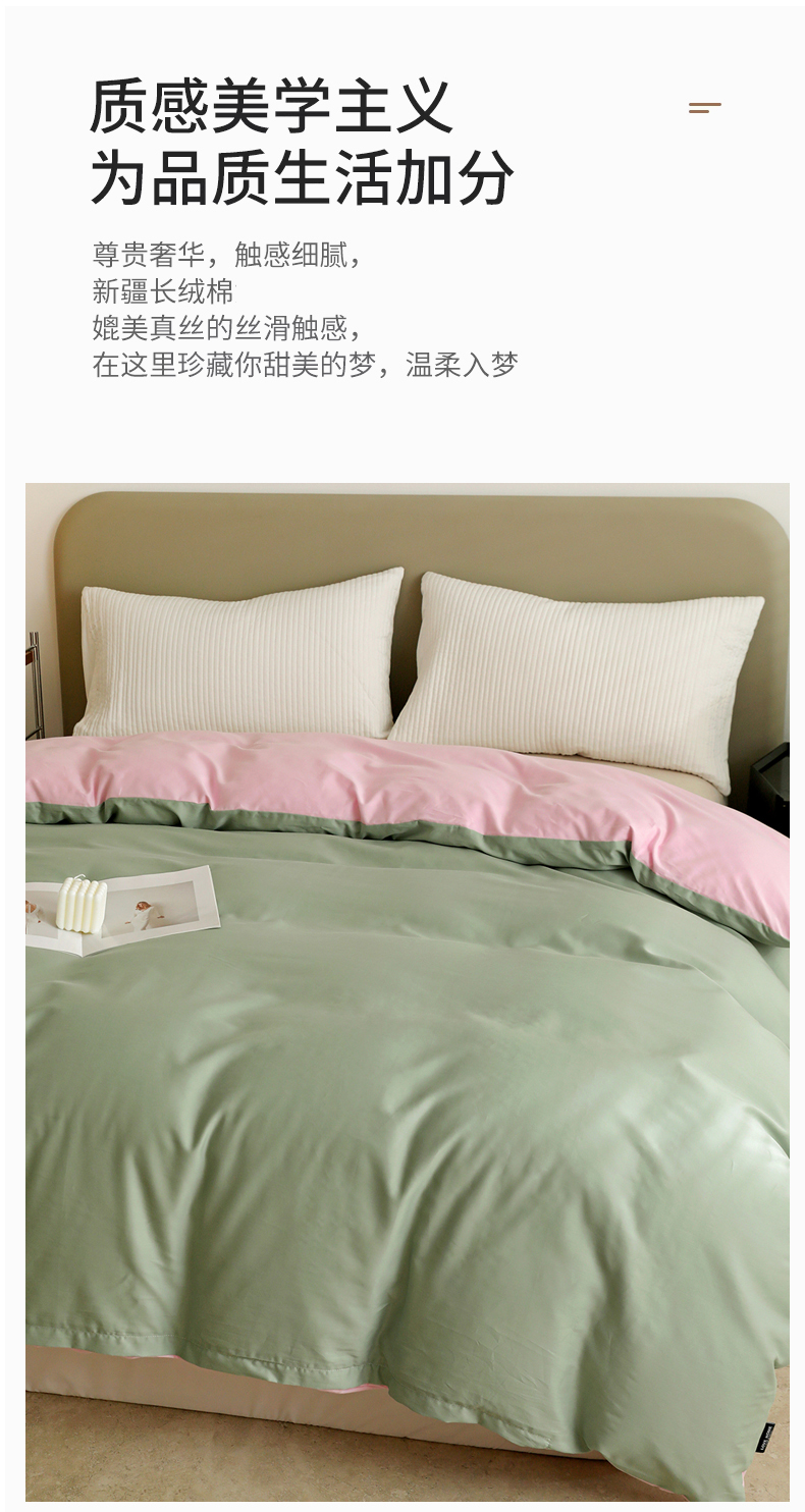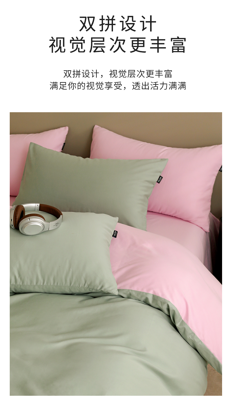 2025年纯色双拼60支纯棉被套 抹茶绿+白桃粉
