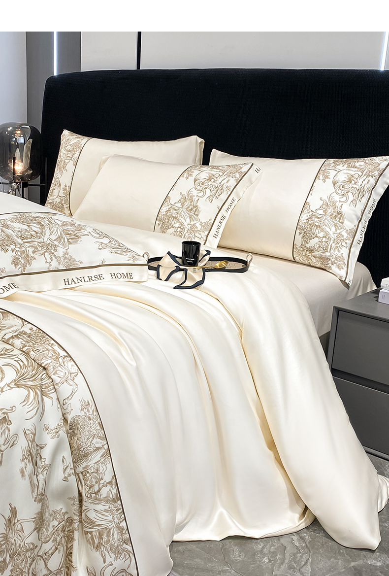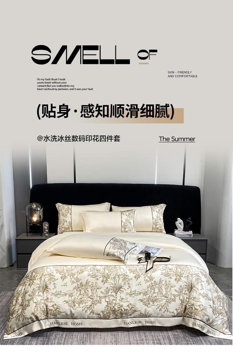 花愿(原花纪) 2025新款水洗冰丝印花四件套 索菲亚 奶昔白