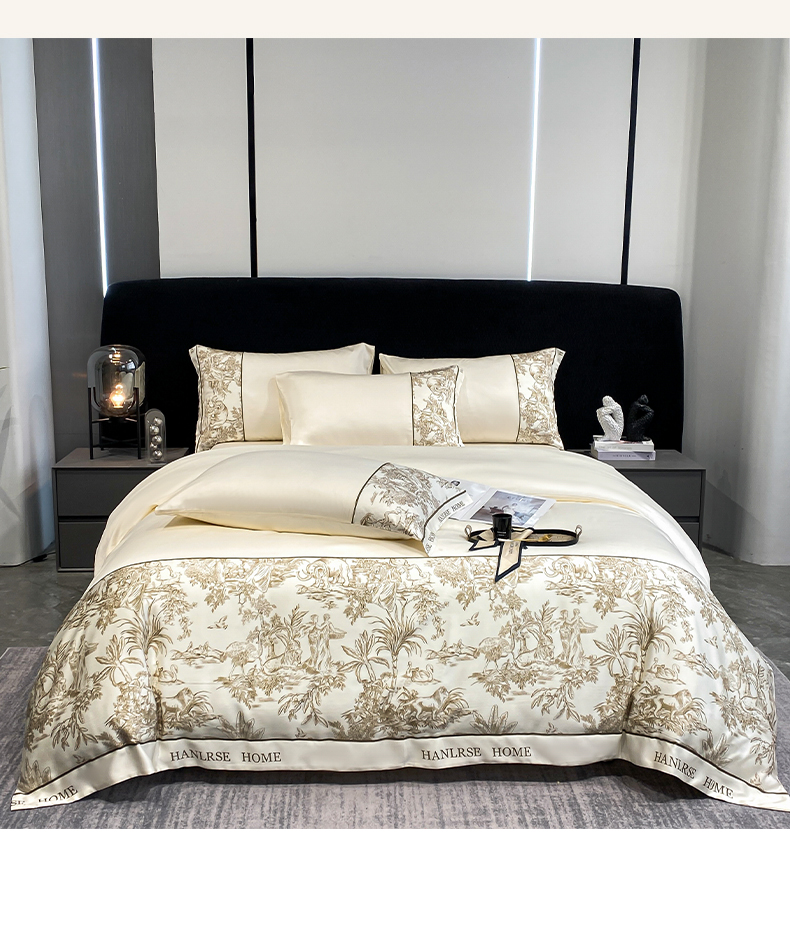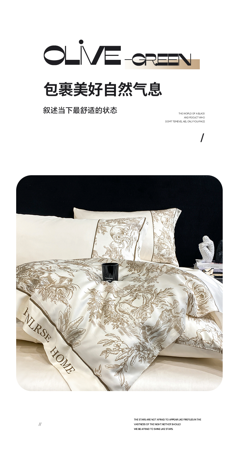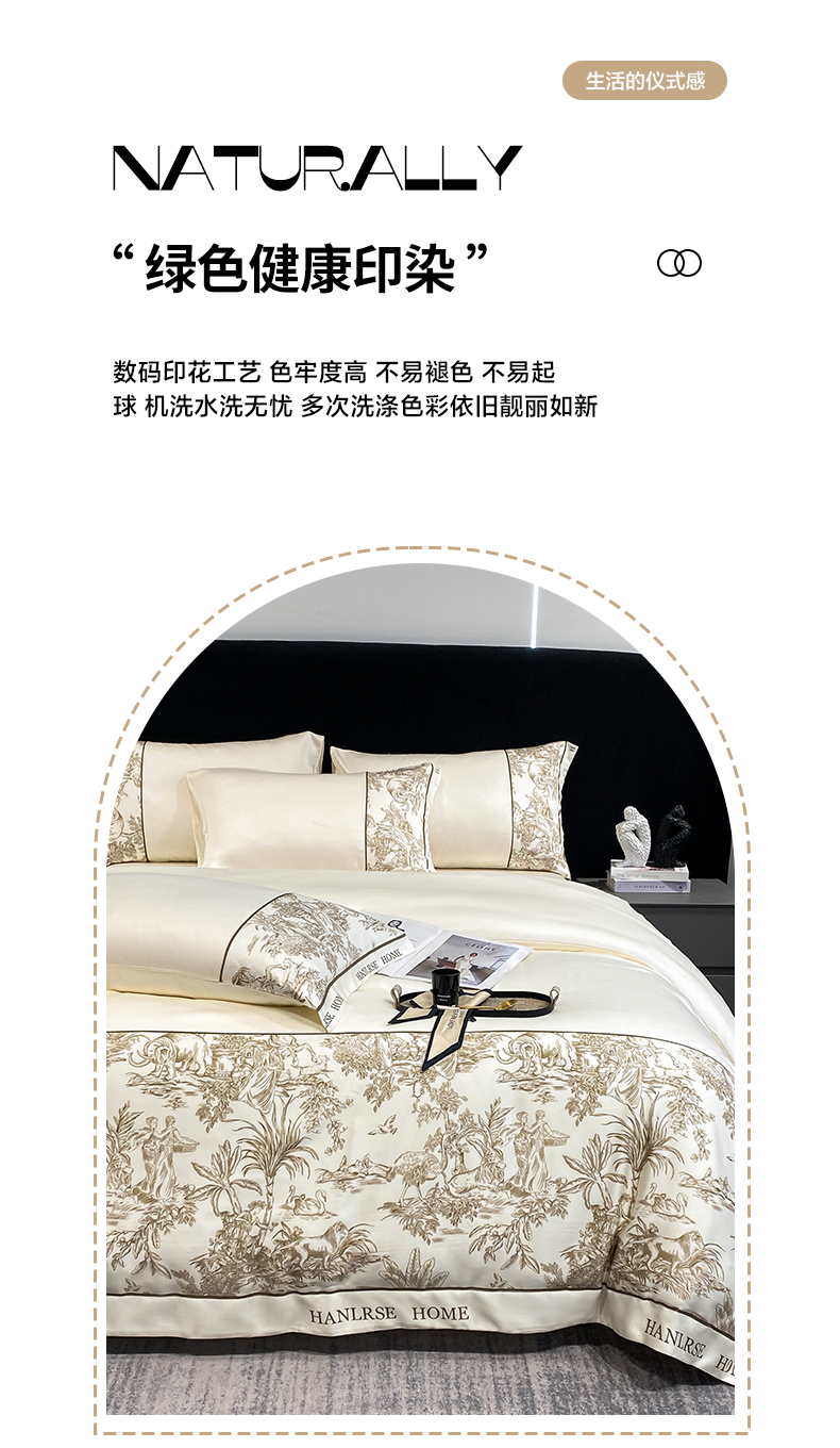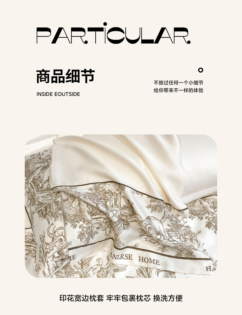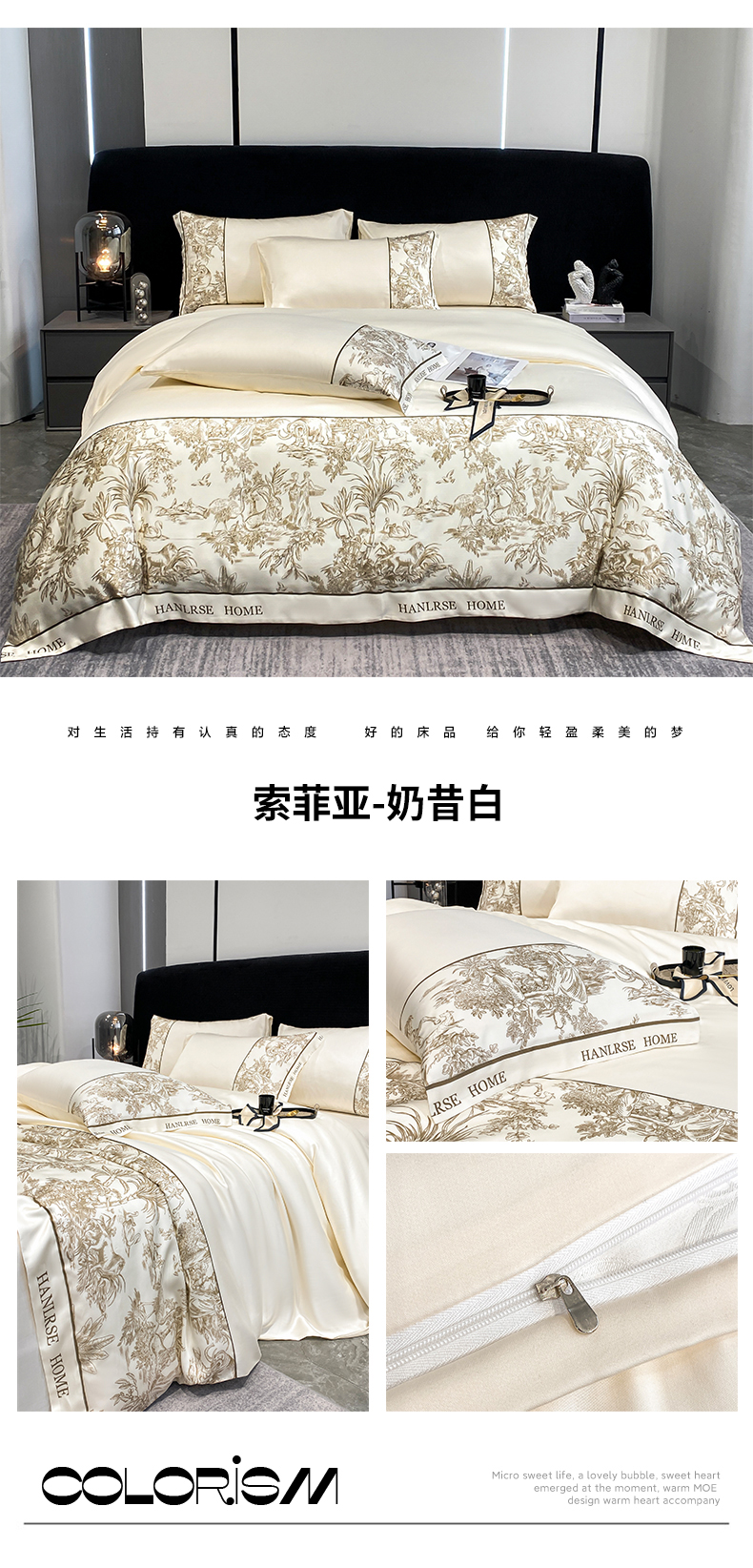 商品名称:花愿(原花纪) 2025新款水洗冰丝印花四件套 索菲亚 奶昔白