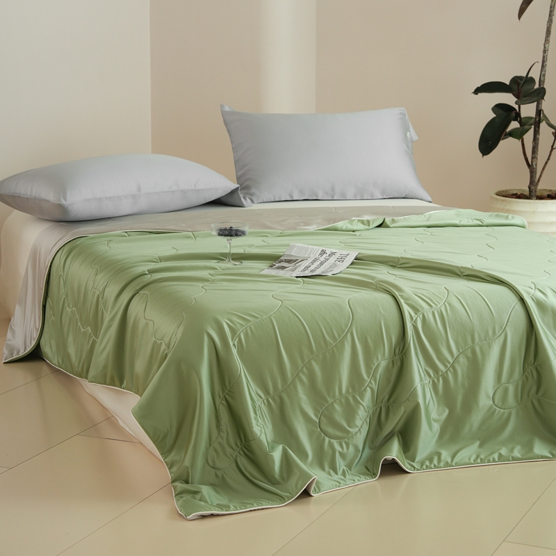 丽卡家纺2025新款冰丽丝锦氨凉感夏被子被芯 青草绿+浅银灰