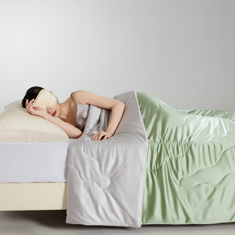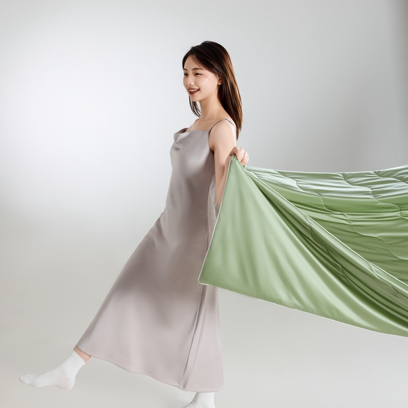 商品名称:丽卡家纺2025新款冰丽丝锦氨凉感夏被子被芯 青草绿+浅银灰