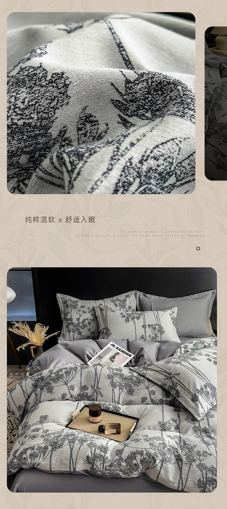 (总)倾慕 2025新款数码纯棉加厚磨毛产品系列四件套,蝶舞粉,蕾丝花粉,丽思黄,丽思兰,绿茵,梦幻屋紫,清风来咖,晚笙粉,云嘉粉,芷兰粉