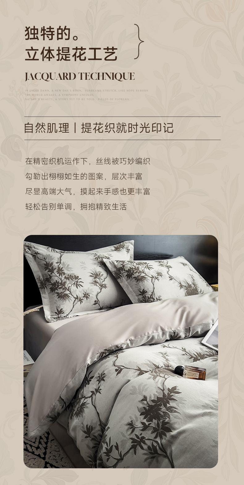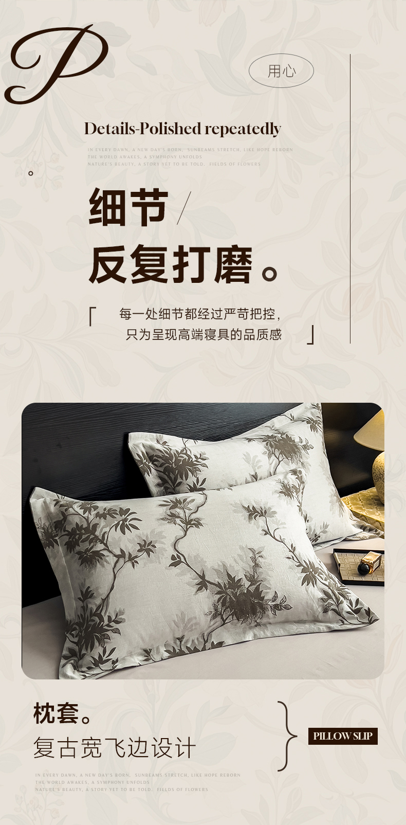 倾慕家纺 2025新款60S提花全棉单品枕套 南枝绿