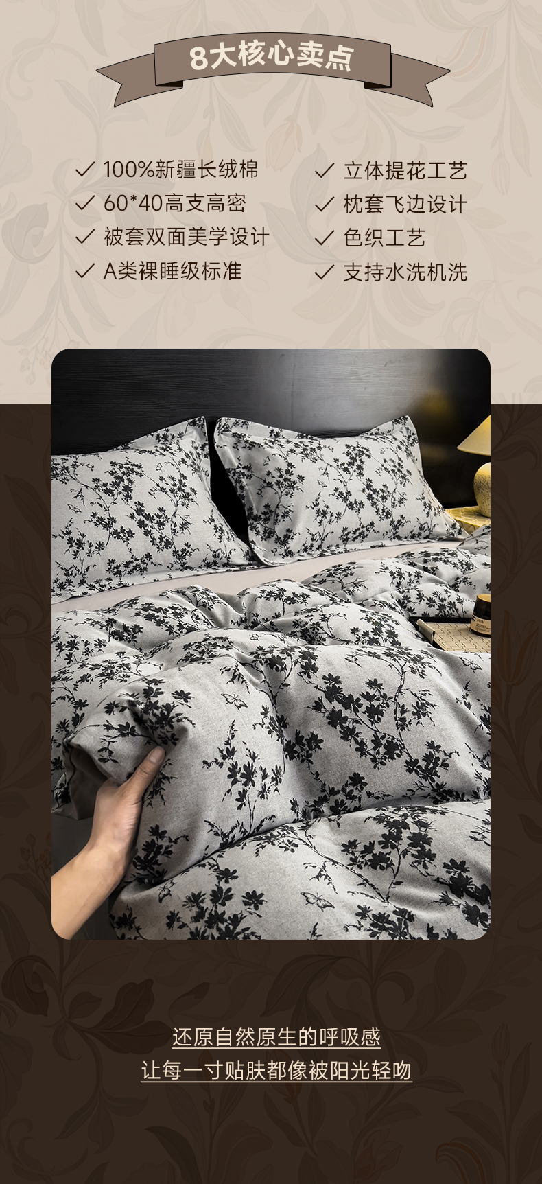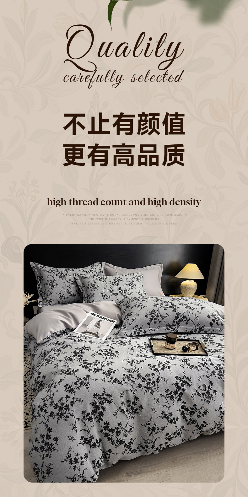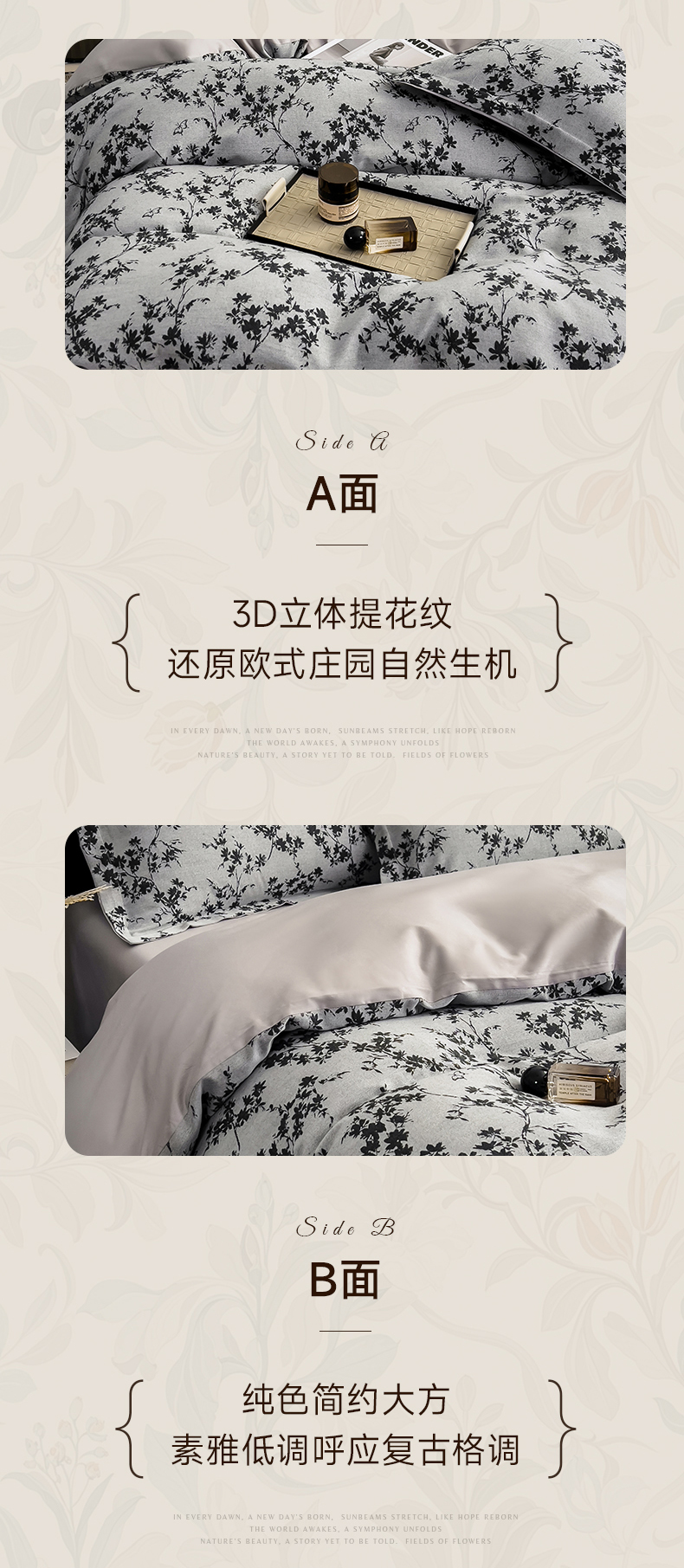 商品名称:倾慕家纺 2025新款60S提花全棉单品被套 爱玲说深灰