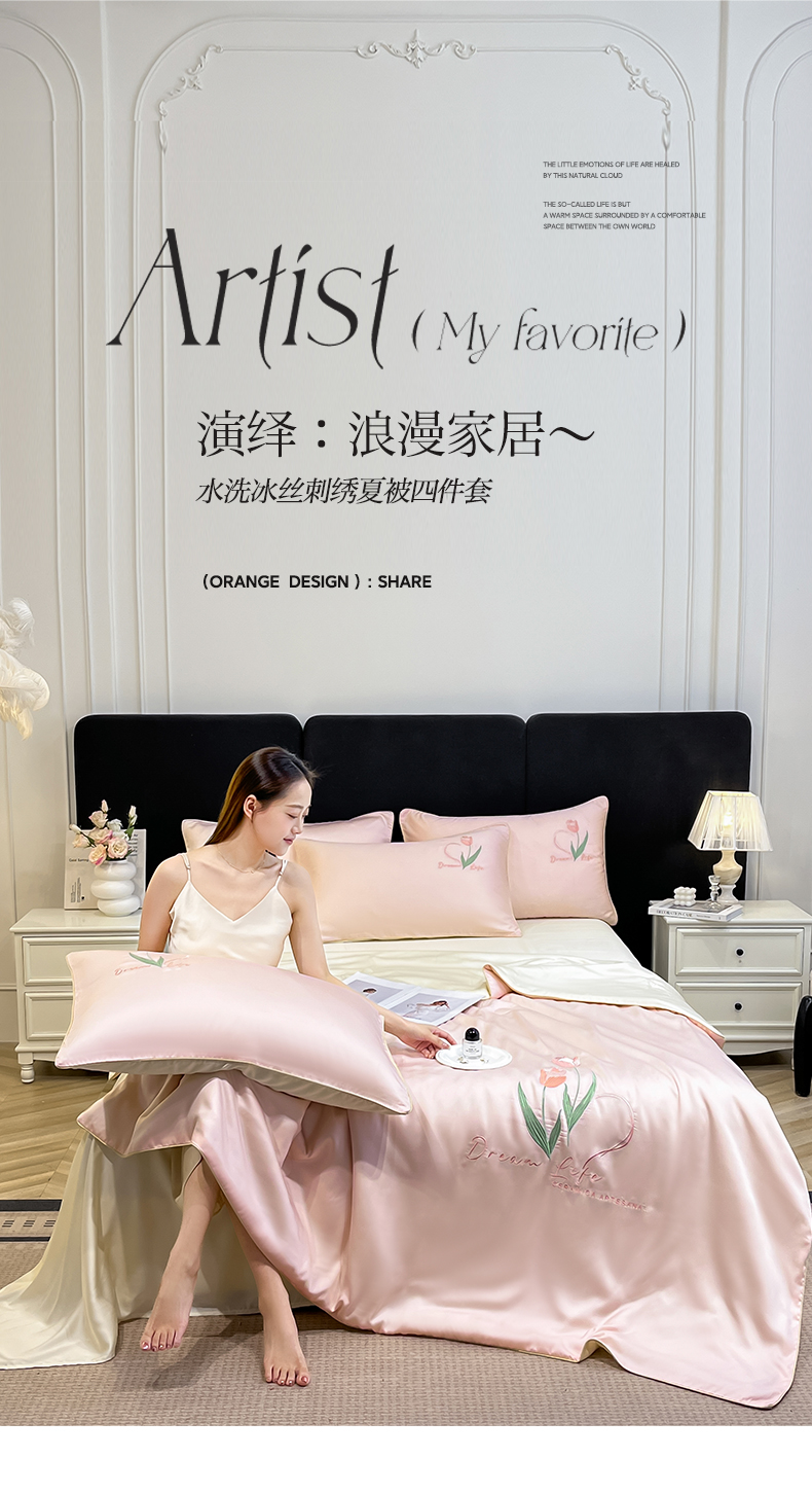 当前位置: 91家纺网 > 商品网购 > 床品套件 > 四件套 > 夏被四件套 > (总)如一 2025新款水洗冰丝刺绣麻绳夏被四件套花颜系列