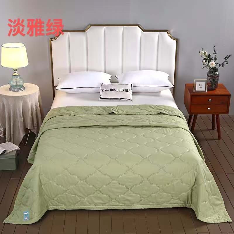 富之纹家纺 2025新款水洗棉亲肤棉超声波压花夏被直播供应链引流爆款 淡雅绿