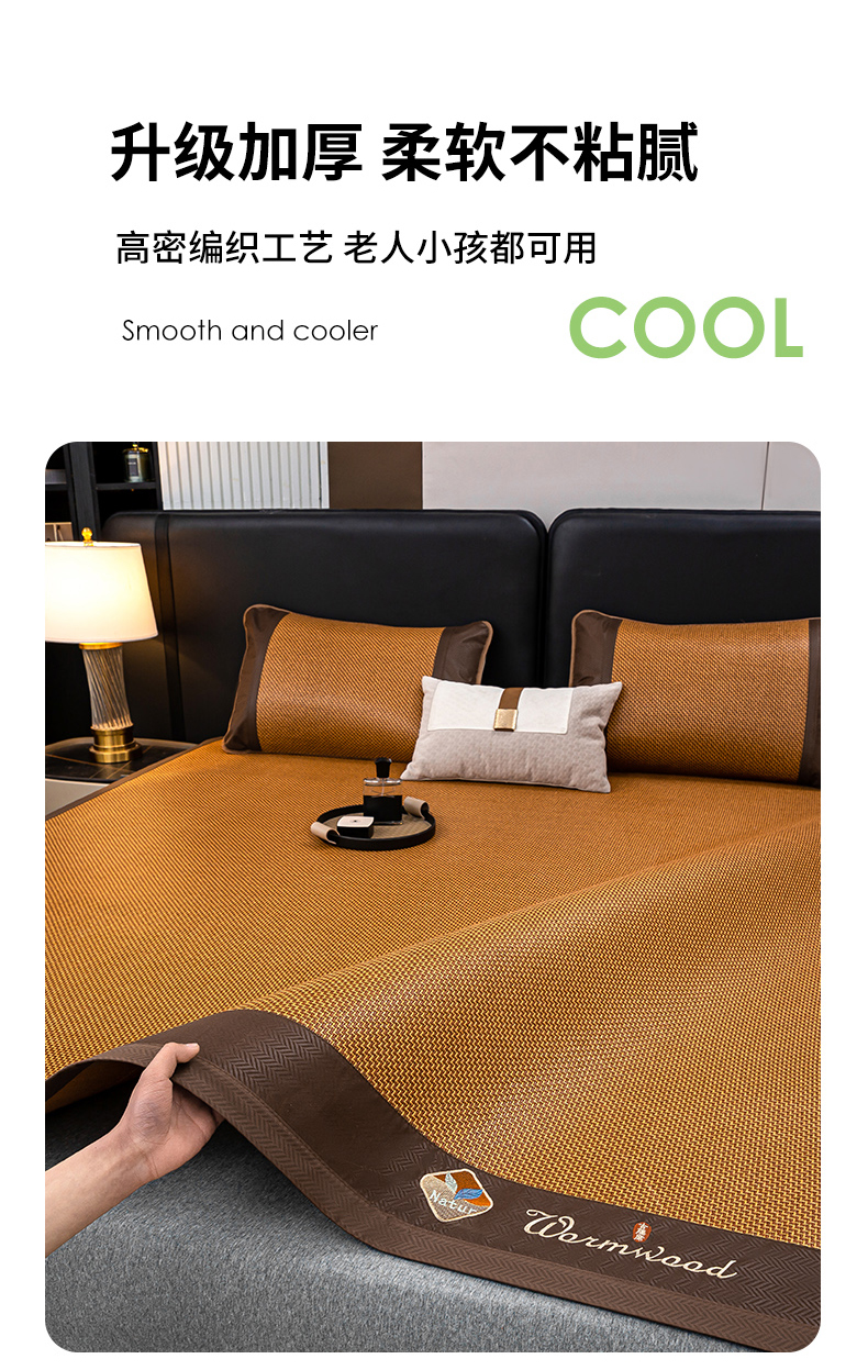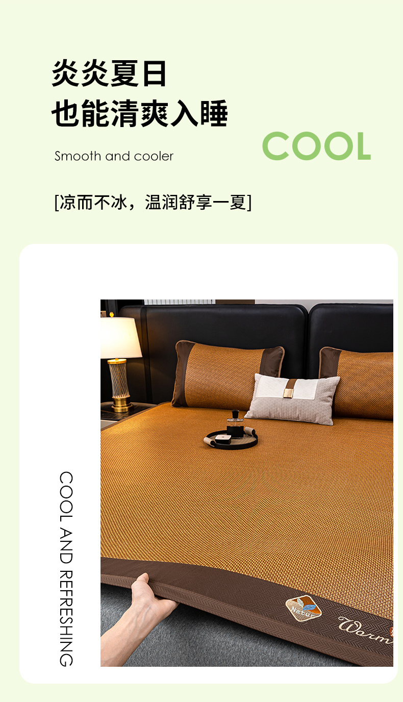 81号家纺 2025新款古藤席三件套凉席三件套 古藤席-冰爽咖