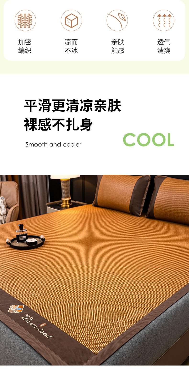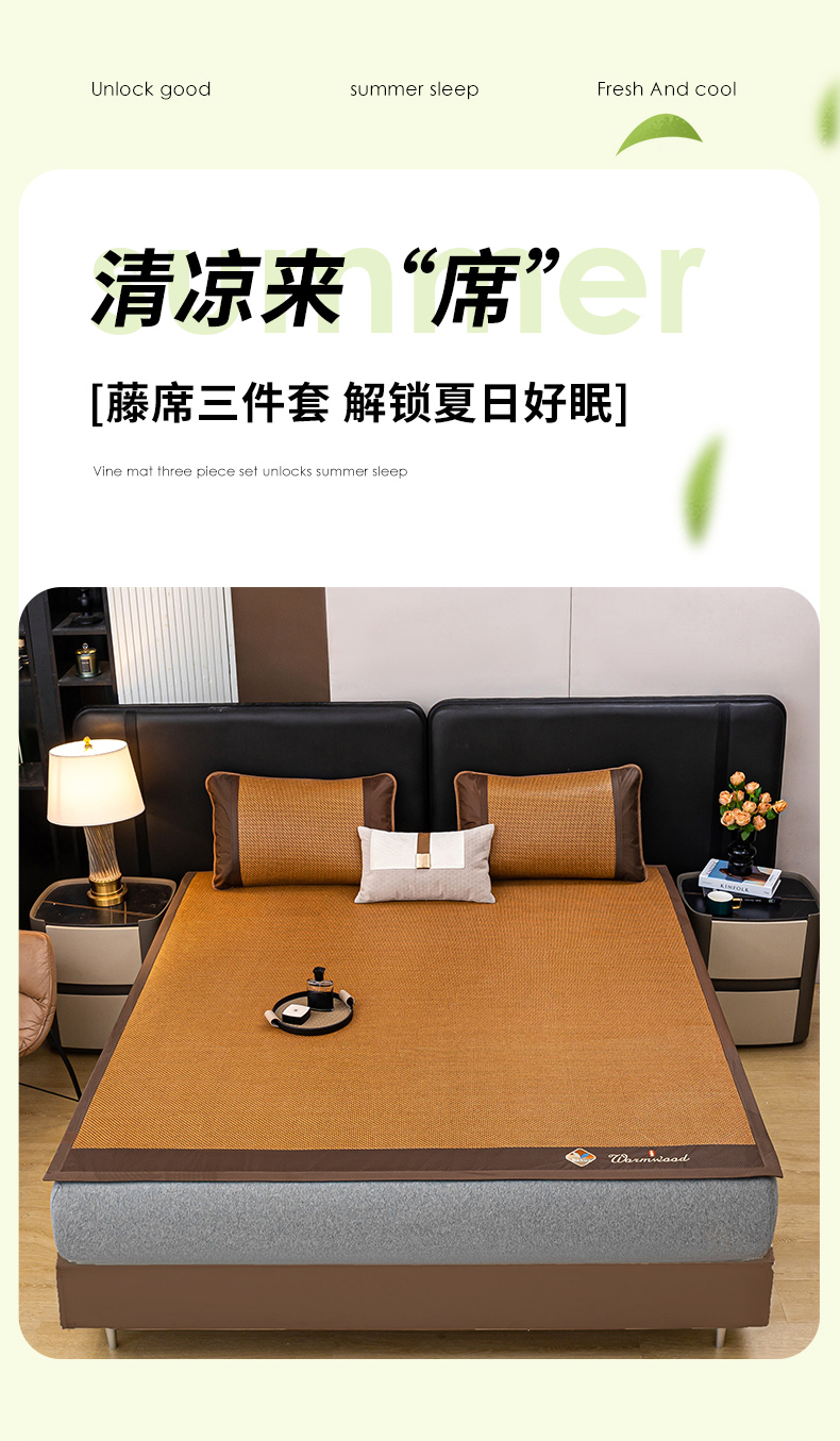 商品名称:81号家纺 2025新款古藤席三件套凉席三件套 古藤席-冰爽咖