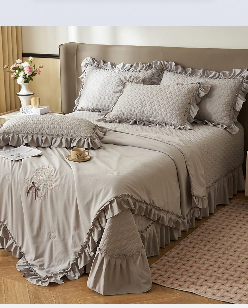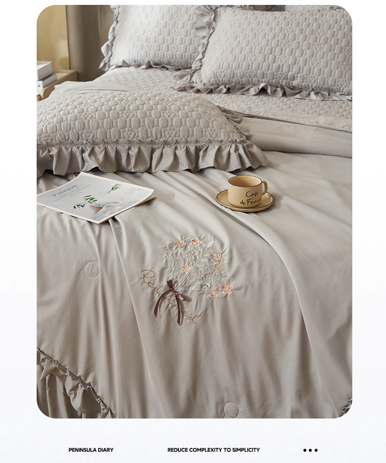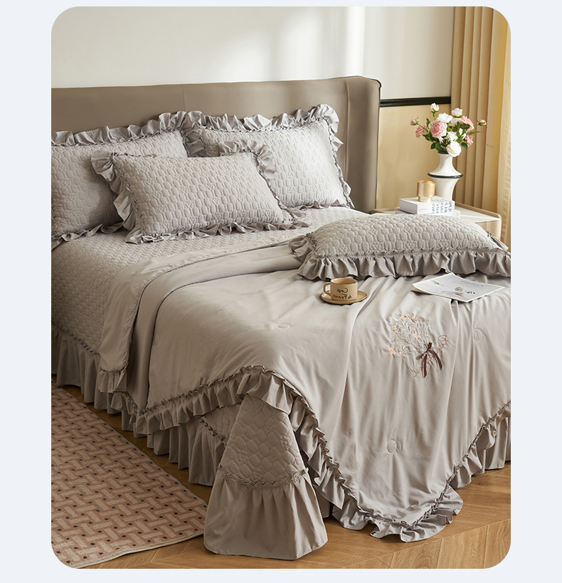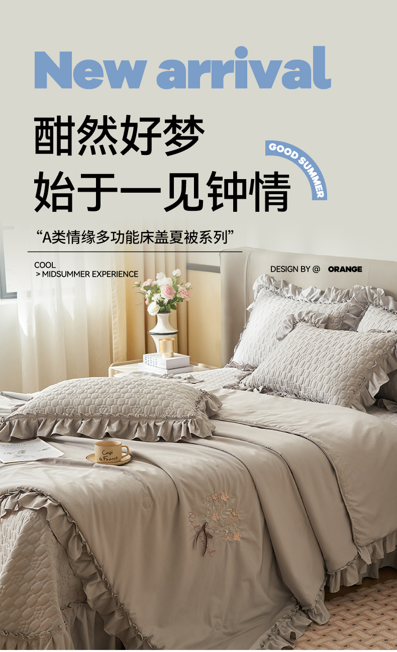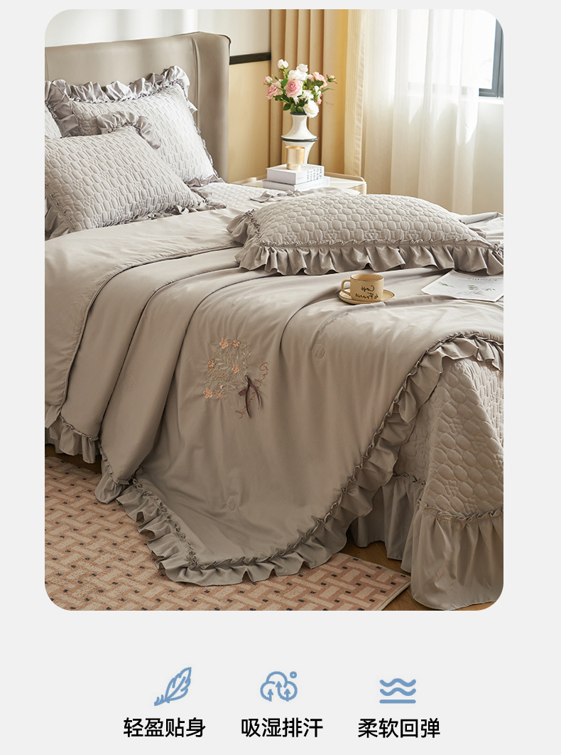 恒爱家纺 2025新款A类情缘多功能床盖四件套 时尚灰