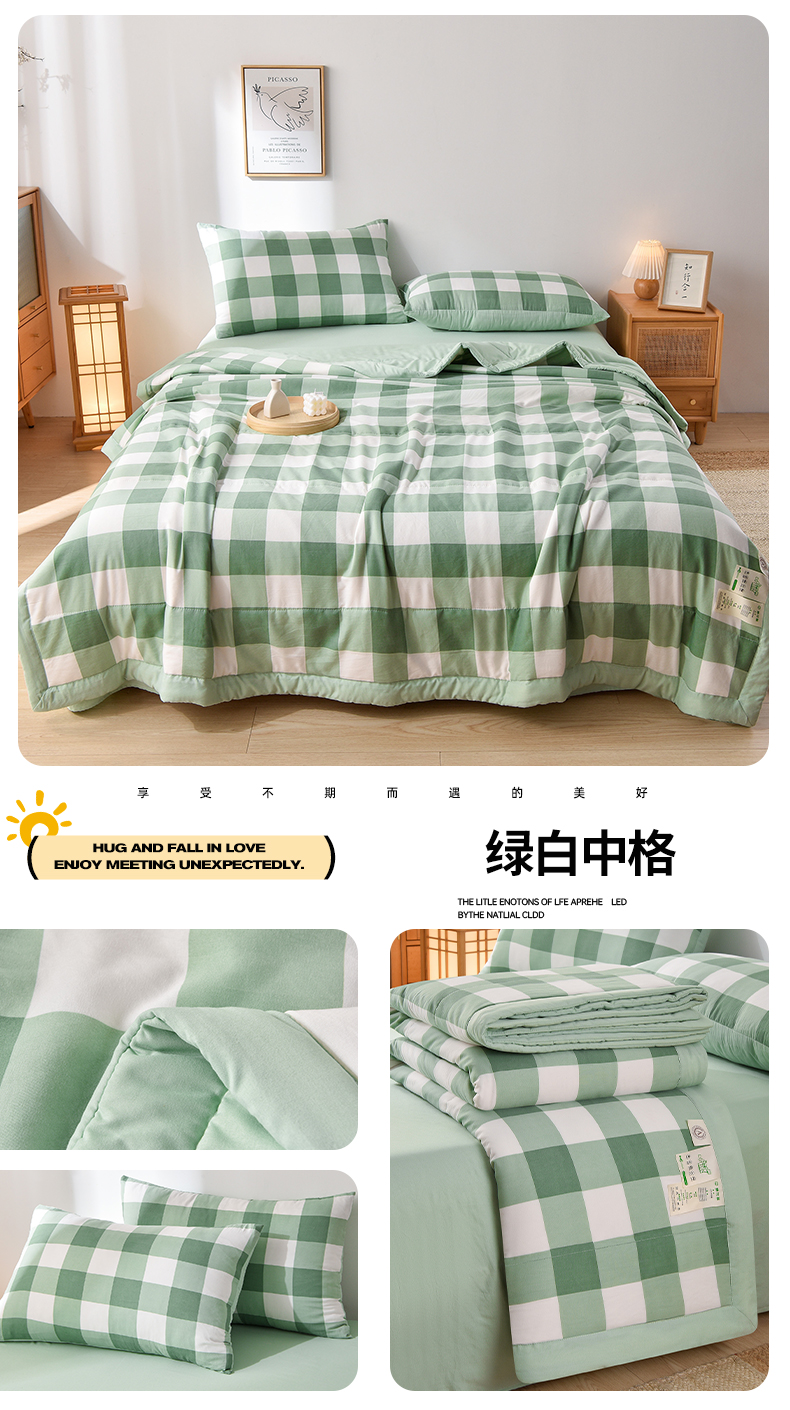 玉清坊 2025新款色织水洗棉新疆棉花夏被【支持一件代发】 绿白中格