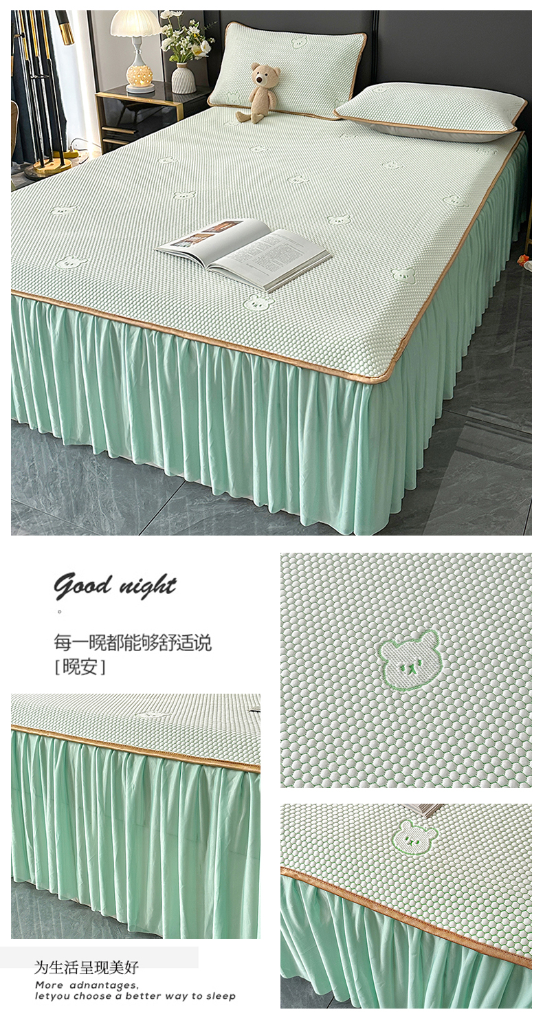 (总)爱洛家纺 2025新款凉感丝豆豆床裙席,粉玉~豆豆,粉玉~小熊,浅灰~豆豆,浅灰~小熊,浅天蓝~豆豆,浅天蓝小熊,水绿~豆豆,水绿小熊