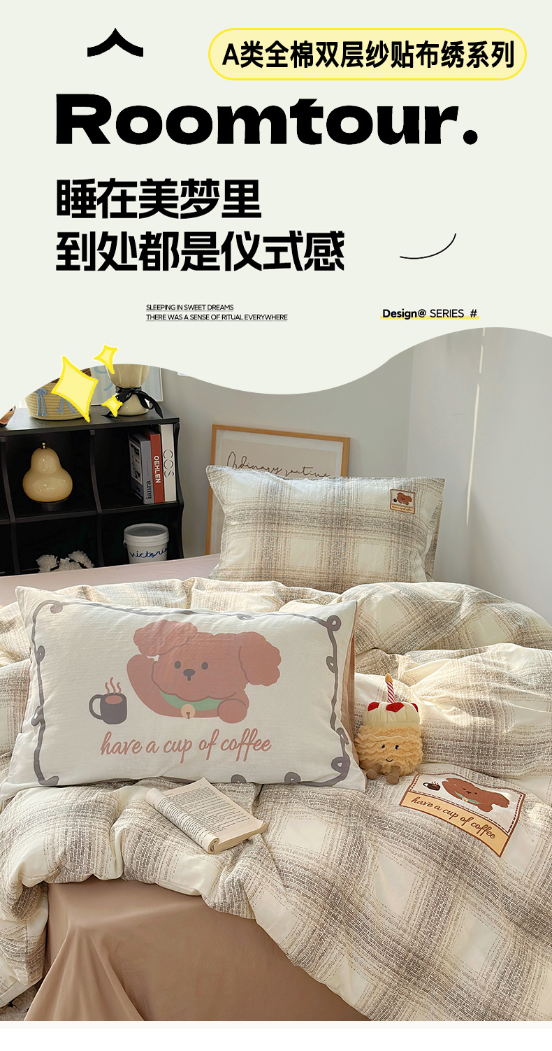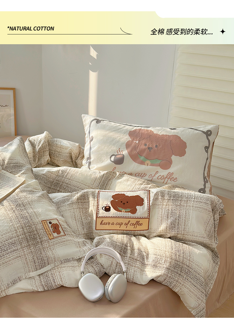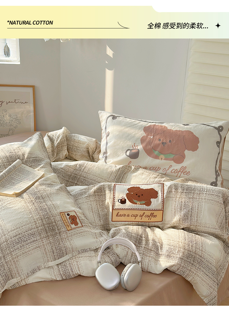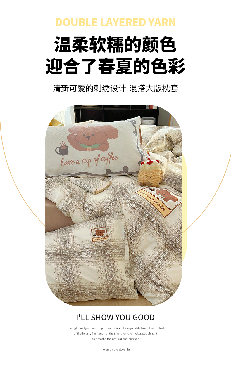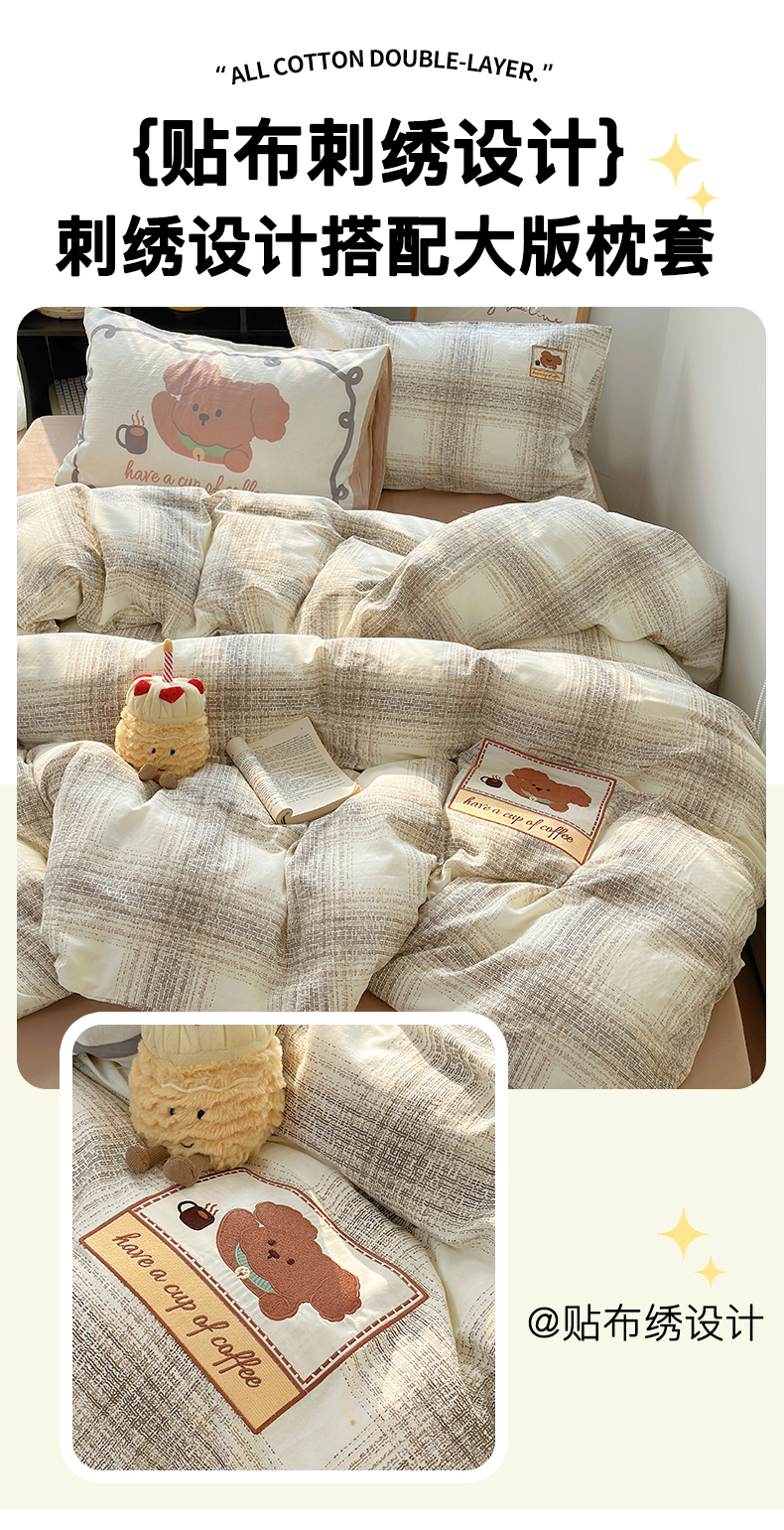 商品名称:TT.one 塔塔家居 2025新款全棉刺绣双层纱贴布绣四件套 咖啡小熊