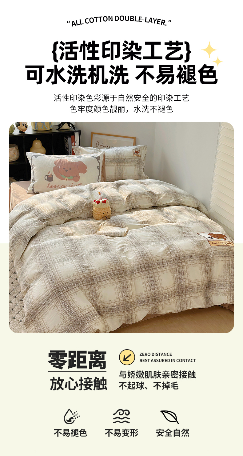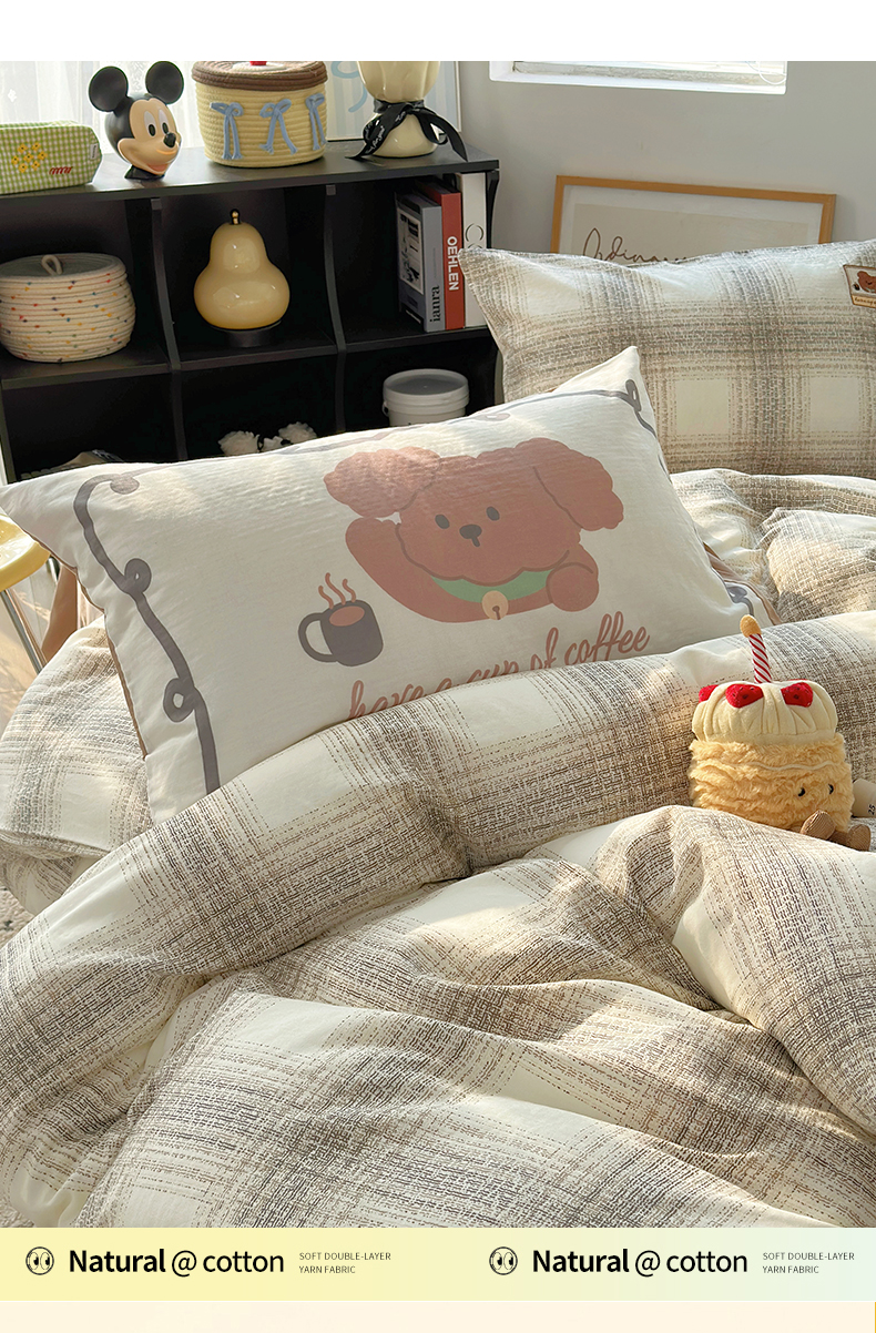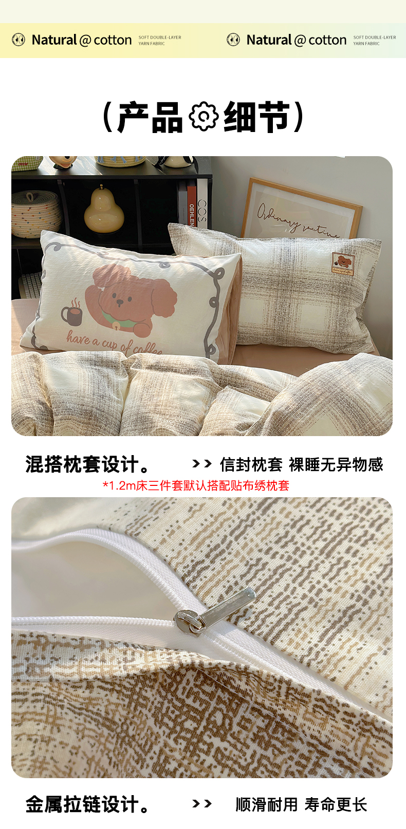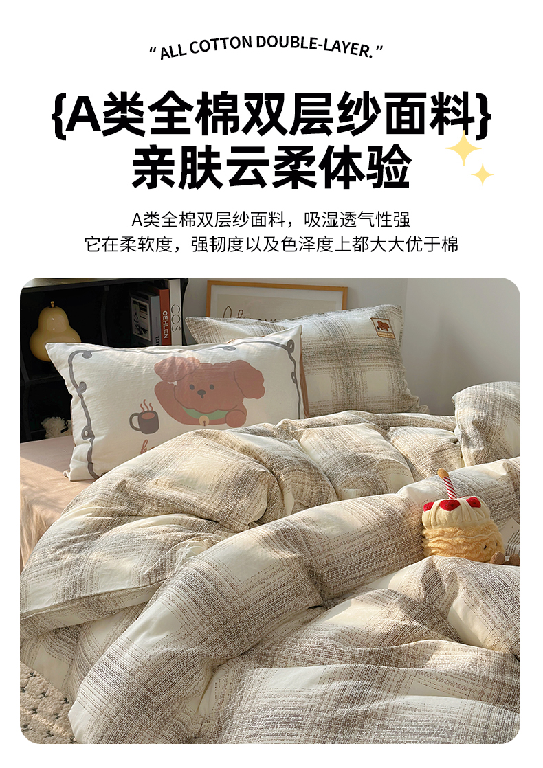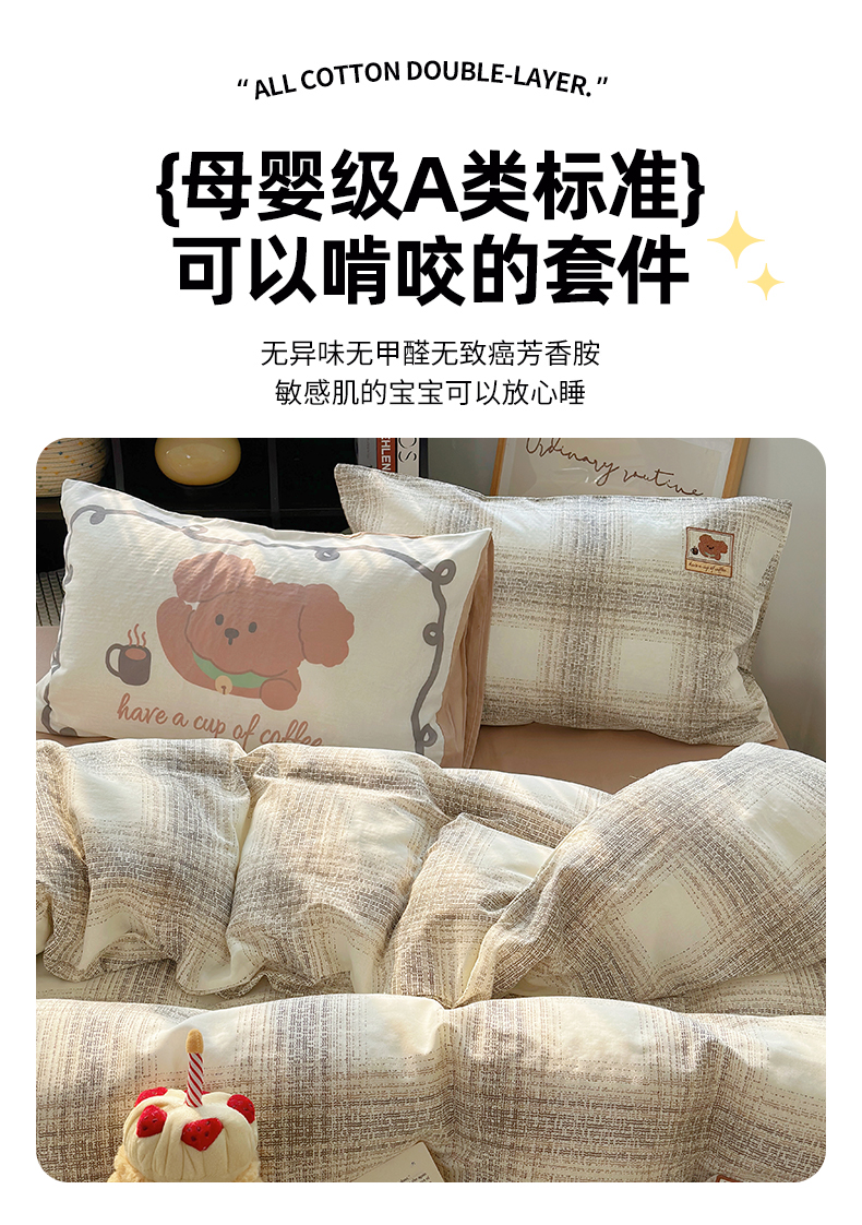 商品名称:TT.one 塔塔家居 2025新款全棉刺绣双层纱贴布绣四件套 咖啡小熊