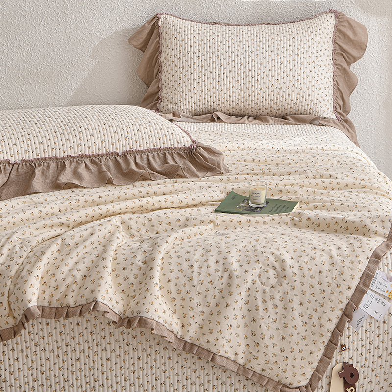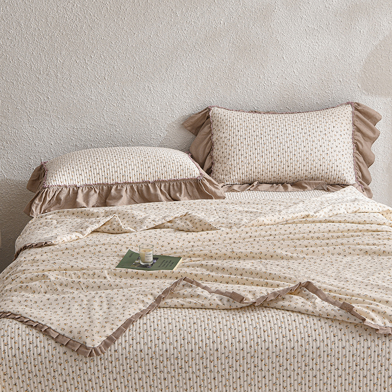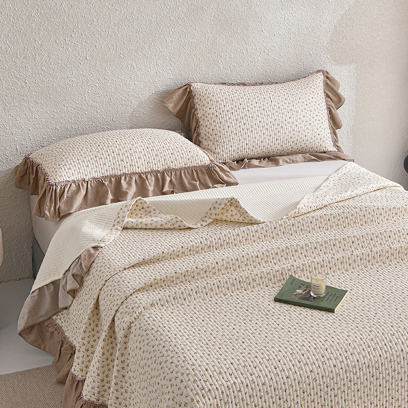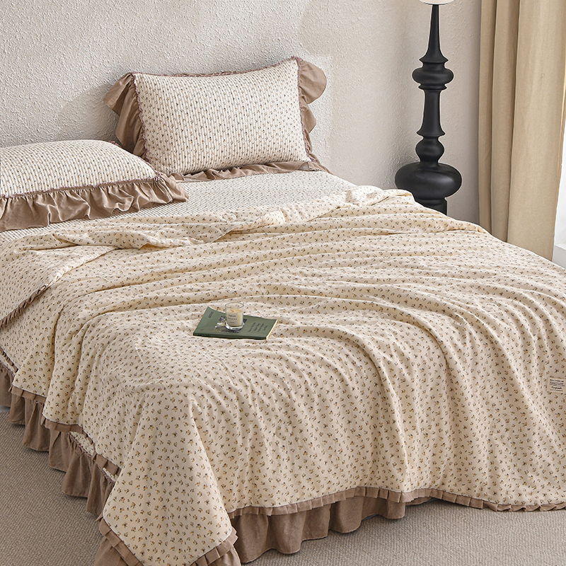 商品名称:有货 2025春夏新款全棉纯棉双层纱夏被夏凉被空调被+床盖三件套 卡曼