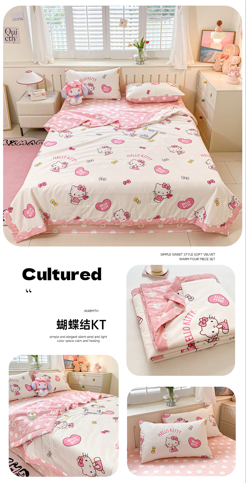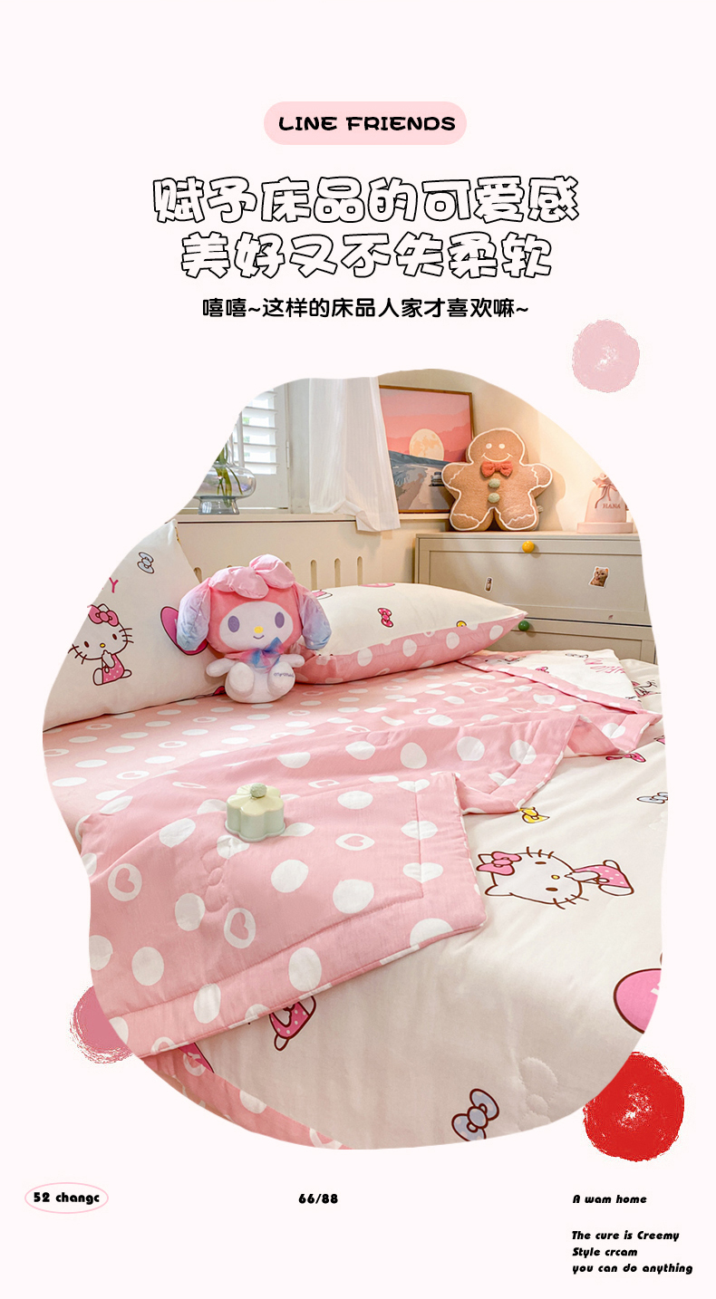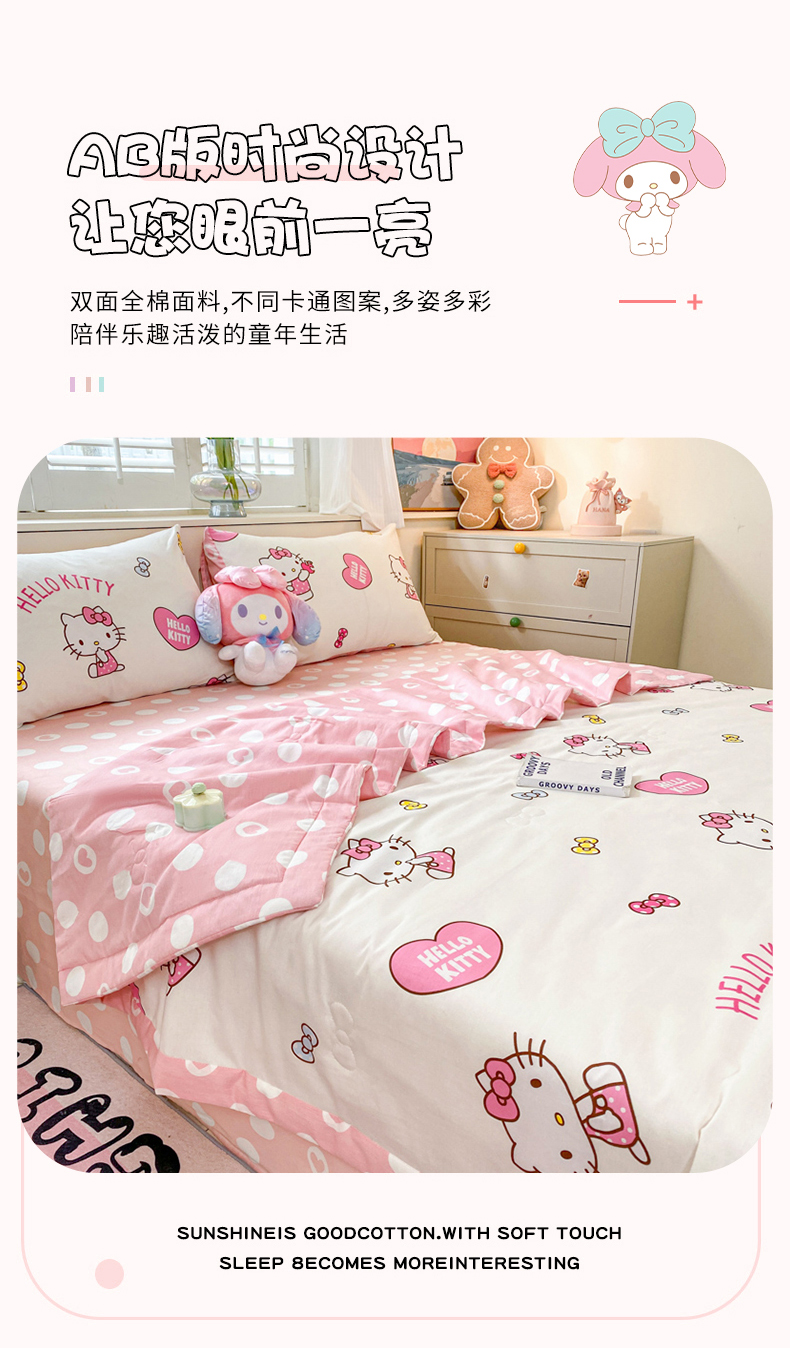 商品名称:博雅 2025新款三丽鸥全棉纯棉夏被夏凉被空调被四件套 夏被全棉-蝴蝶结KT