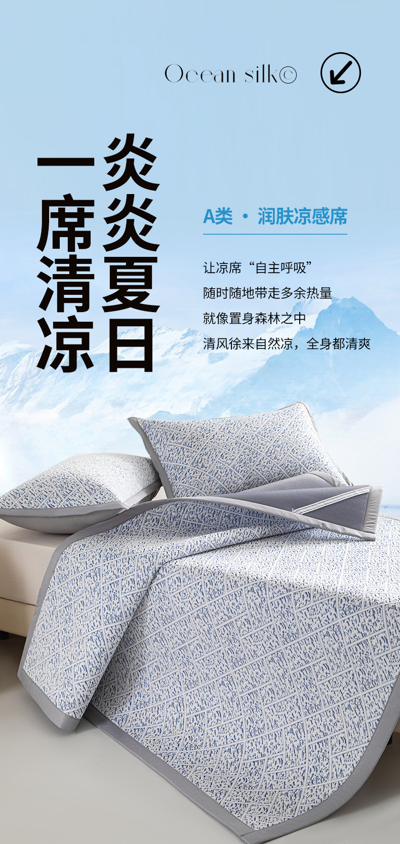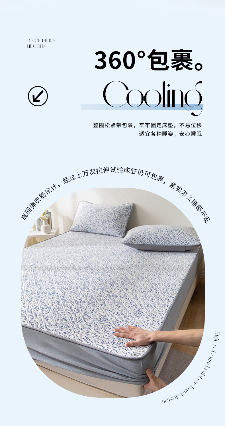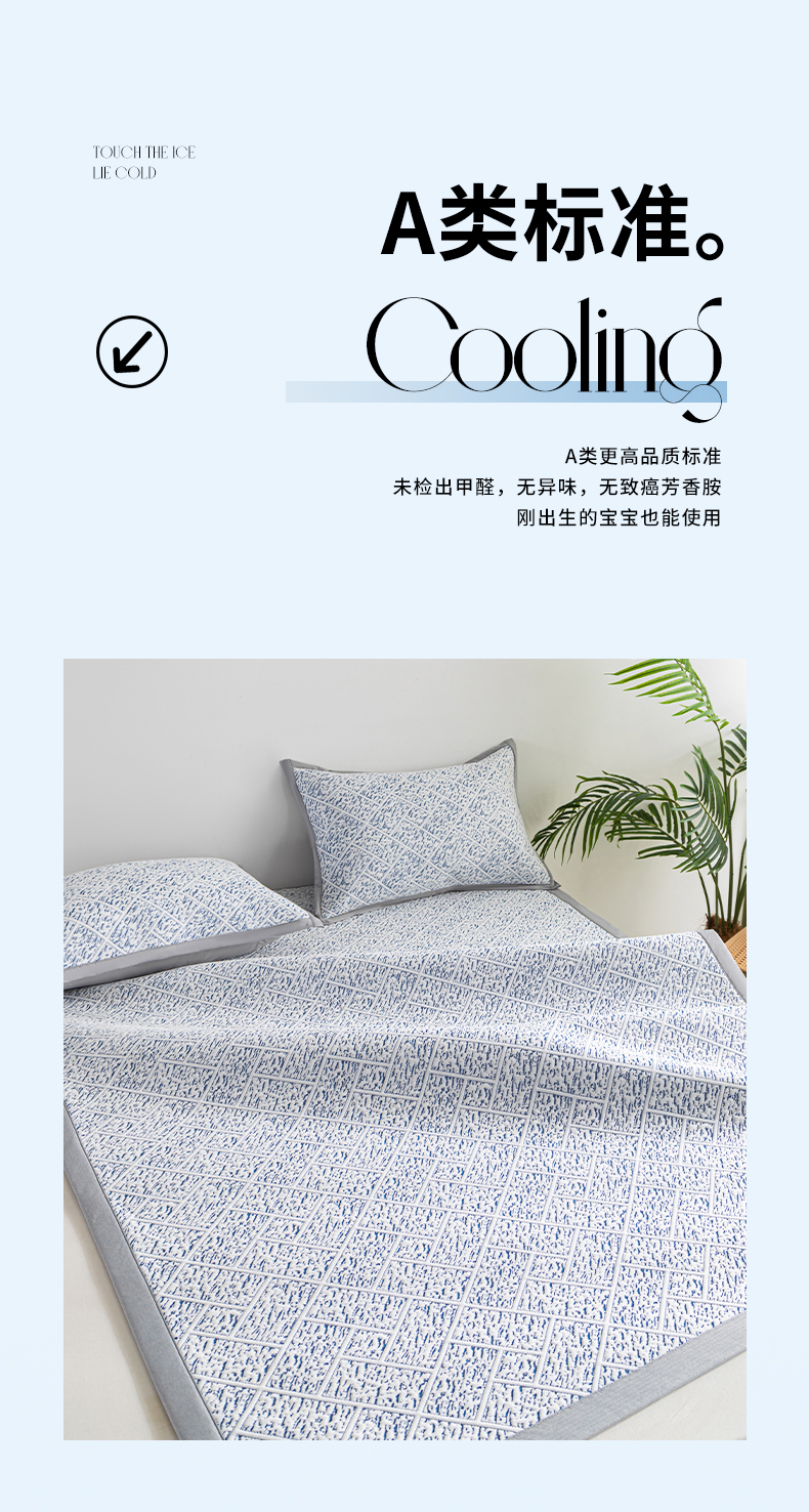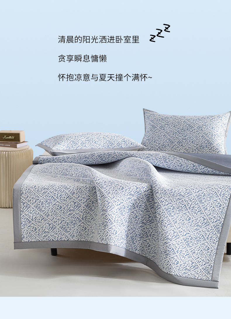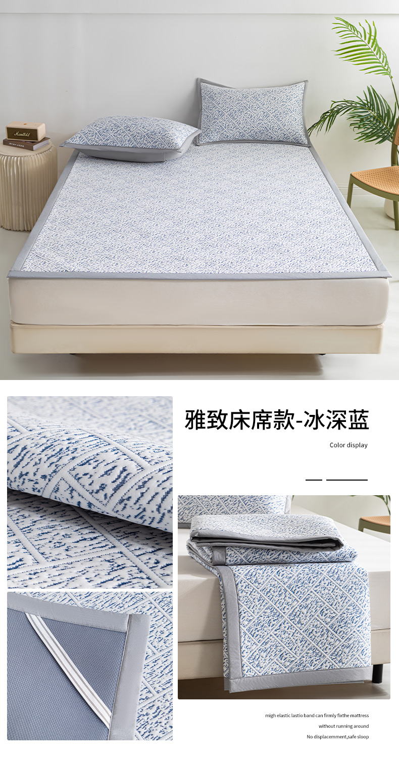 商品名称:鑫姿席业 2025新款A类凉感冰豆豆席 雅致床席款-冰深蓝