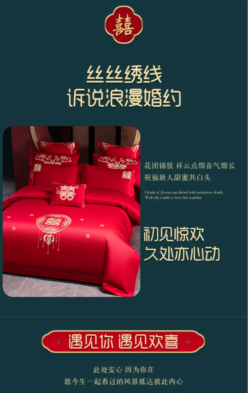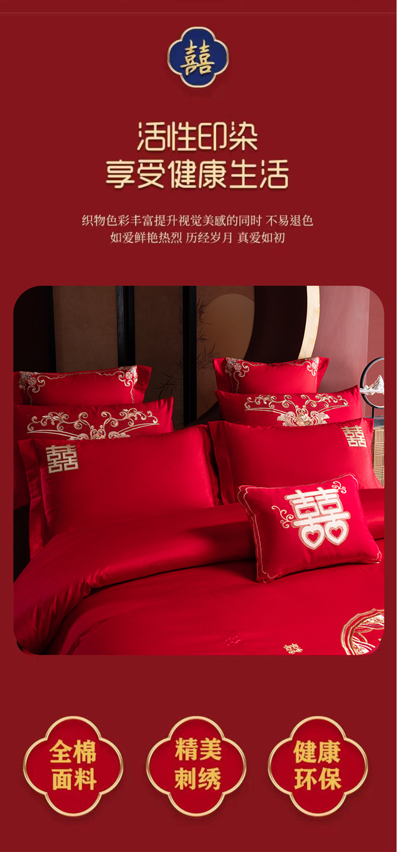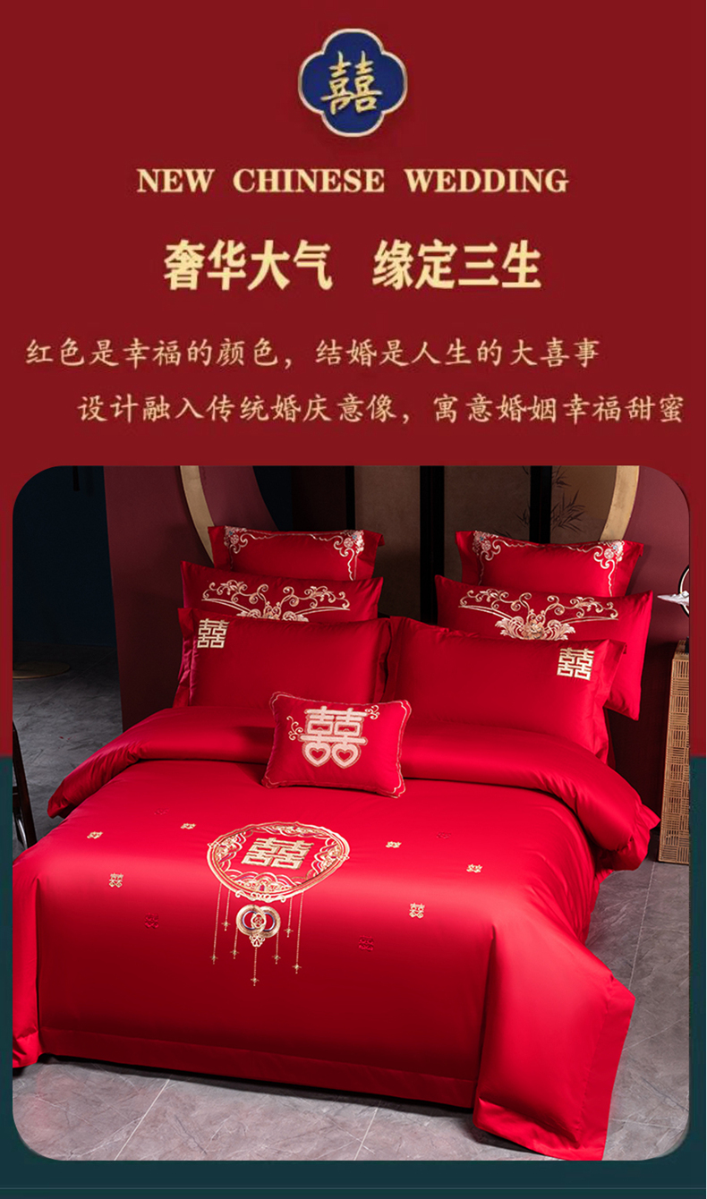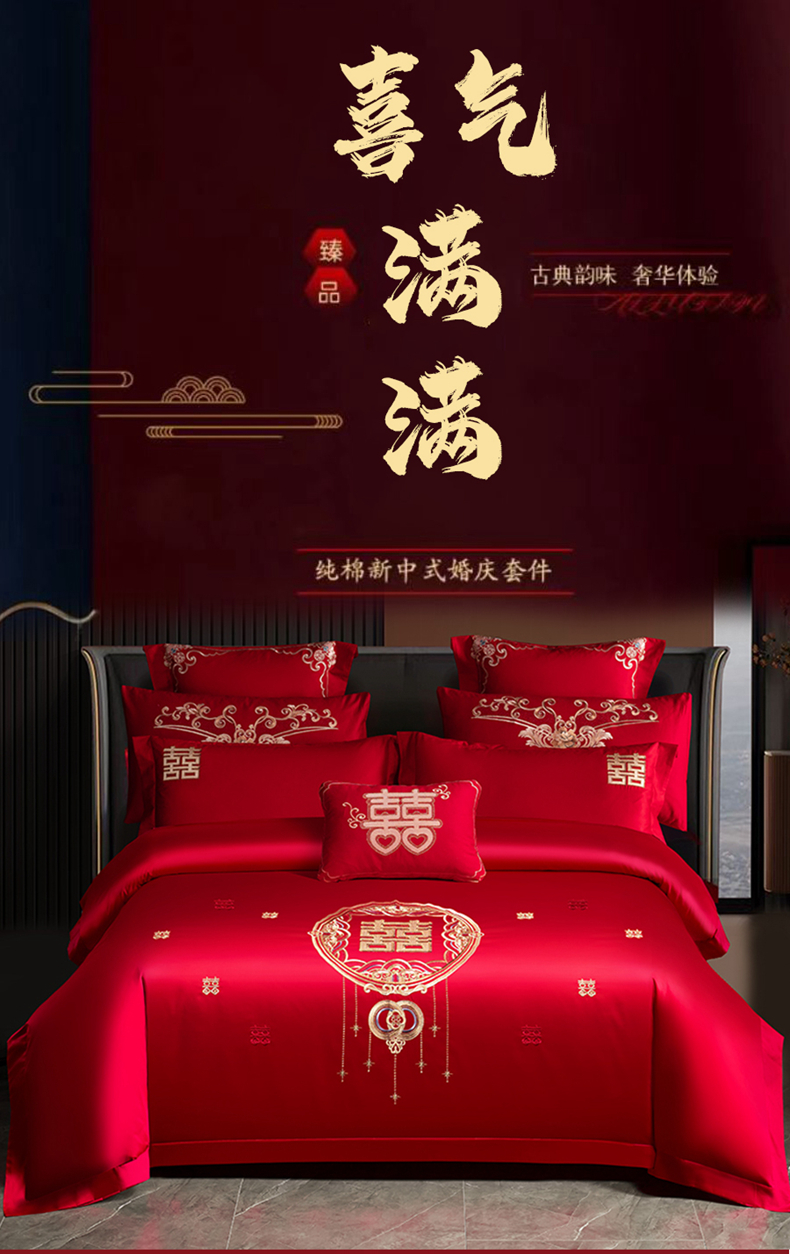 当前位置: 91家纺网 > 商品网购 > 床品套件 > 多件套 > 多件套 > 博之洋婚庆 2025新款全棉长绒棉刺绣新中式婚庆系列多件套 喜气满满