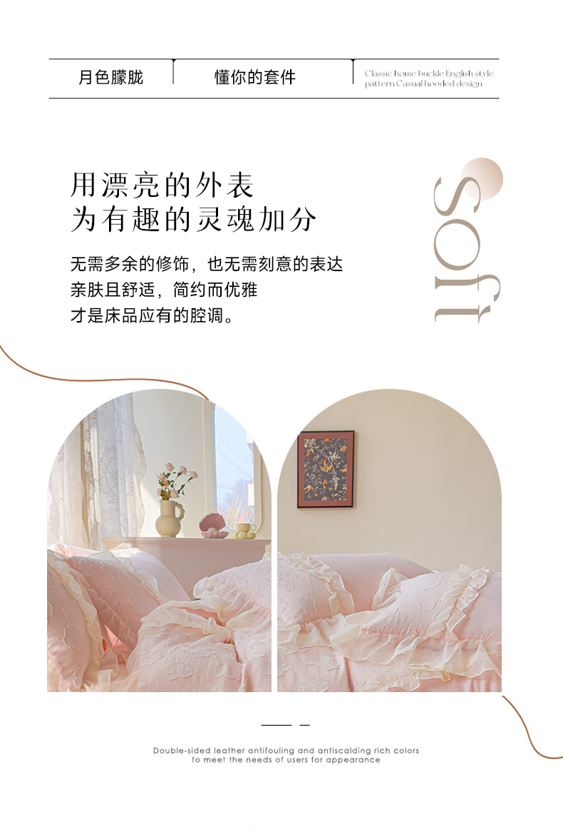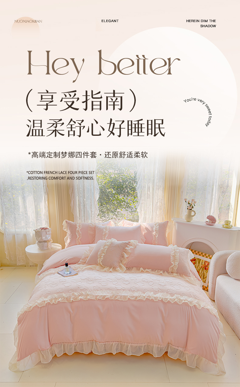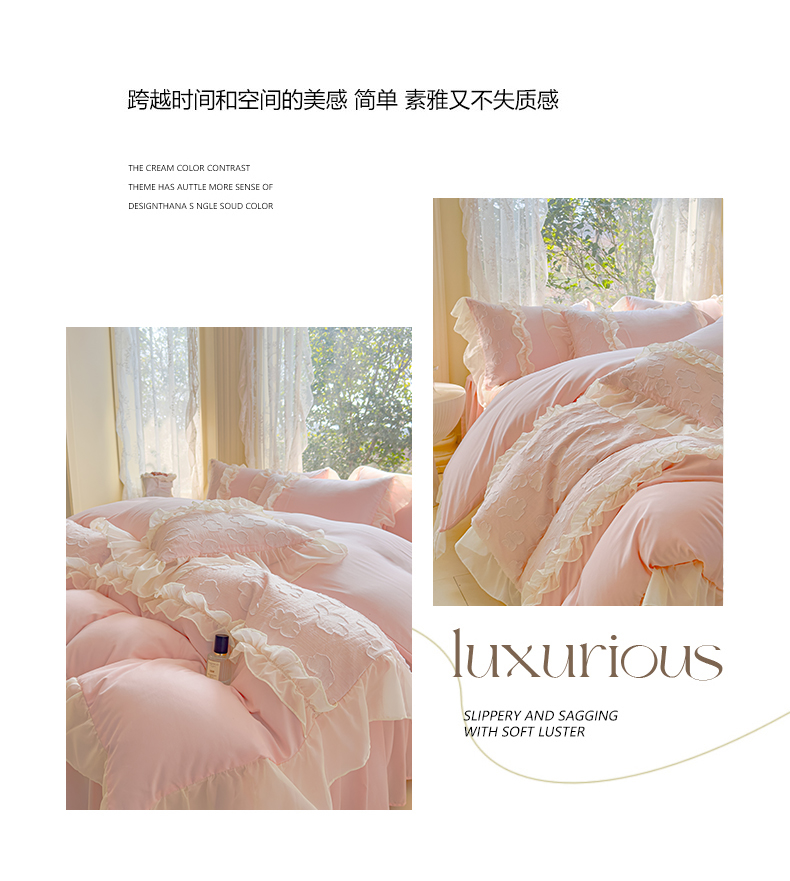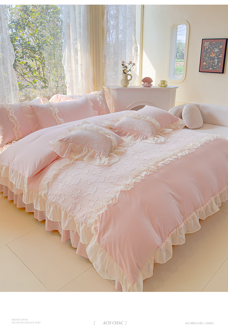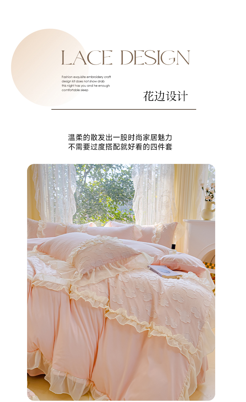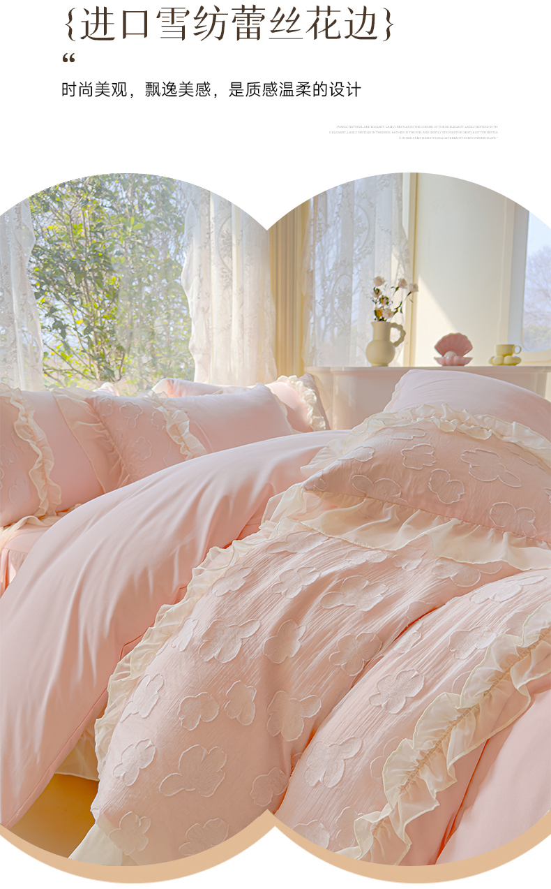 当前位置: 91家纺网 > 商品网购 > 床品套件 > 四件套 > 全棉普通四件套 > 狂想家 2025新款立体蕾丝花边梦娜系列四件套 梦娜蜜桃粉