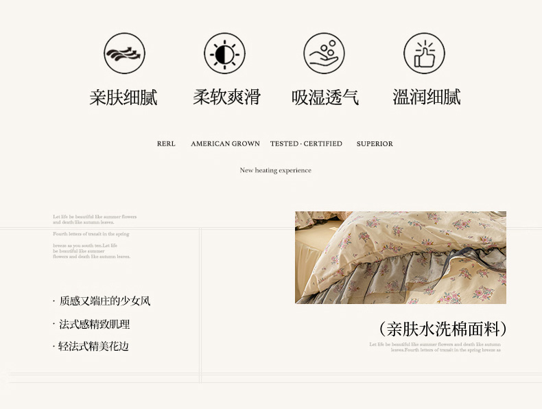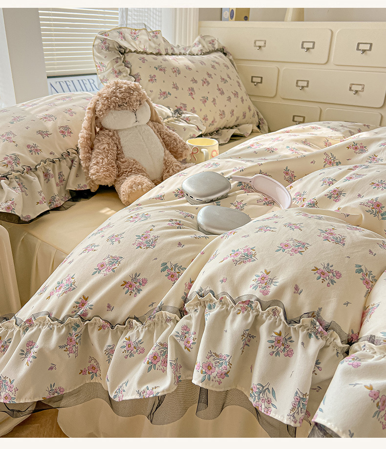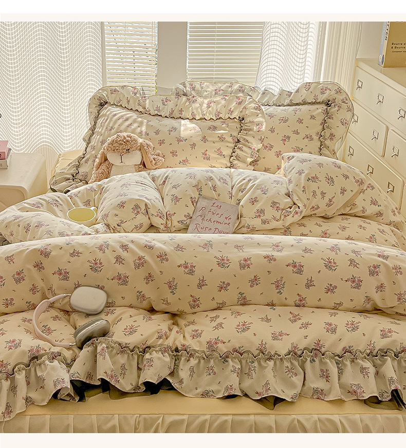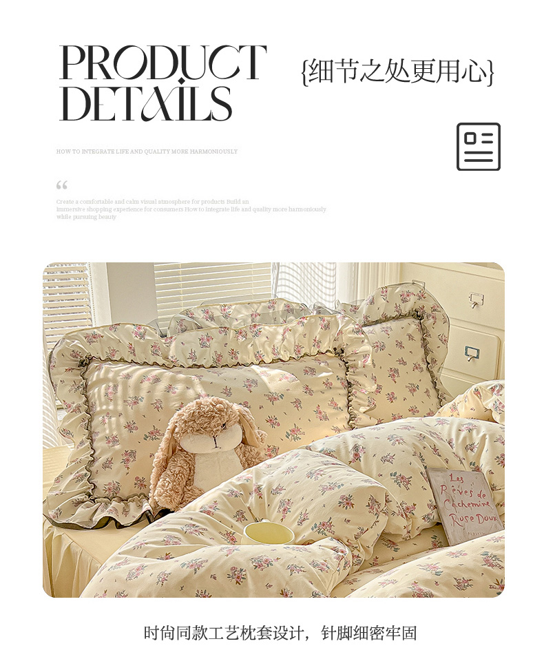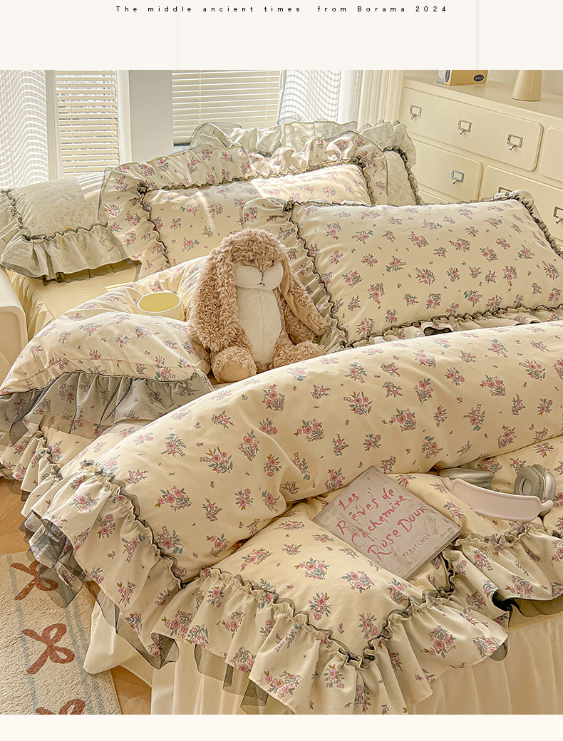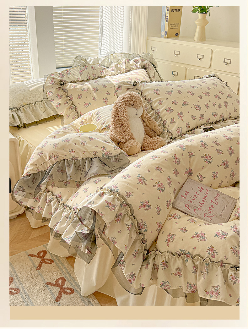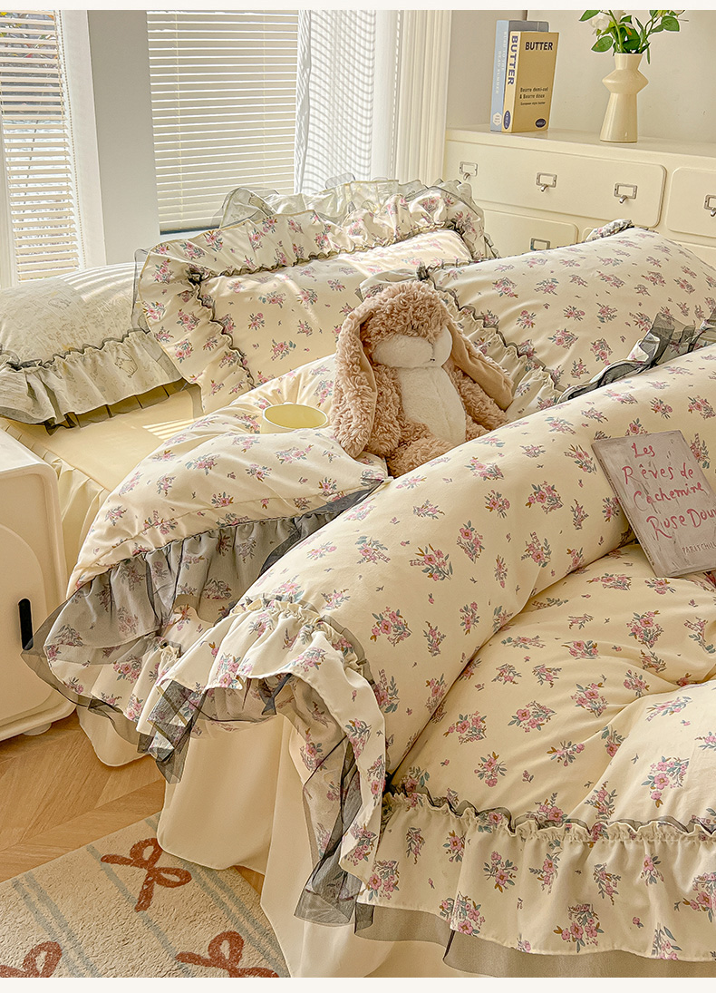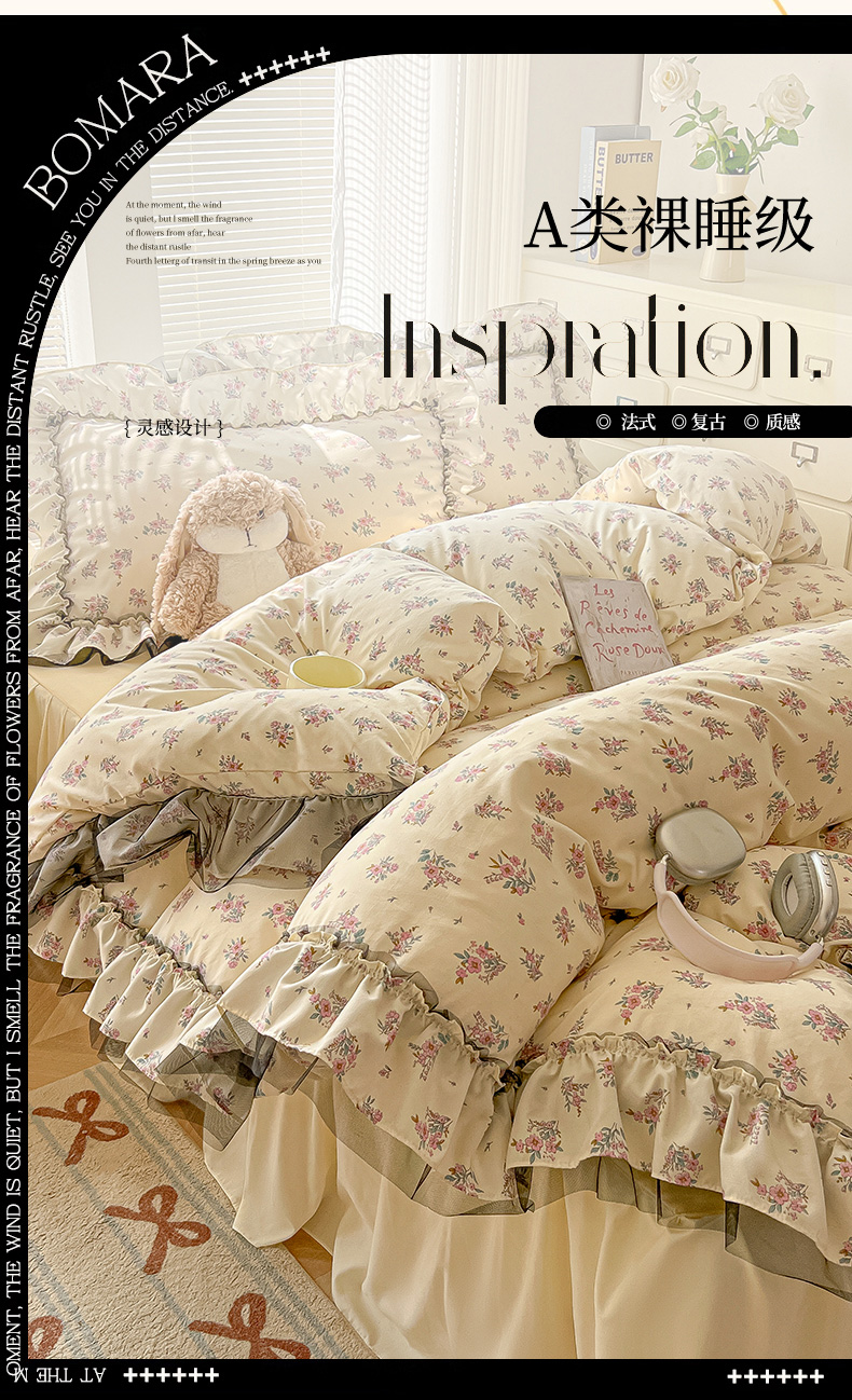 当前位置: 91家纺网 > 商品网购 > 床品套件 > 四件套 > 其它四件套 > 眠帛家居 2025新款A类法式皱皱纱小清新蕾丝花边四件套 芬芳