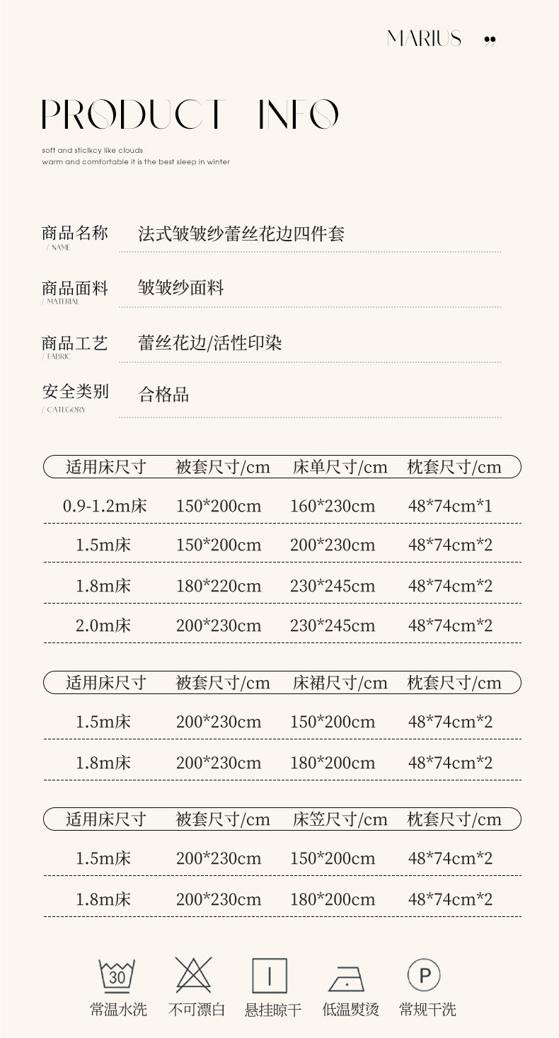 1.5m床床裙款(被套200*230床裙180*200枕套48*74*2) | ¥73.00 |