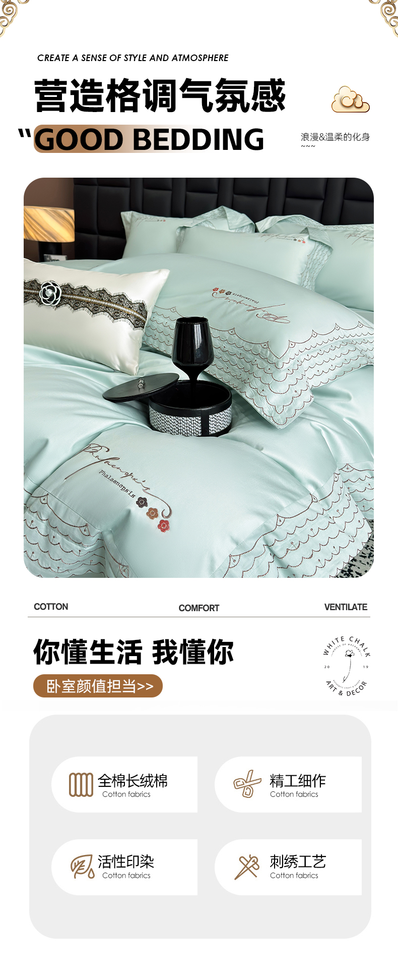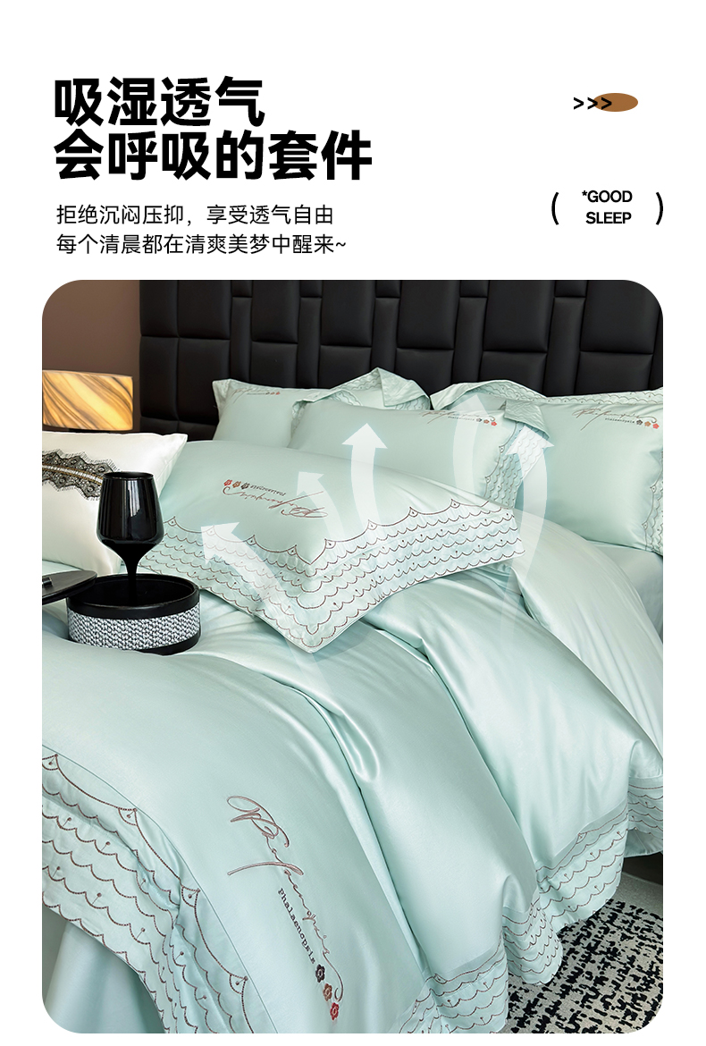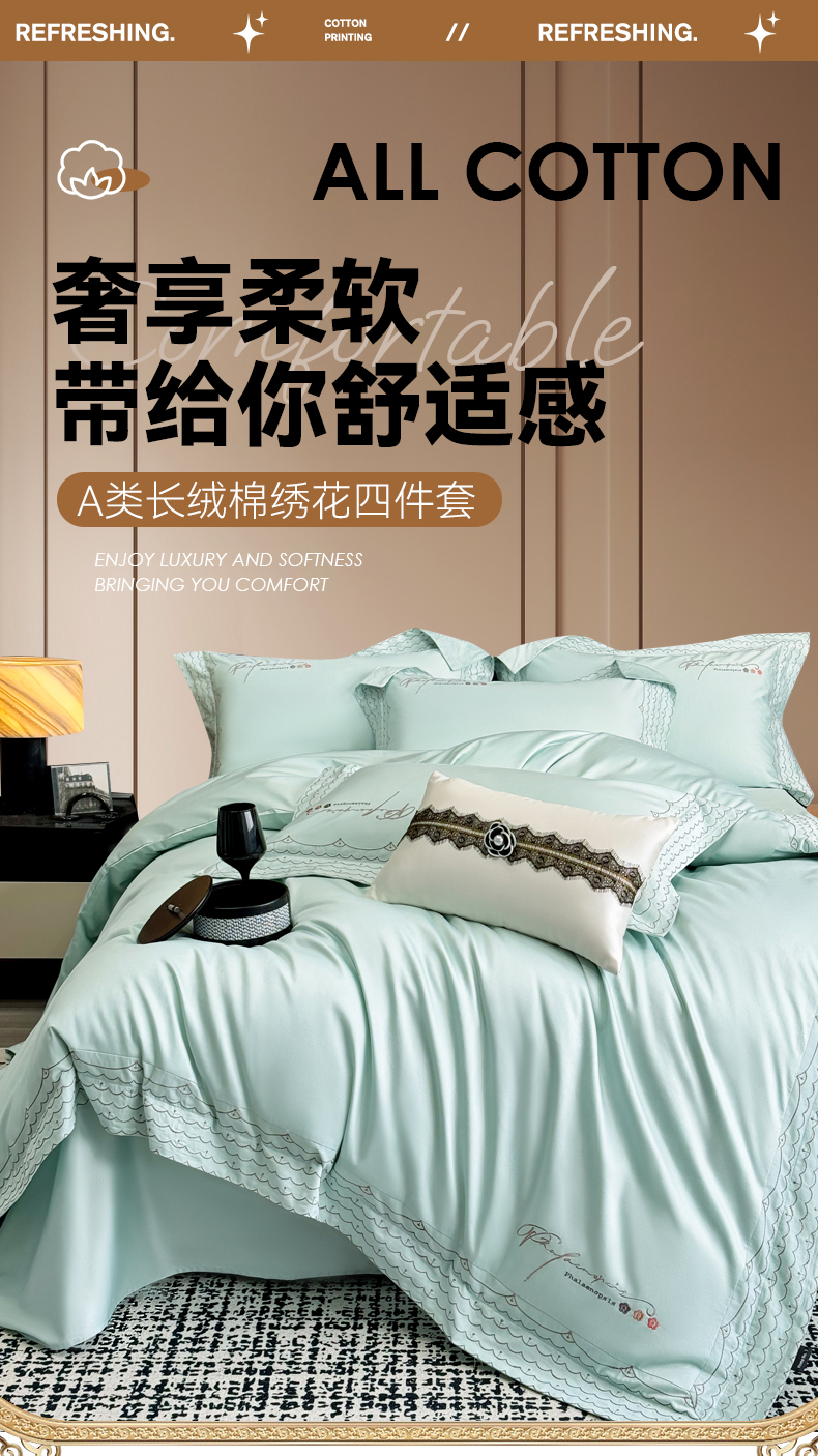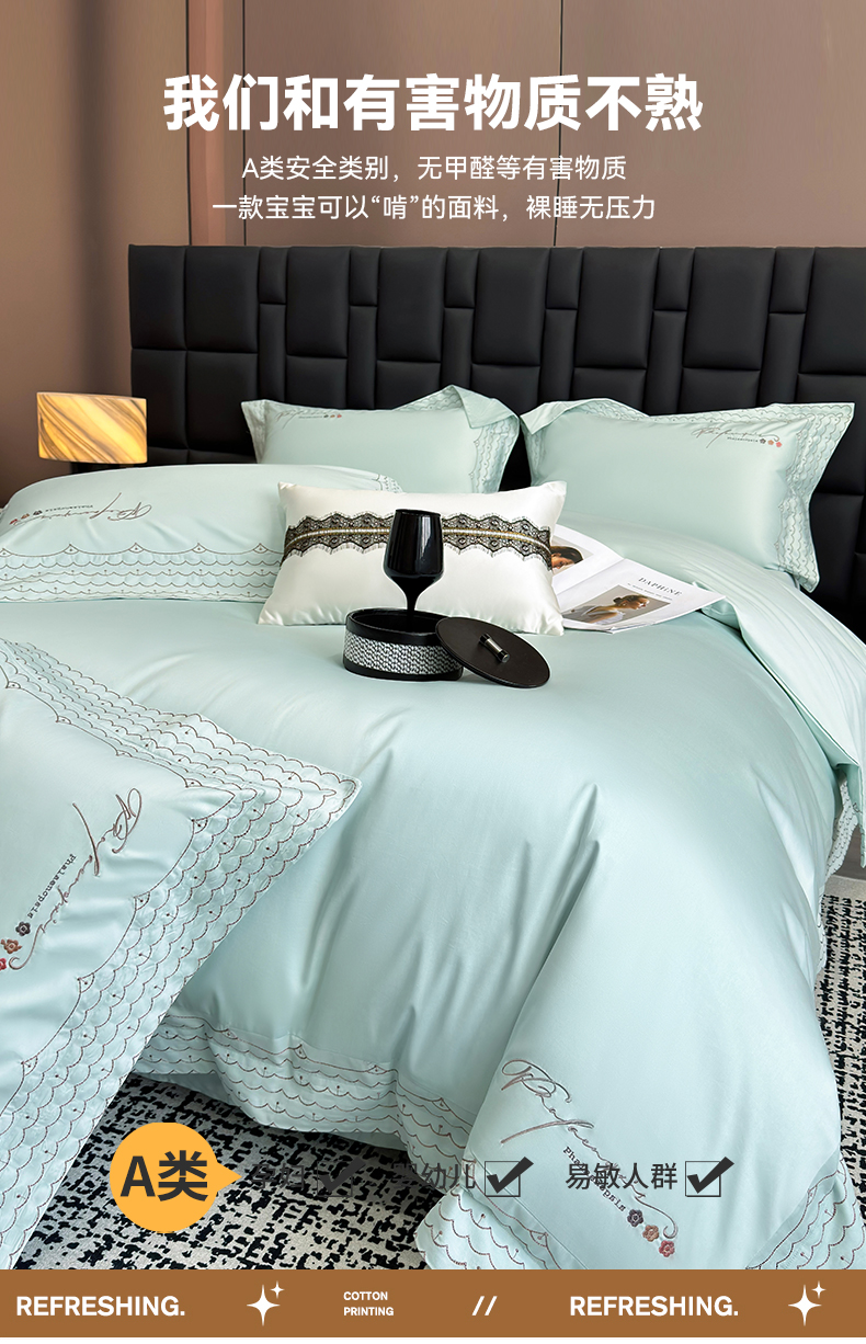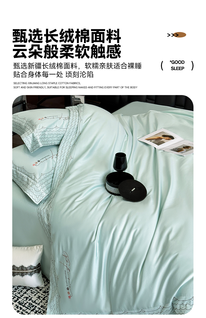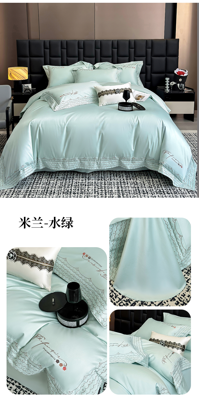当前位置: 91家纺网 > 商品网购 > 床品套件 > 四件套 > 夏被四件套 > 家居1号家纺 2025新款全工艺长绒棉四件套 米兰-水绿