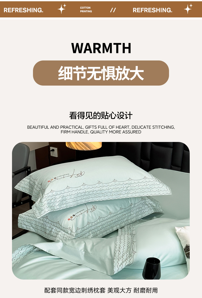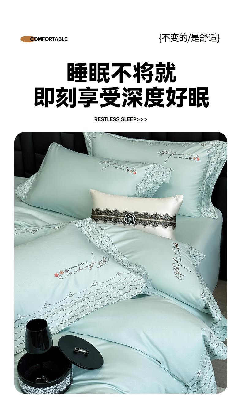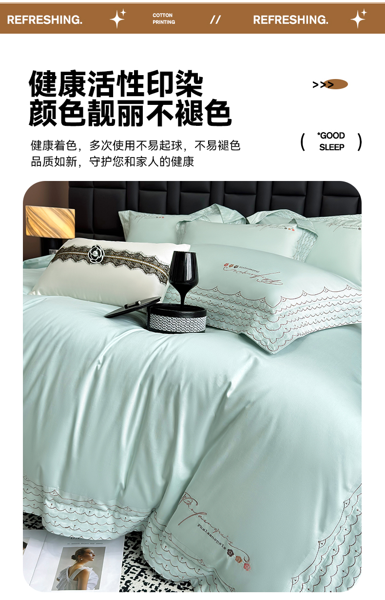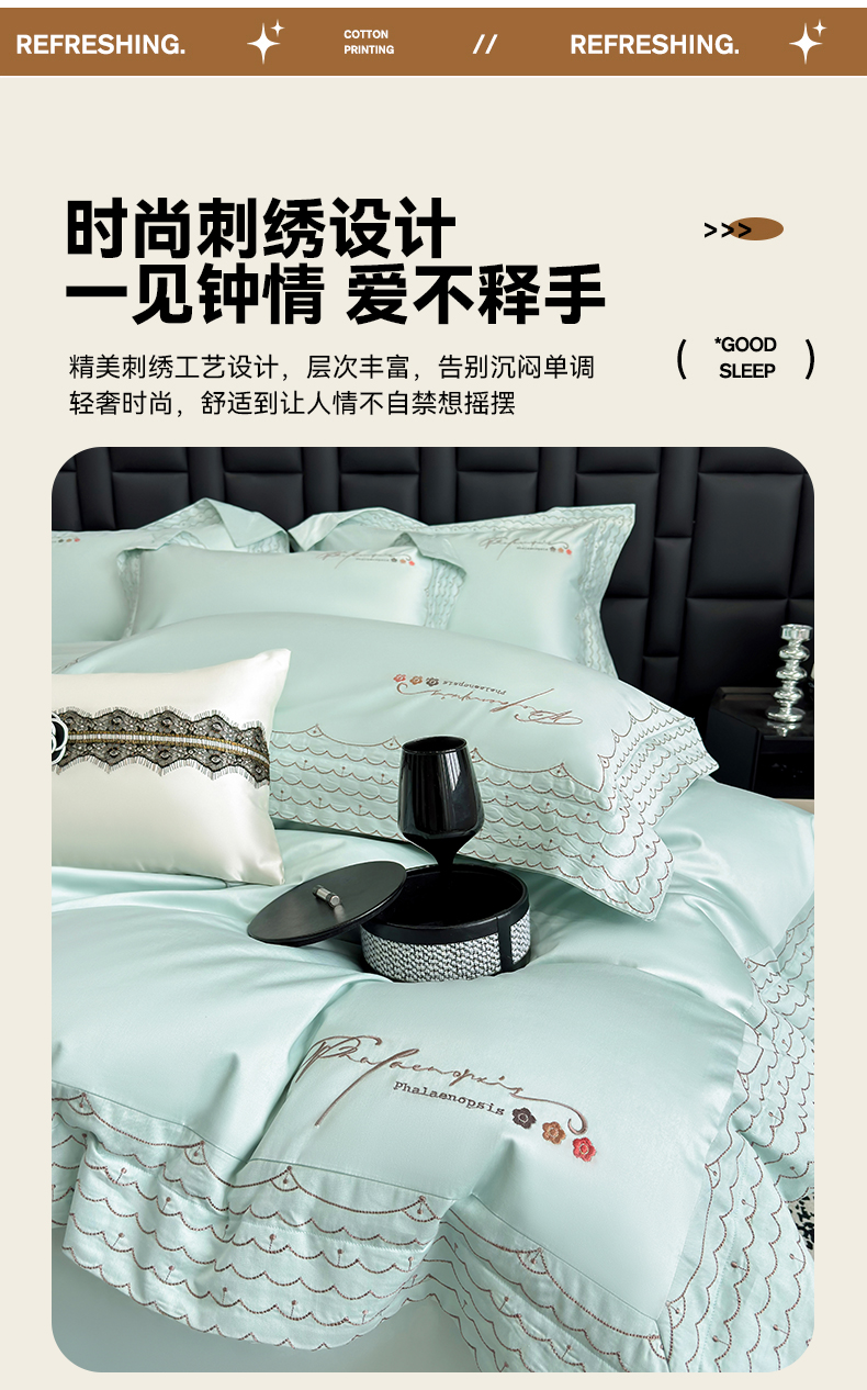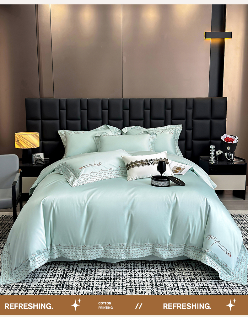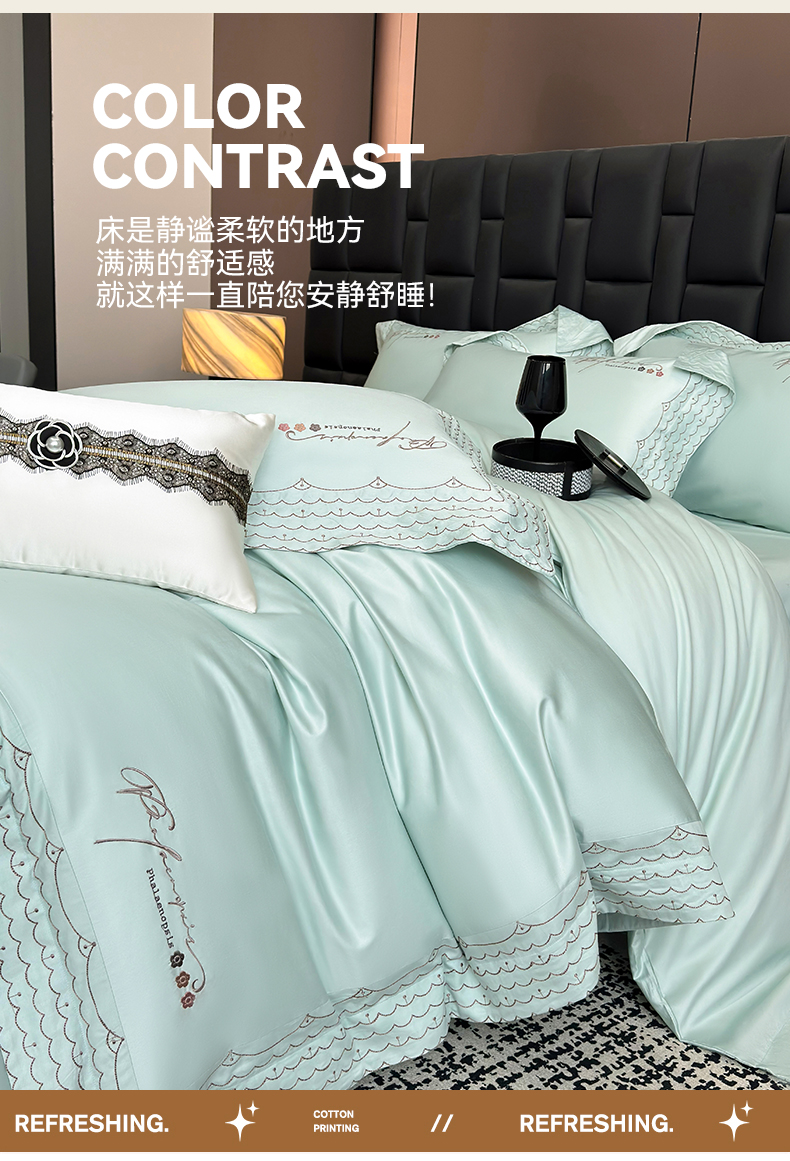 当前位置: 91家纺网 > 商品网购 > 床品套件 > 四件套 > 夏被四件套 > 家居1号家纺 2025新款全工艺长绒棉四件套 米兰-水绿