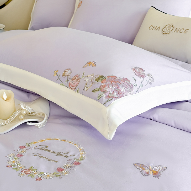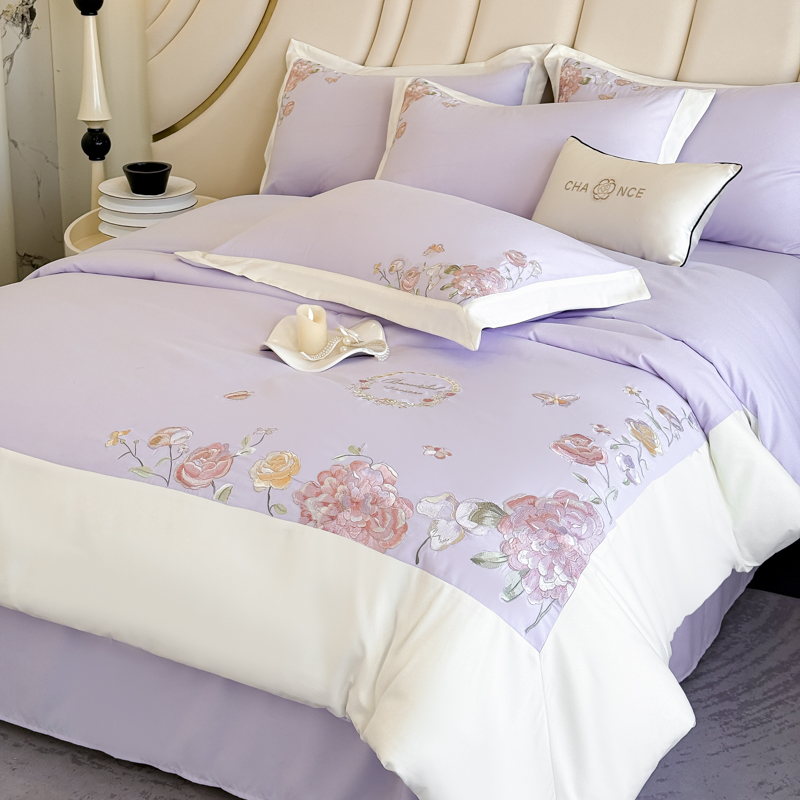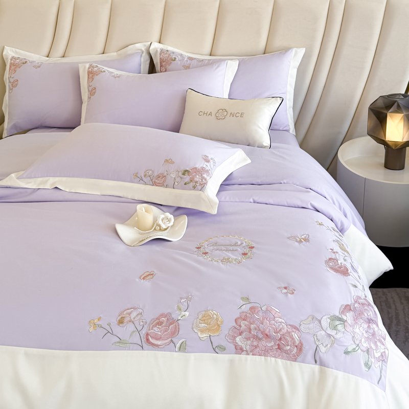 恋之语 2025新款水洗棉刺绣四件套-伊莉莎 伊莉莎-紫白
