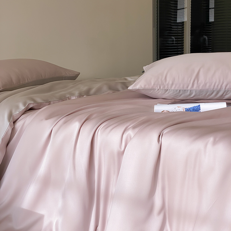 商品名称:2025新款春夏精致都市风60s兰精天丝纯色拼色四件套 满天星紫曙光银