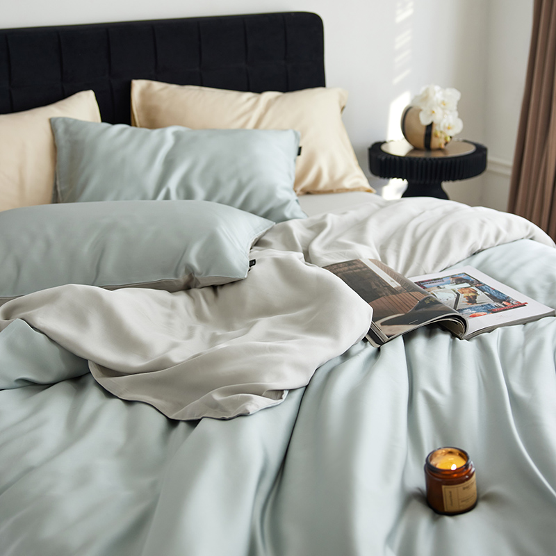 (总)玉宇阁家居 2023新款春夏60支兰精天丝拼色四件套,都市灰香槟,海盐松露,芥末黄香槟,裸粉香槟,茉莉奶绿,浅灰鹅黄,若草乳白