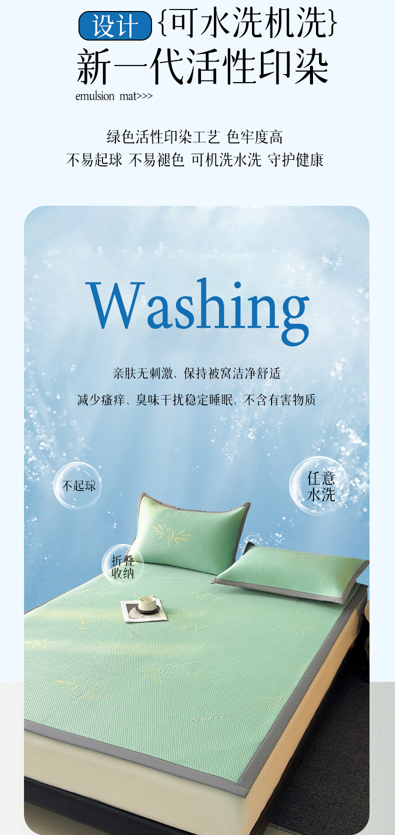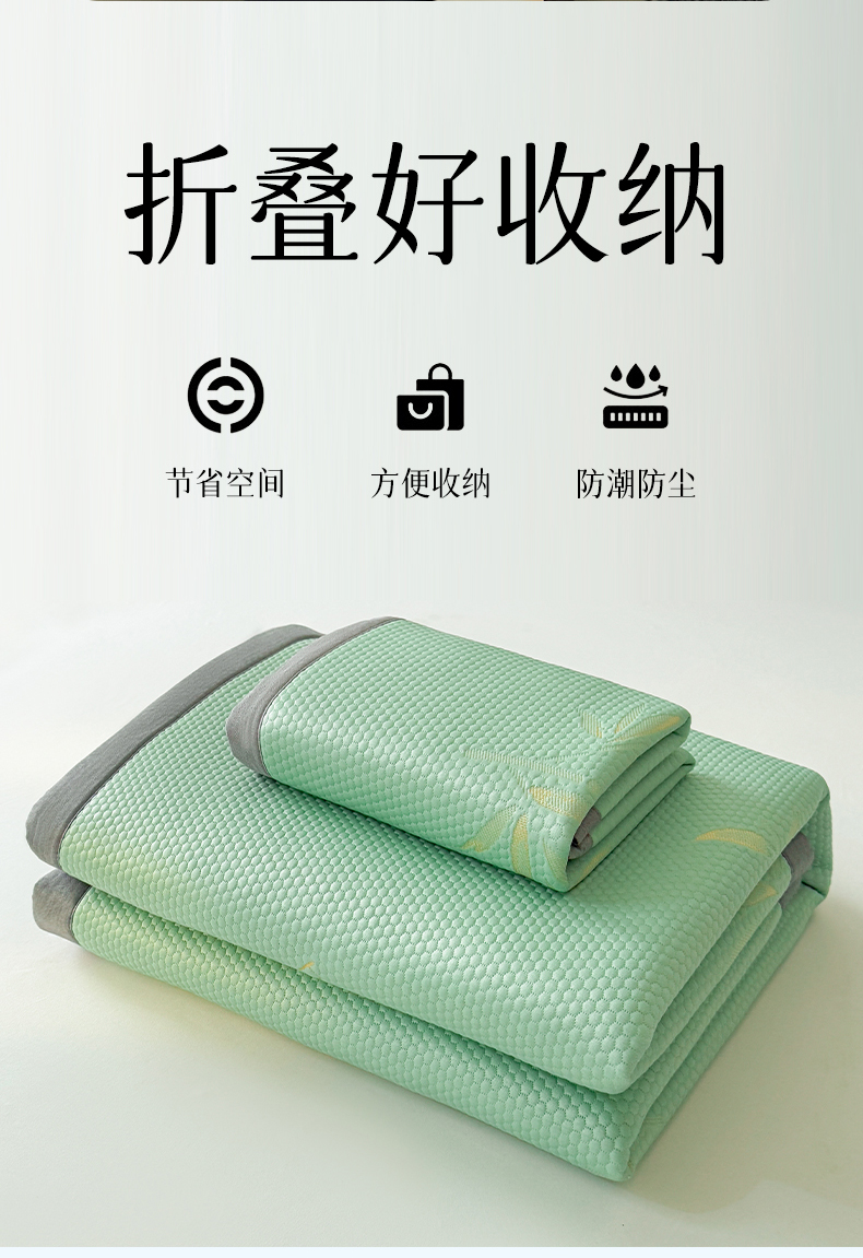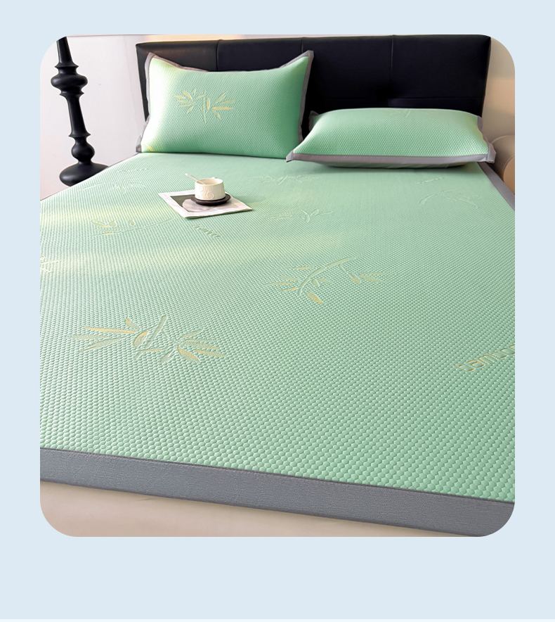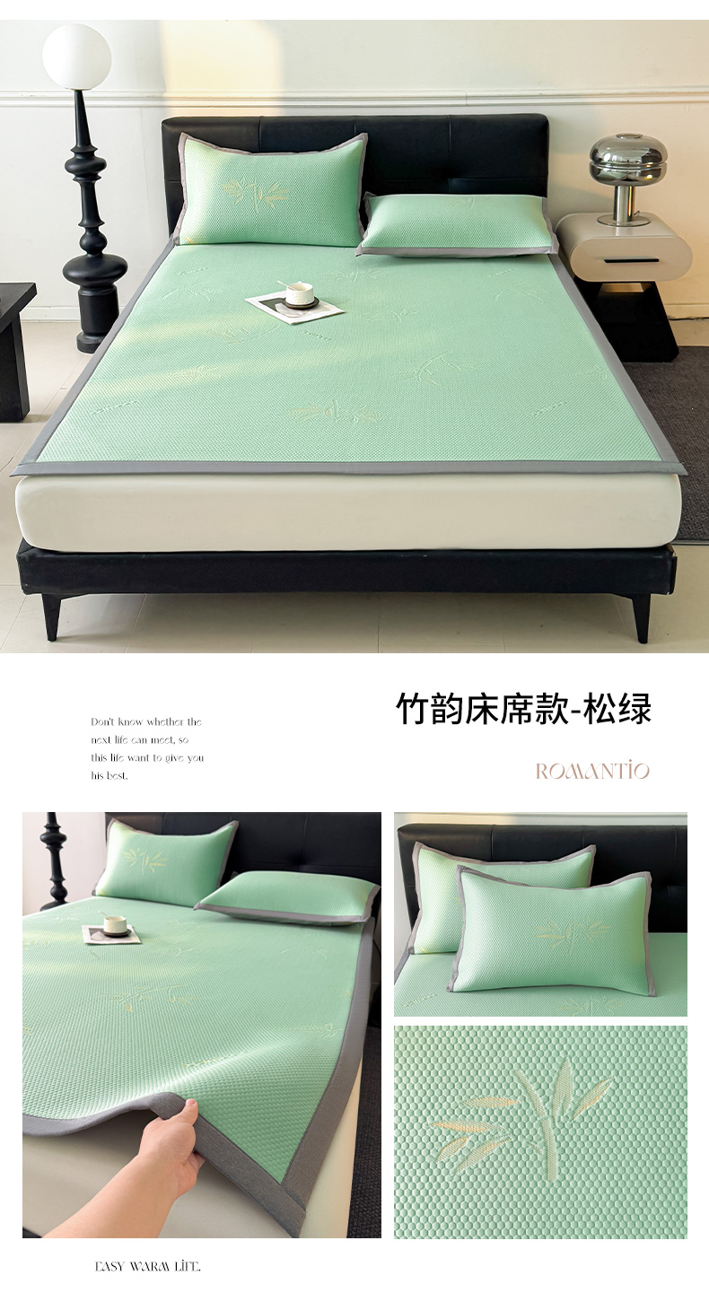 商品名称:乐家欣 2025新款A类提花色织冰豆豆凉席-竹韵系列 竹韵床席款-松绿