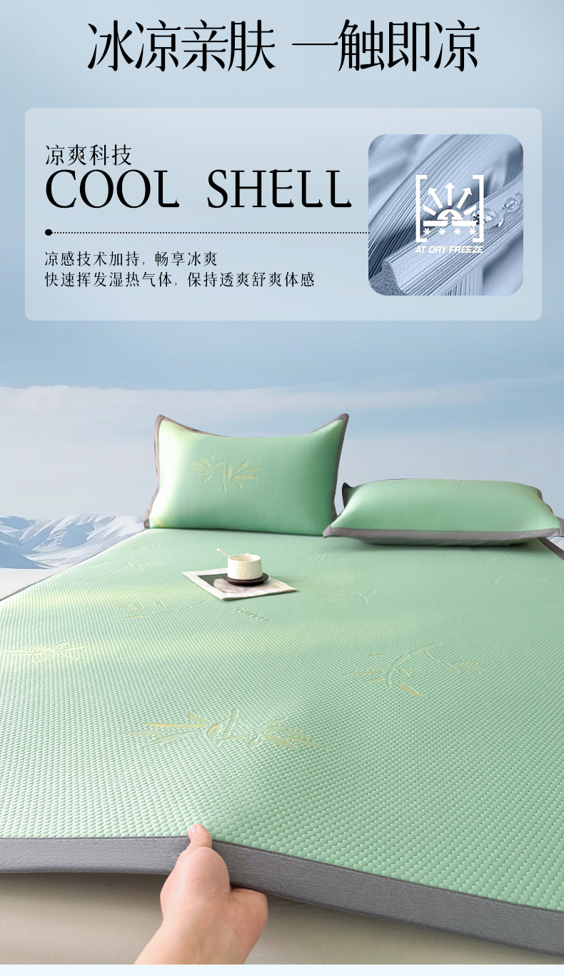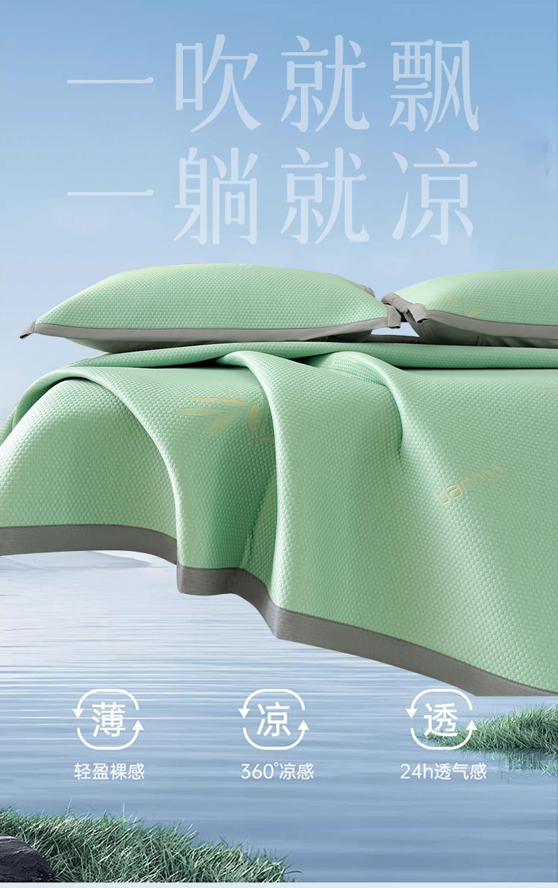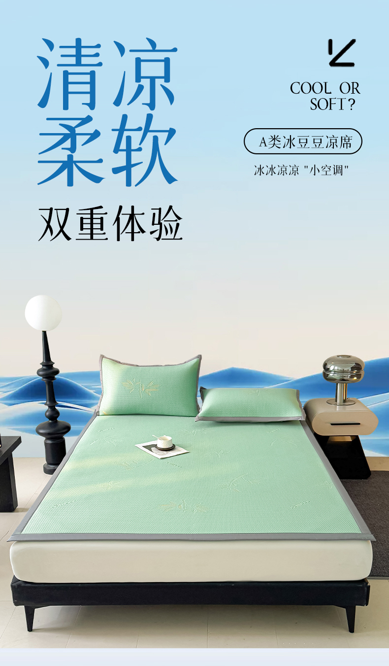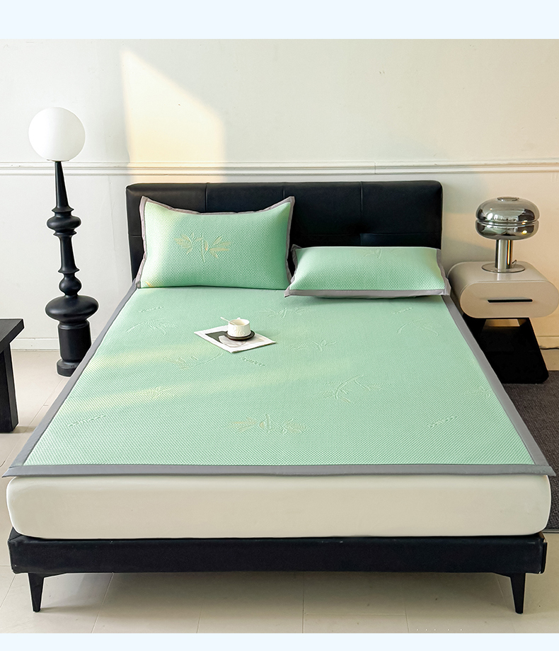 商品名称:乐家欣 2025新款A类提花色织冰豆豆凉席-竹韵系列 竹韵床席款-松绿