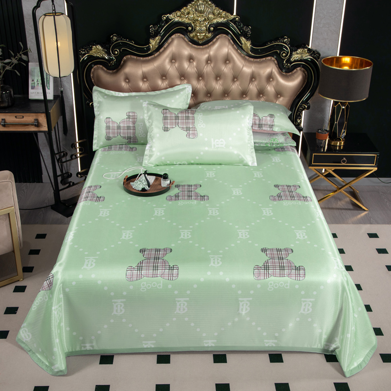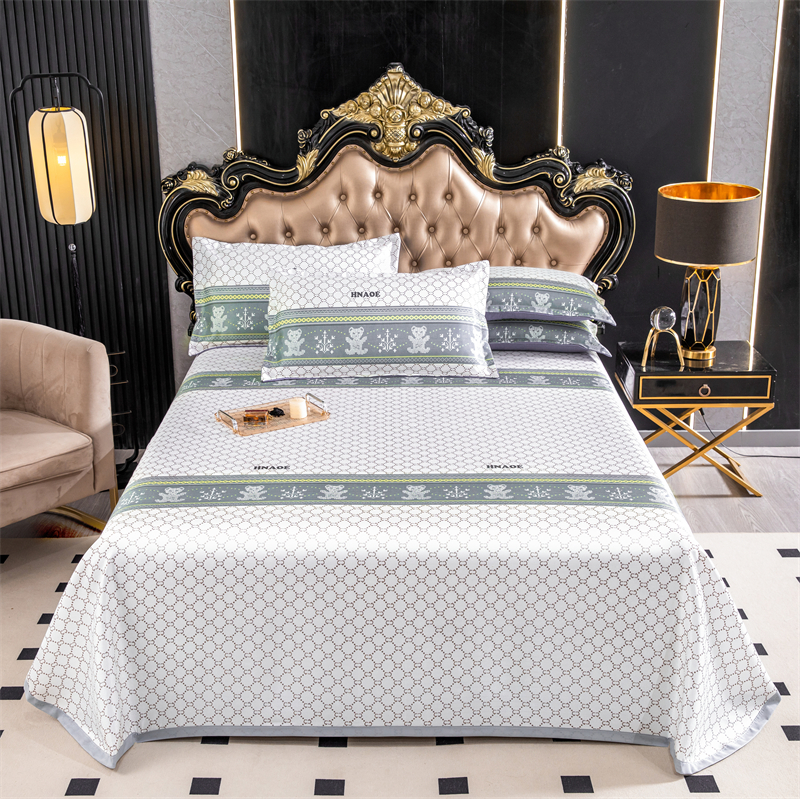 悦织湾家纺 2025新款印花斜纹冰丝席三件套 薄荷清晨