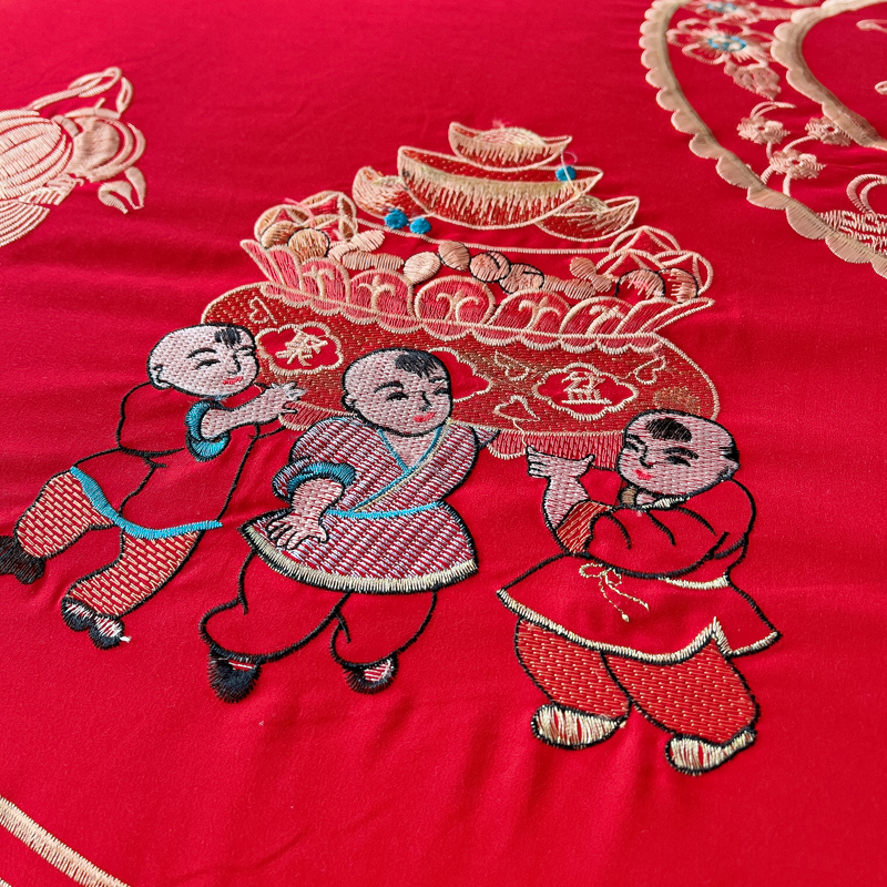 商品名称:2025新款100支150克双面长绒棉婚庆绣花四件套 龙凤九天
