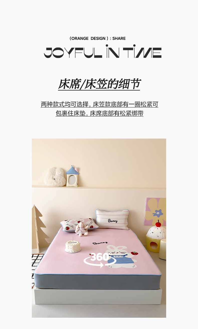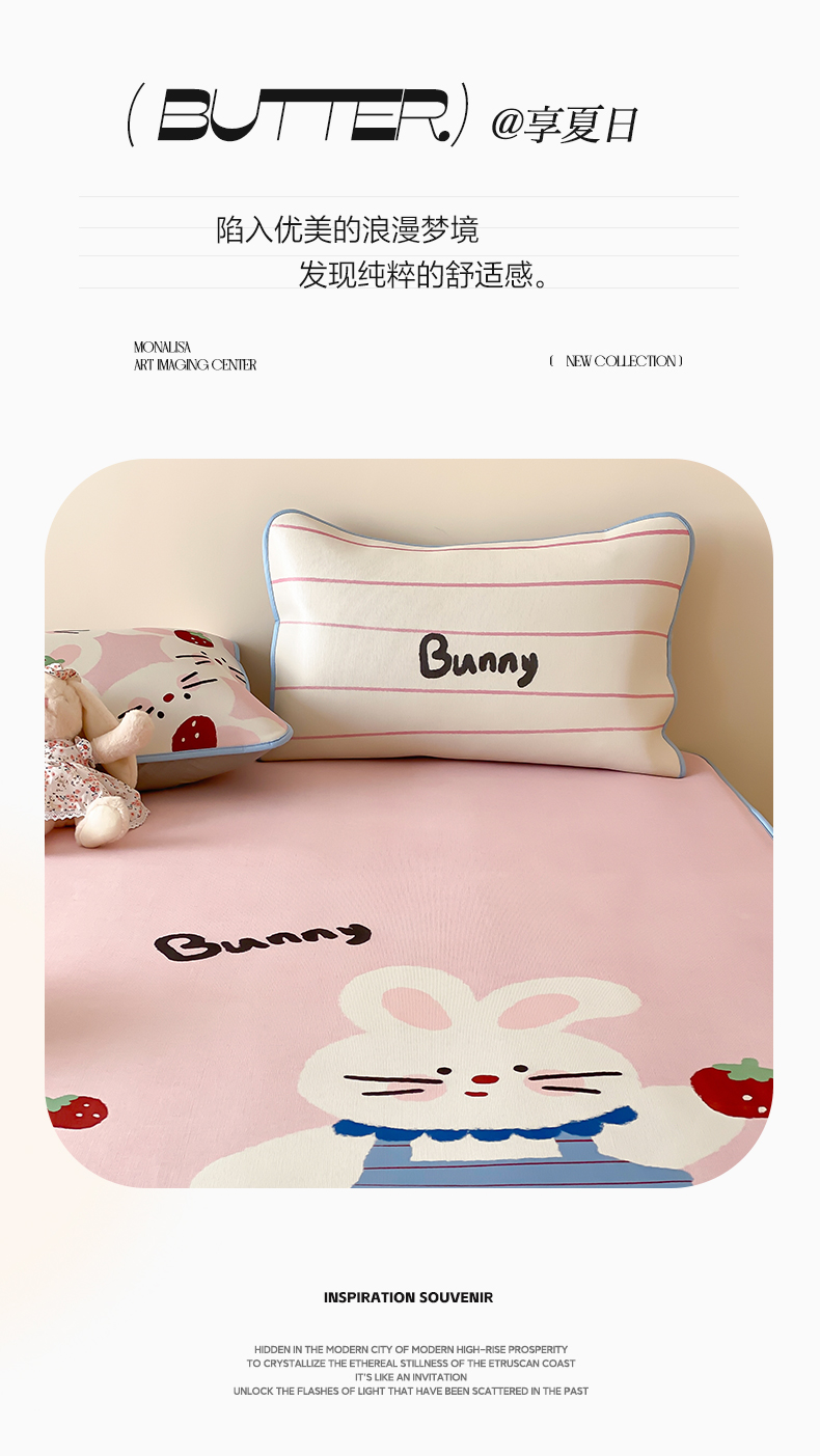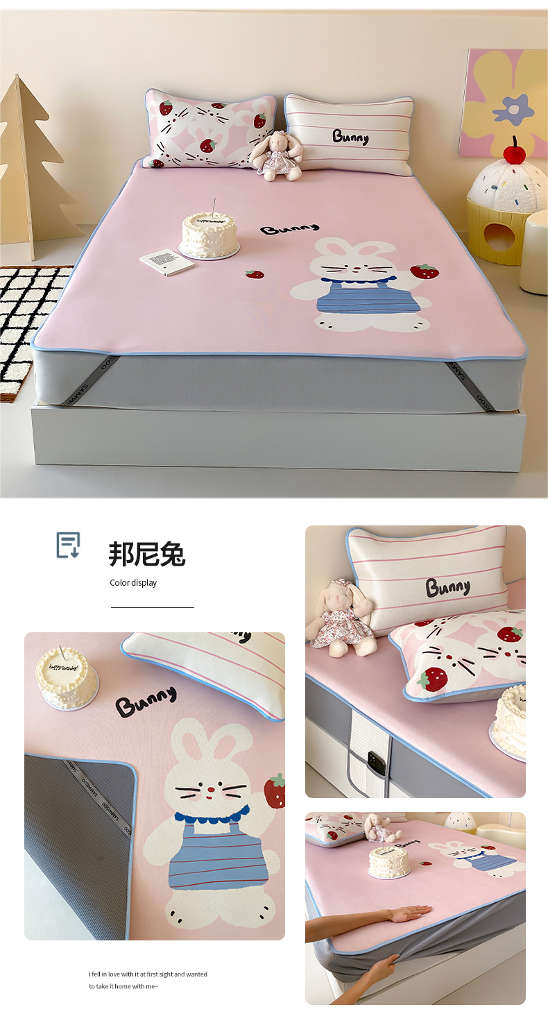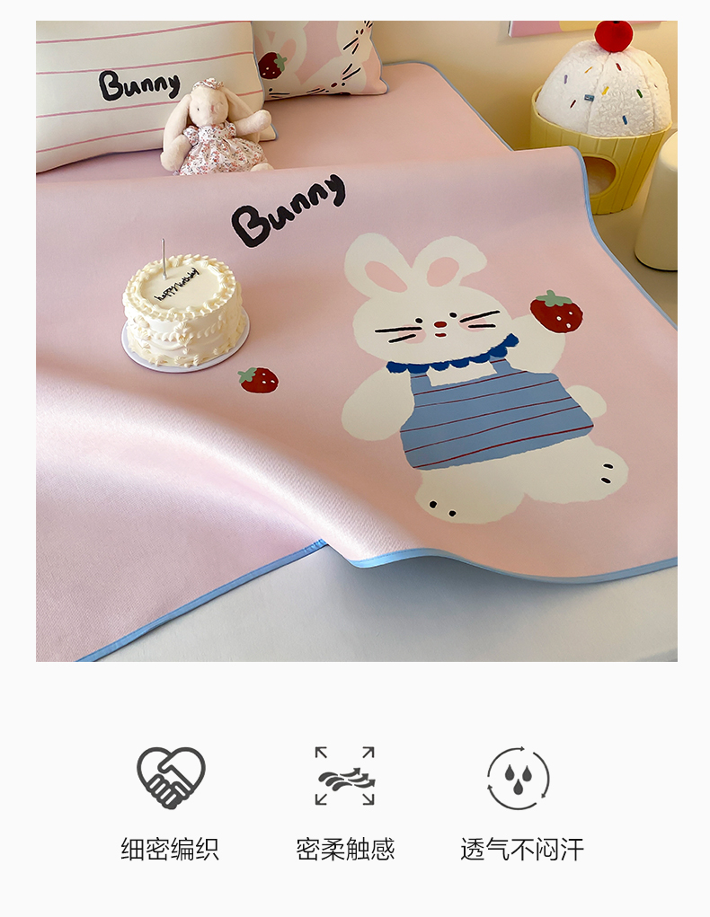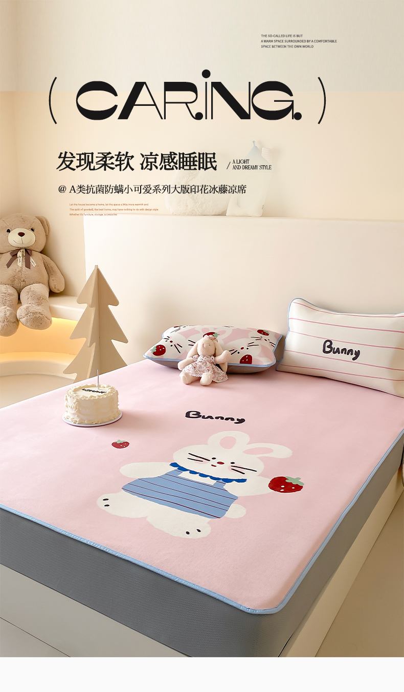 商品名称:三味舒屋 2025新款小可爱系列大版印花冰藤凉席 邦尼兔-床席款