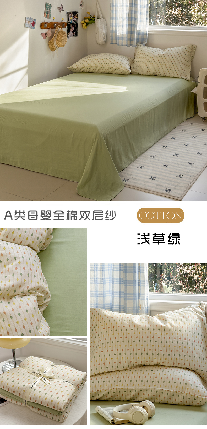 • 91家纺网 家纺一手货源 找家纺 塔塔家居  2025新款全棉纯棉双层纱床单床笠单品 简约格