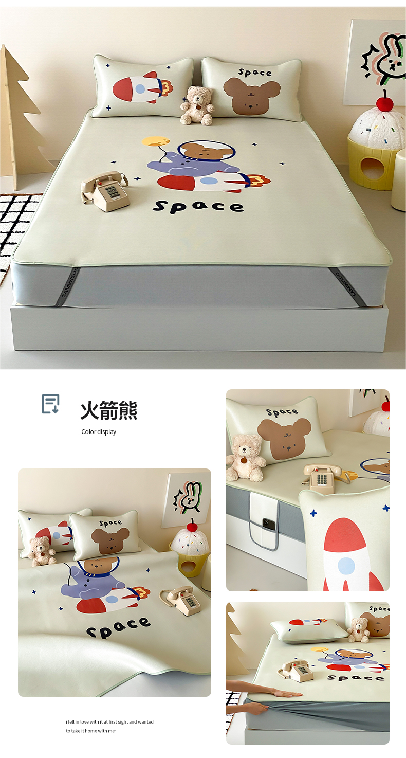 商品名称:三味舒屋 2025新款熊猫系列大版印花冰丝冰藤席凉席 火箭熊-床笠款