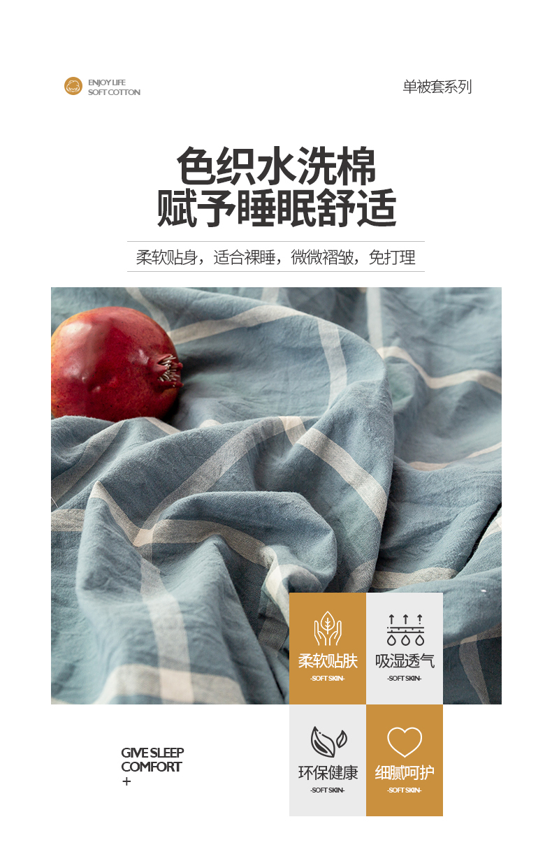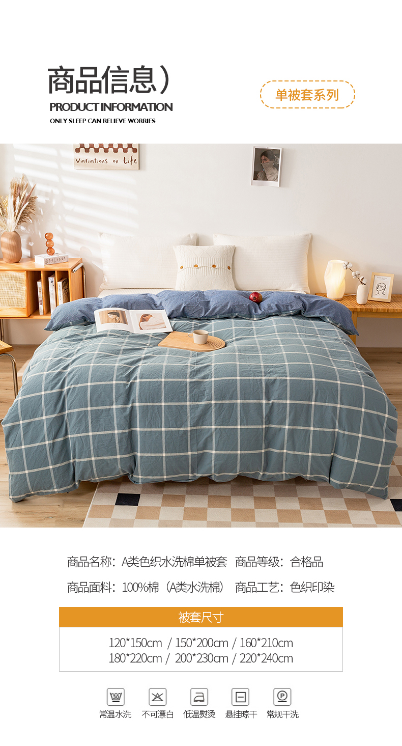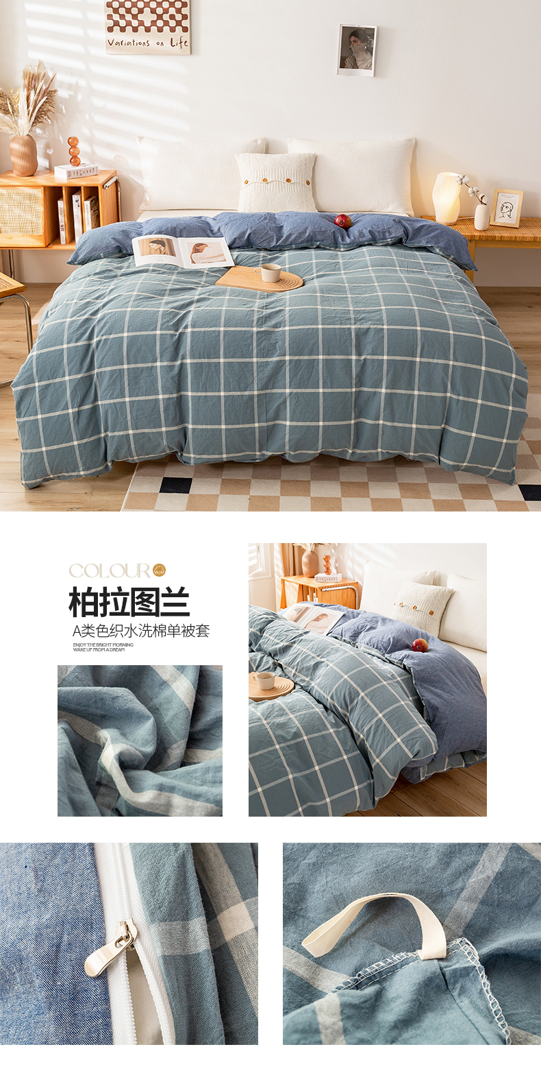 商品名称:2025新款A类色织水洗棉单被套 柏拉图兰