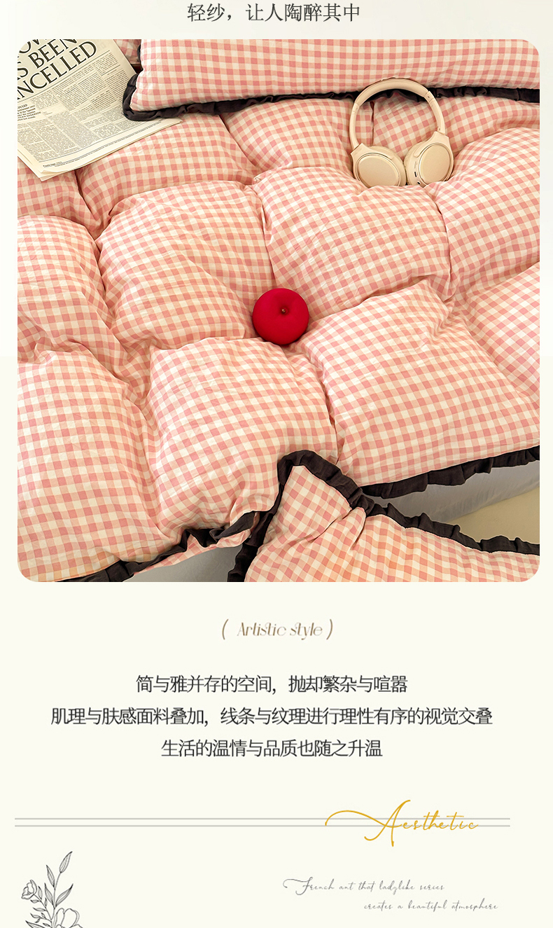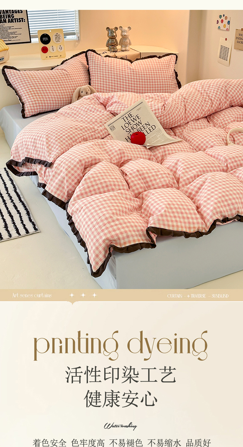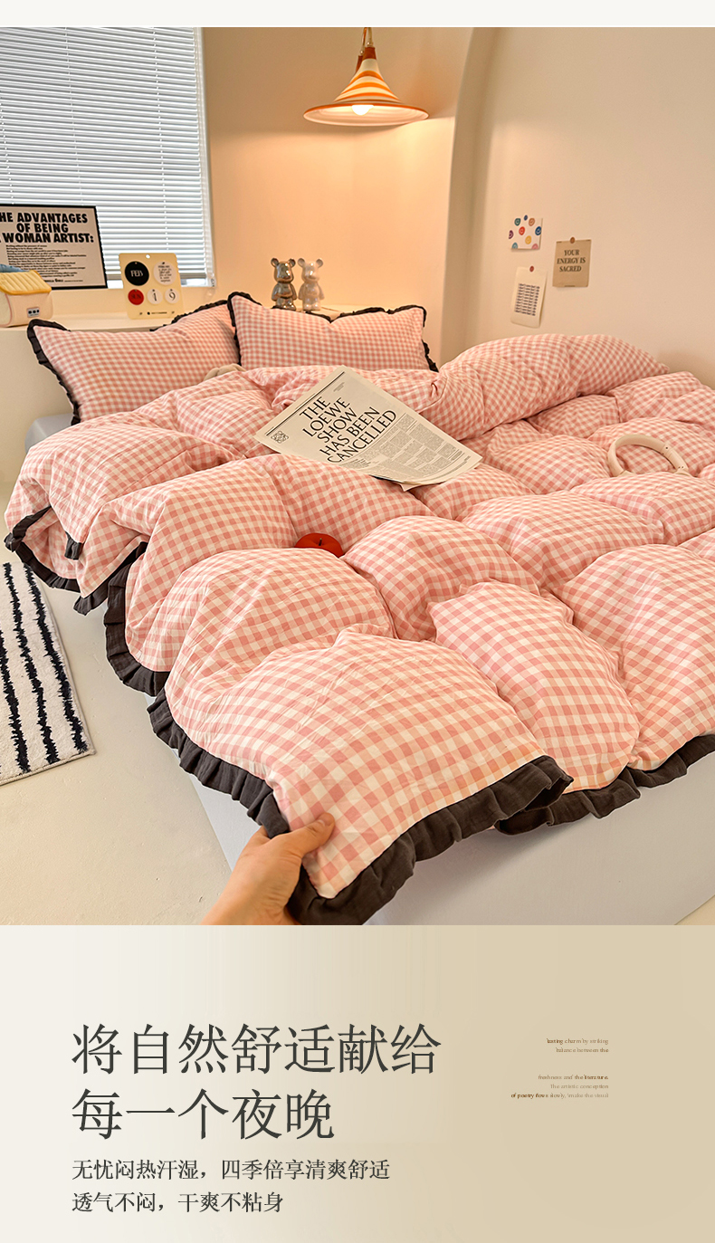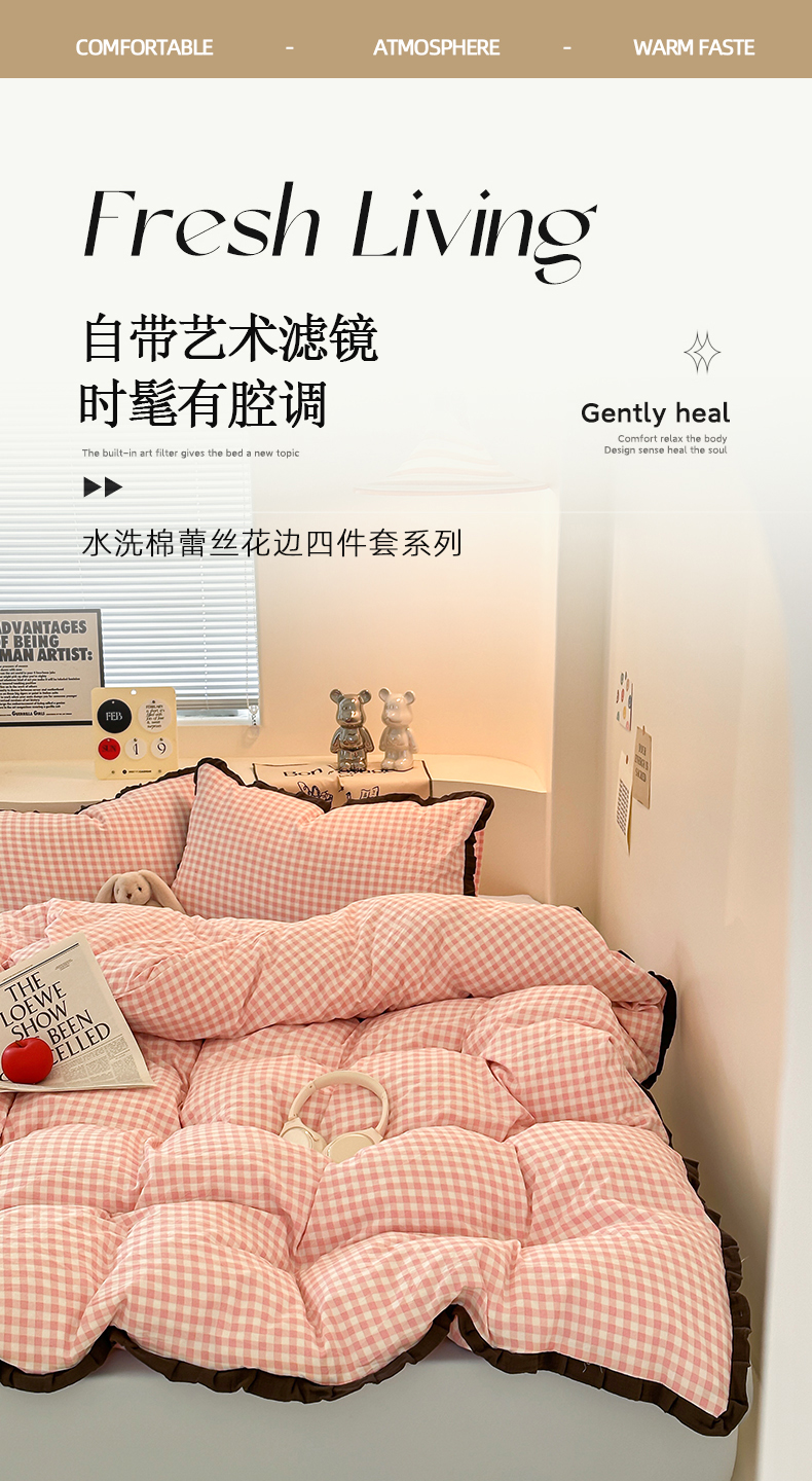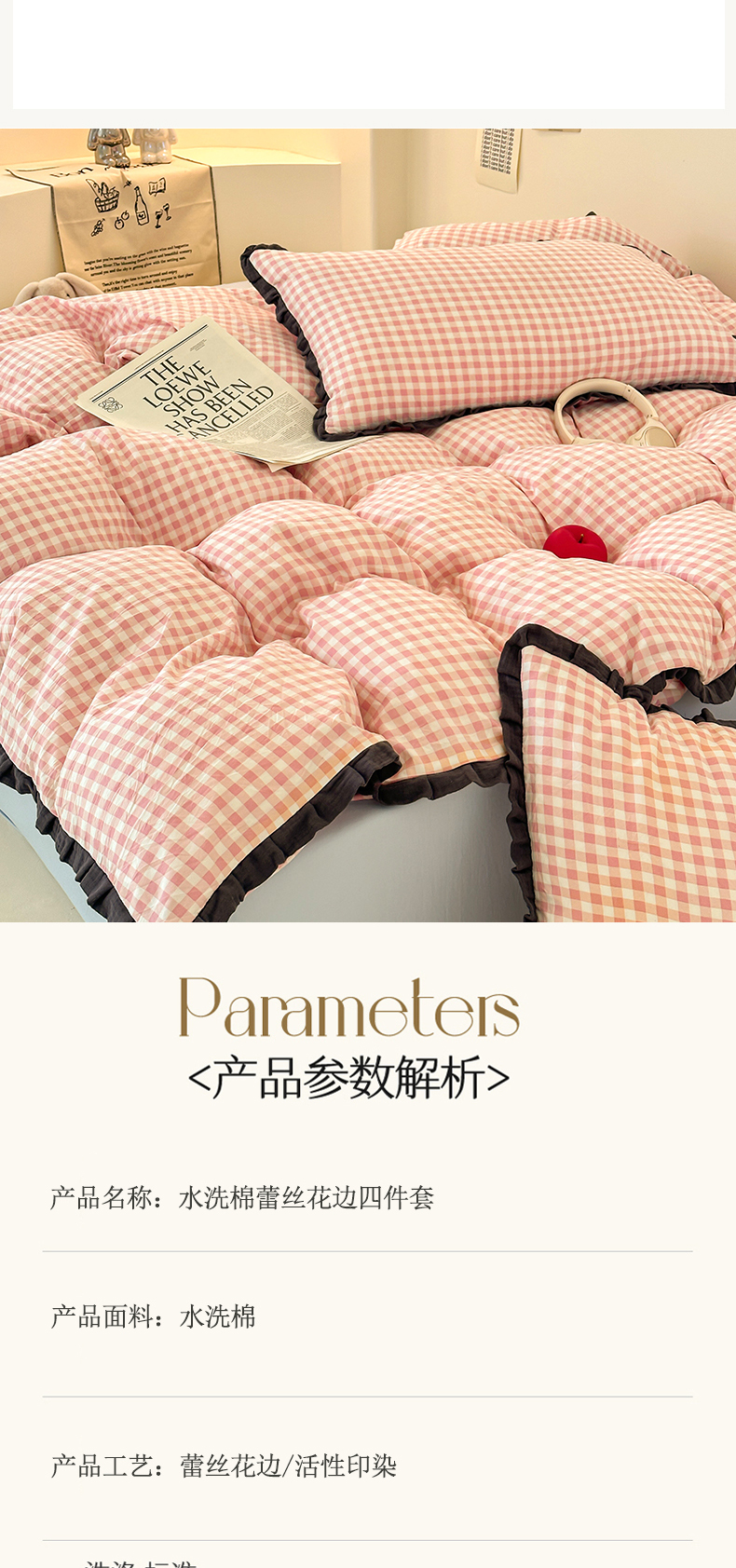 凯洛奇 2025新款1法式小清新蕾丝花边水洗棉四件套-风格二【提供买家秀】 皱皱纱花边-粉小格