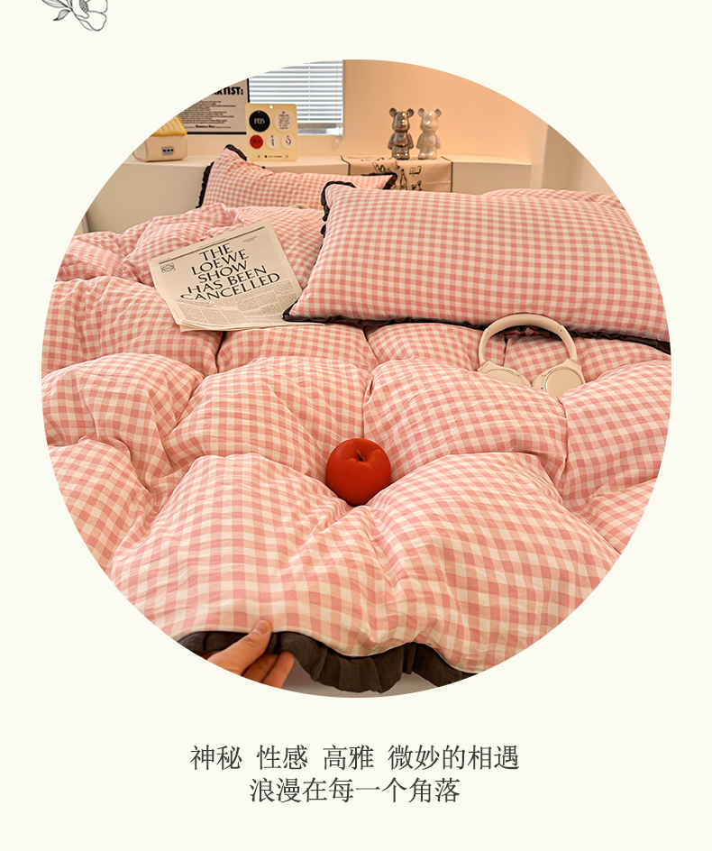 商品名称:凯洛奇 2025新款1法式小清新蕾丝花边水洗棉四件套-风格二【提供买家秀】 皱皱纱花边-粉小格