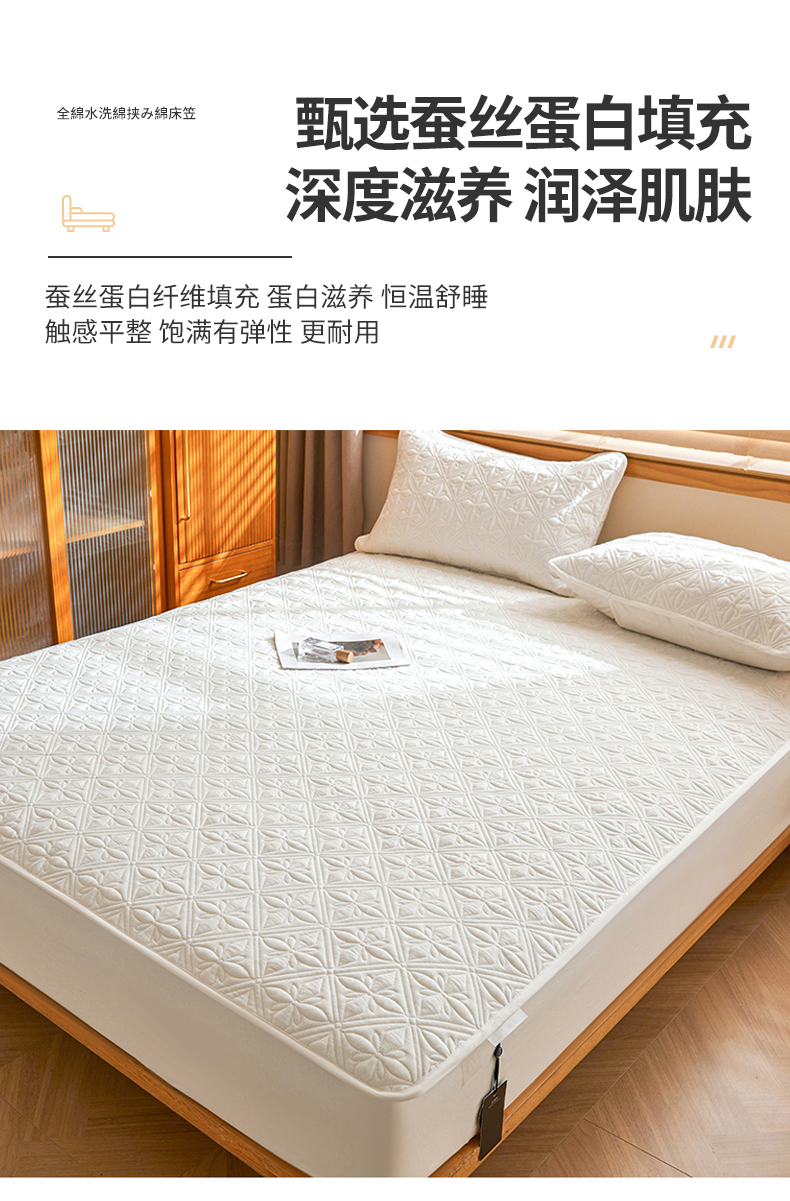3C 2025全棉蚕丝蛋白夹棉床笠 天星花-云朵白