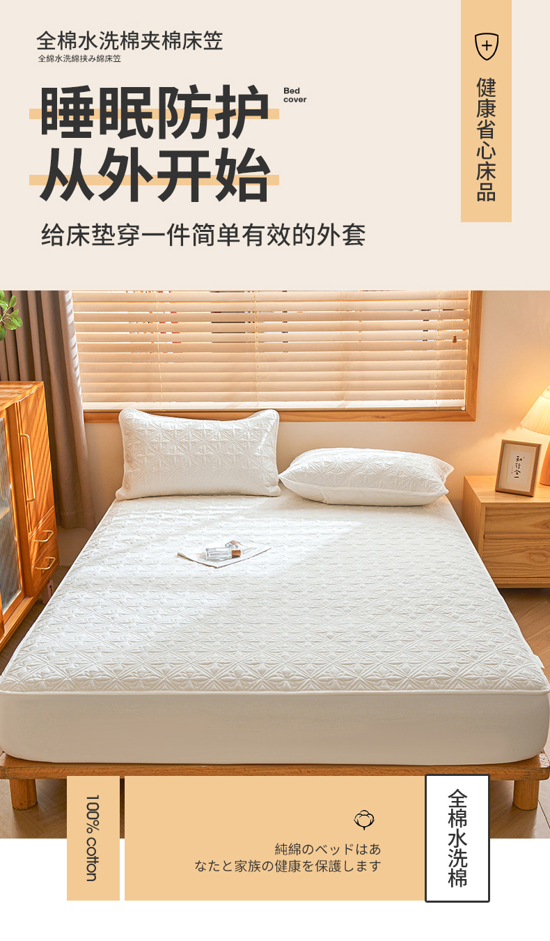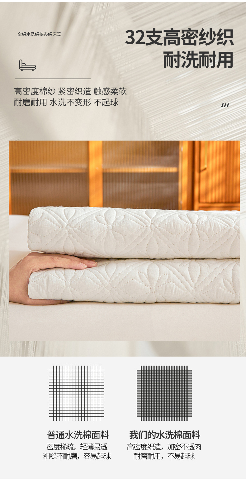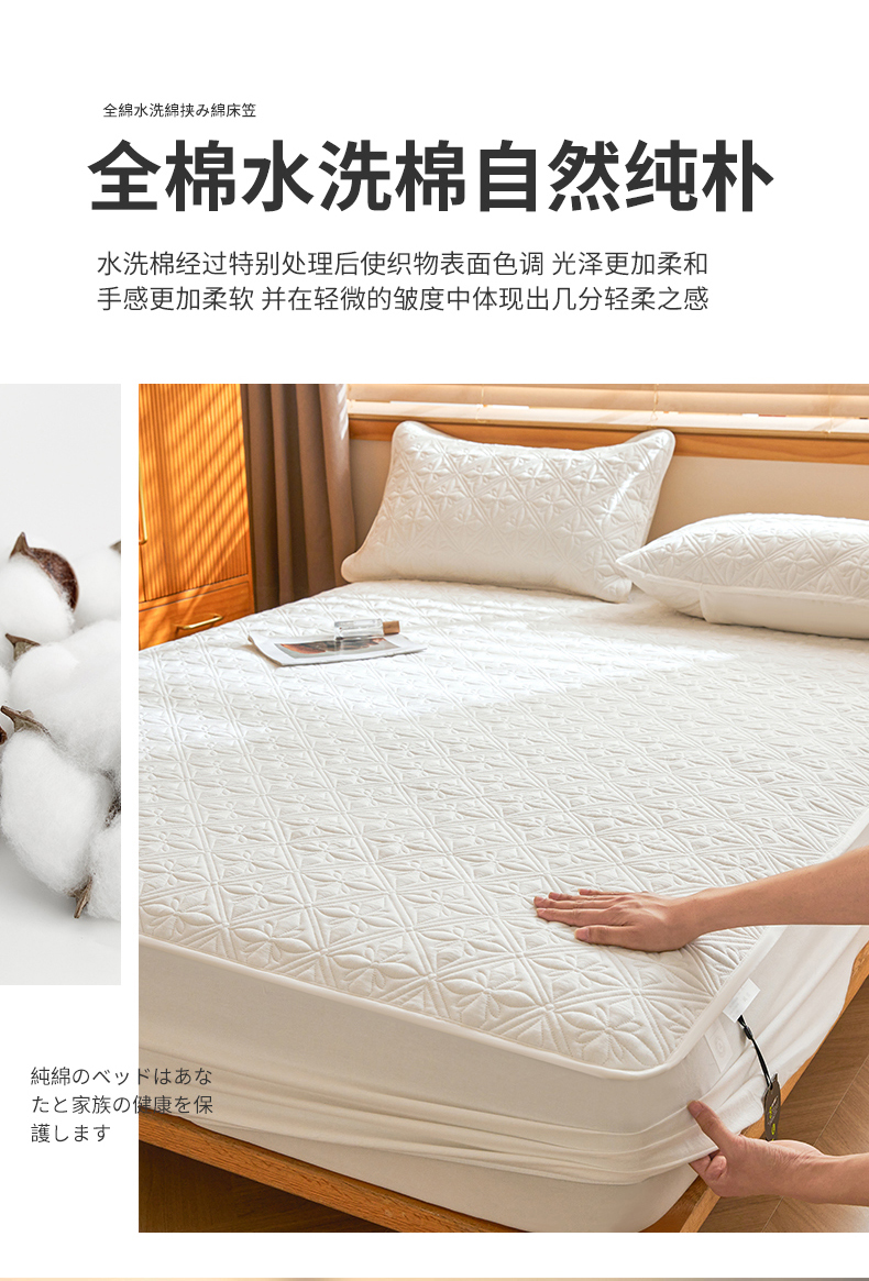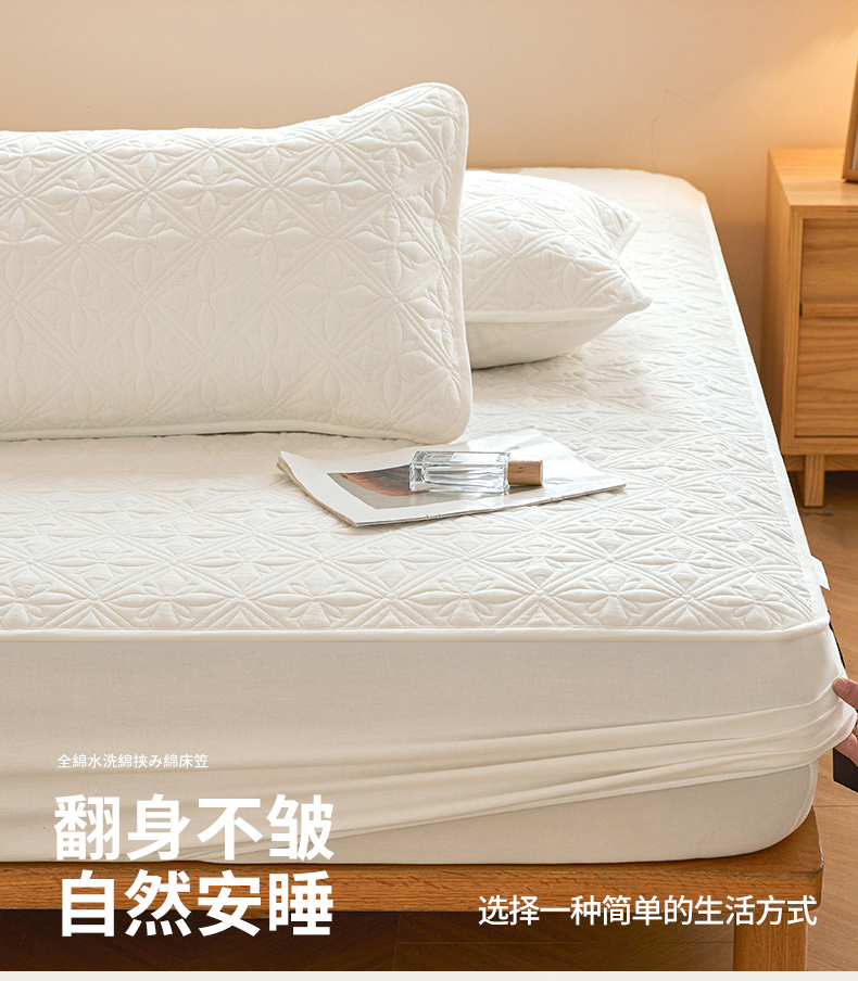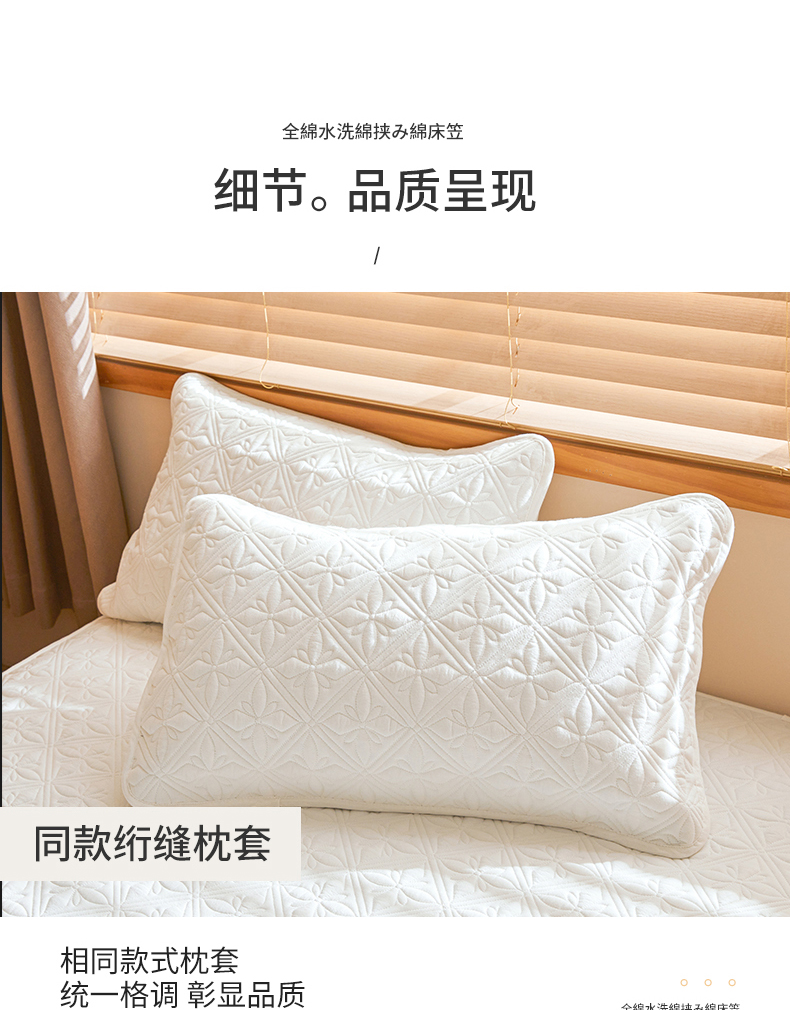 商品名称:3C 2025全棉蚕丝蛋白夹棉床笠 天星花-云朵白
