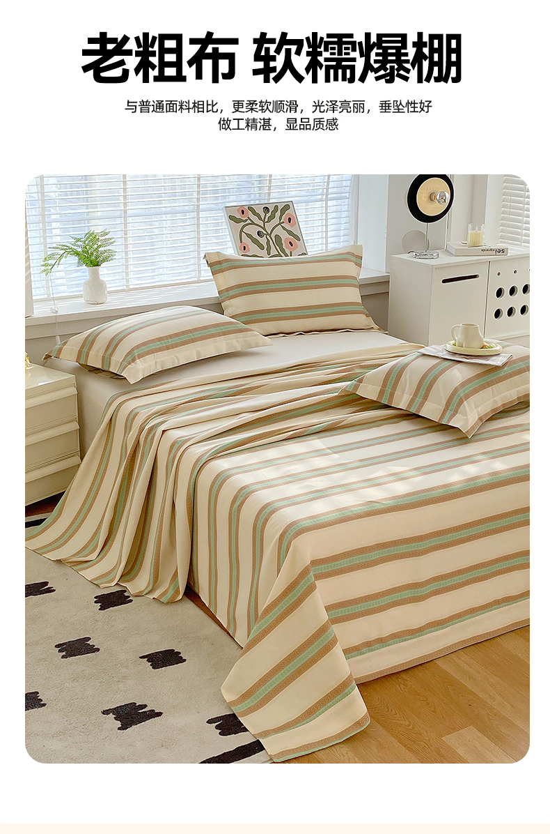 商品名称:凯磊2025新款老粗布印花单品床单床单单件 逸彩条纹