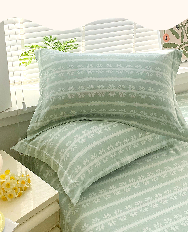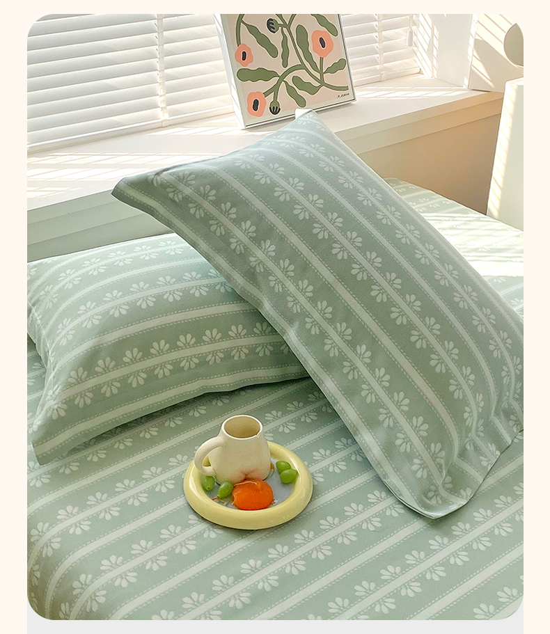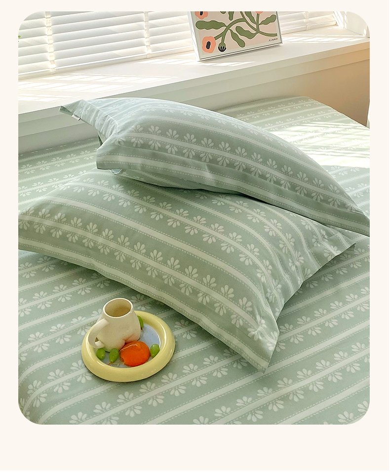 凯磊2025新款老粗布印花单品枕套枕套单件 甜纹悠居-绿