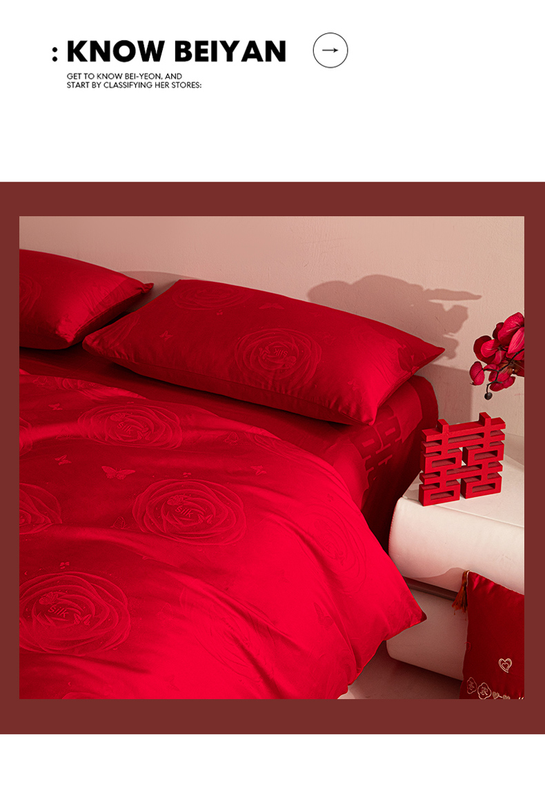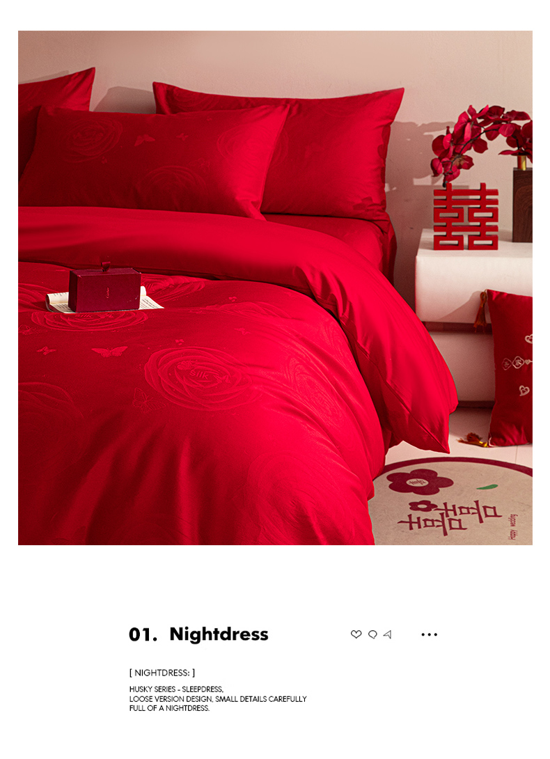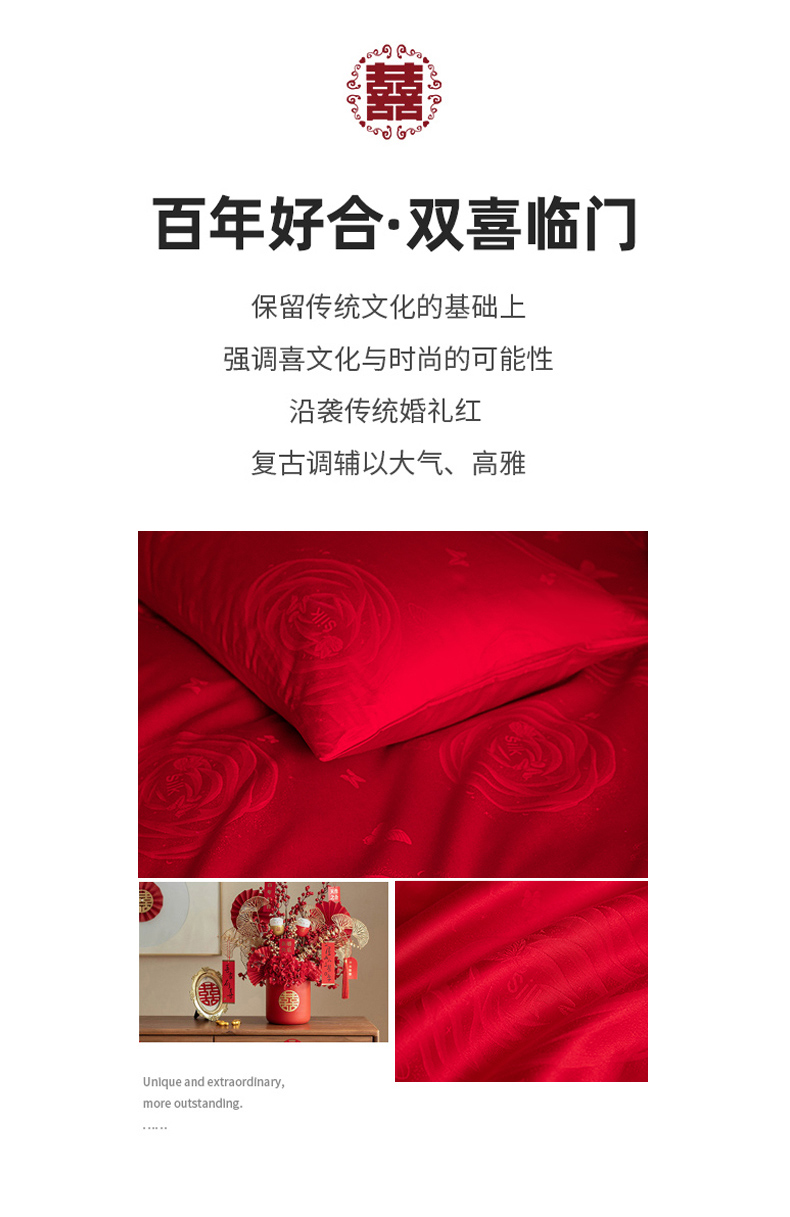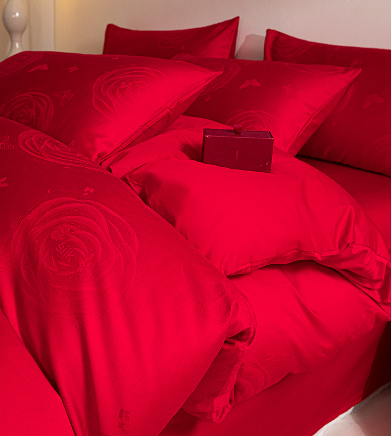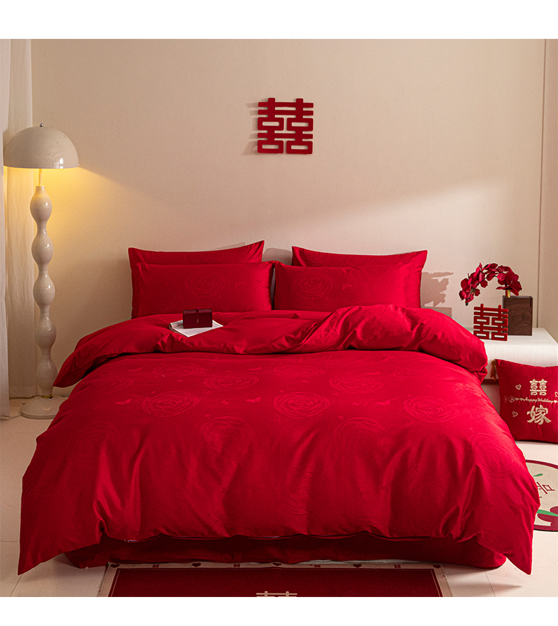商品名称:琪格格纺织 2025新款纯棉婚庆四件套结婚用品提花简约婚庆 花繁锦绣