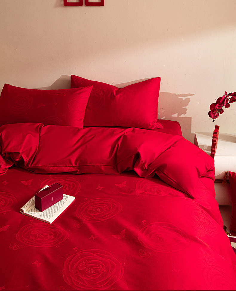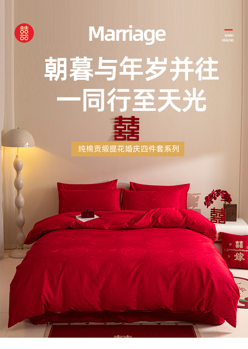 琪格格纺织 2025新款纯棉婚庆四件套结婚用品提花简约婚庆 花繁锦绣