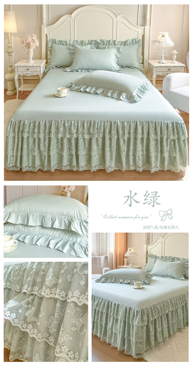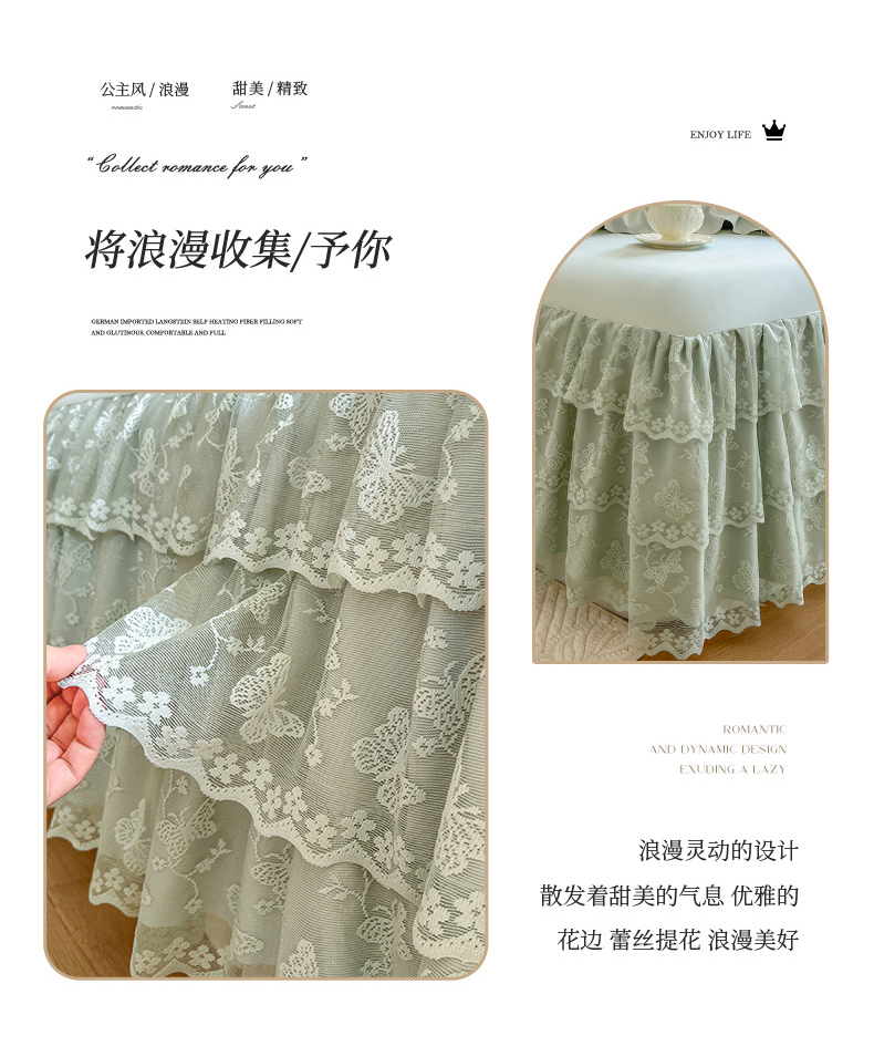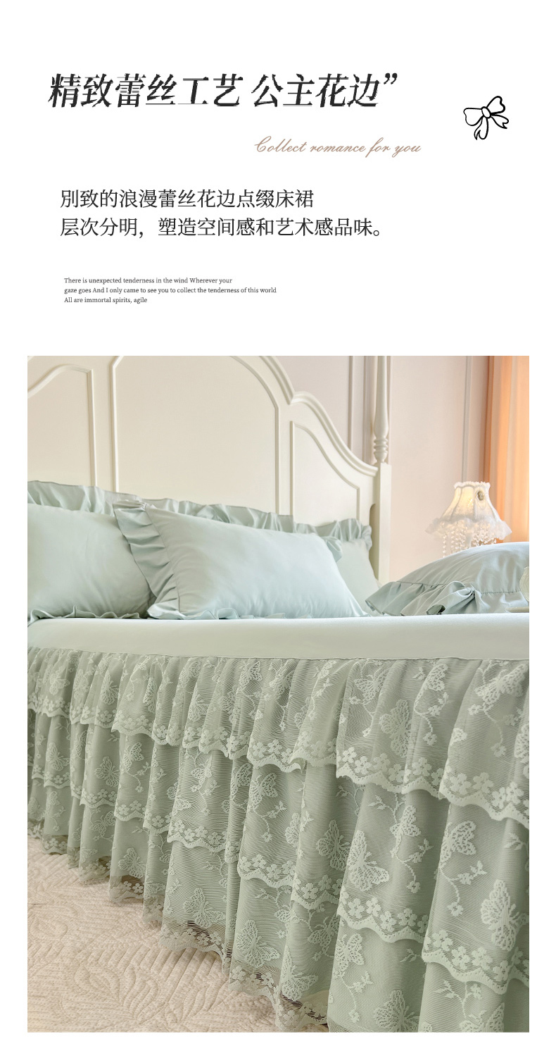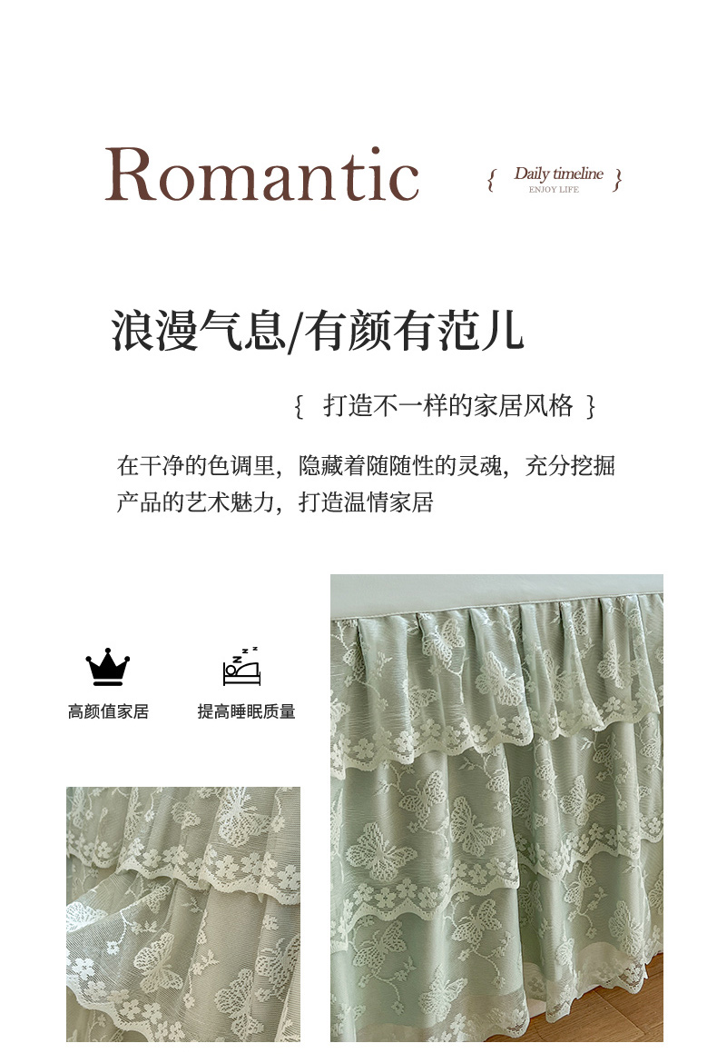 商品名称:乐朵家居 2025新款 25-2 蝶影 蕾丝床裙 -绿