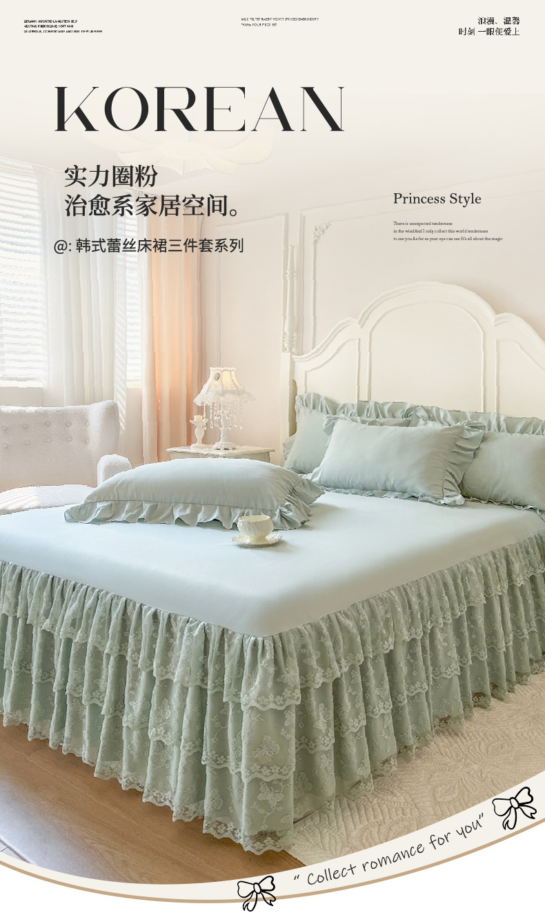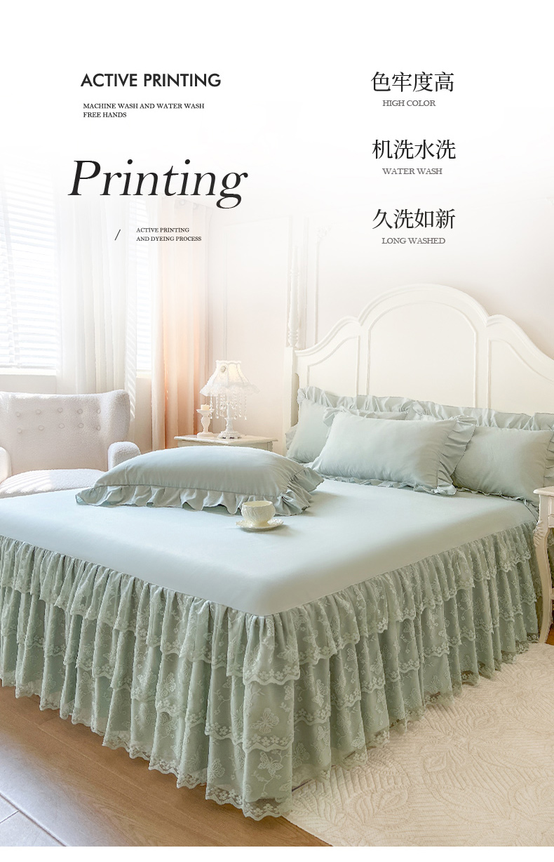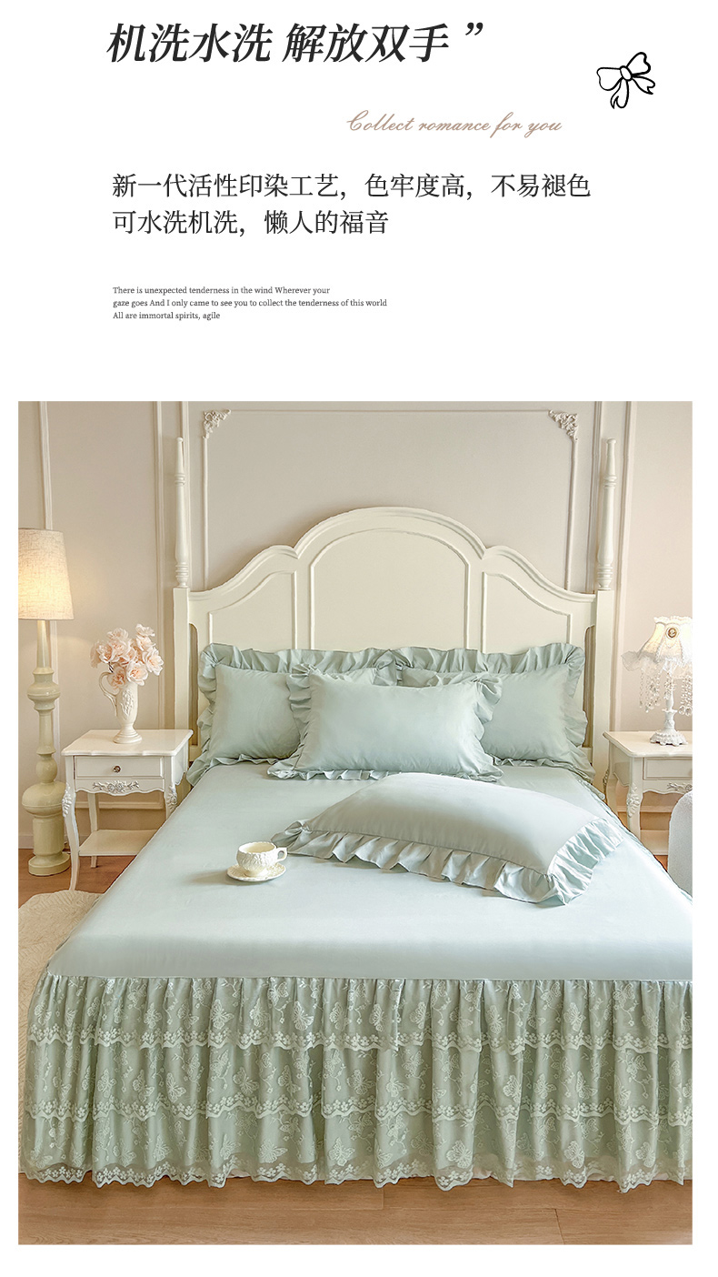 商品名称:乐朵家居 2025新款 25-2 蝶影 蕾丝床裙 -绿