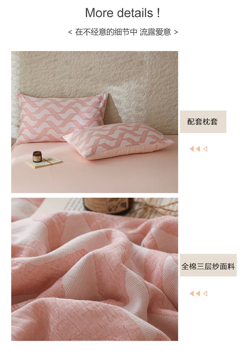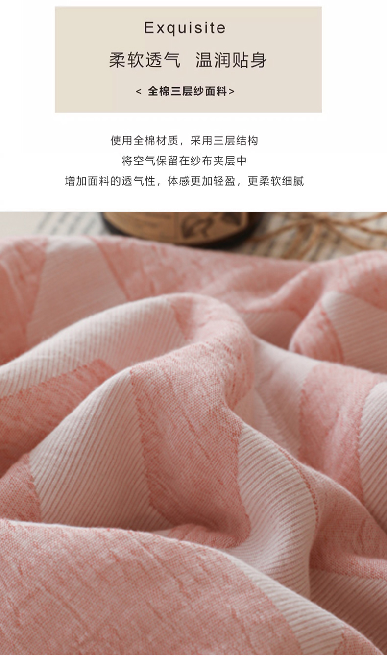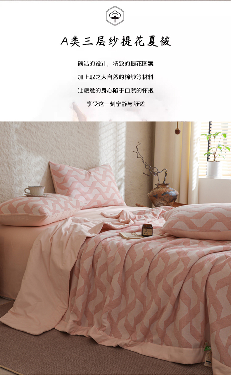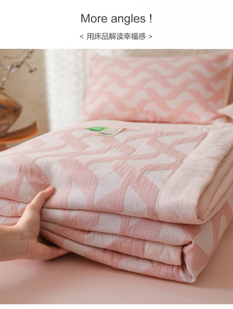 当前位置: 91家纺网 > 商品网购 > 床品套件 > 四件套 > 提花四件套 > 眠博士 2025新款A类全棉包边三层纱提花夏被四件套 包边三层纱夏被-慕斯-粉