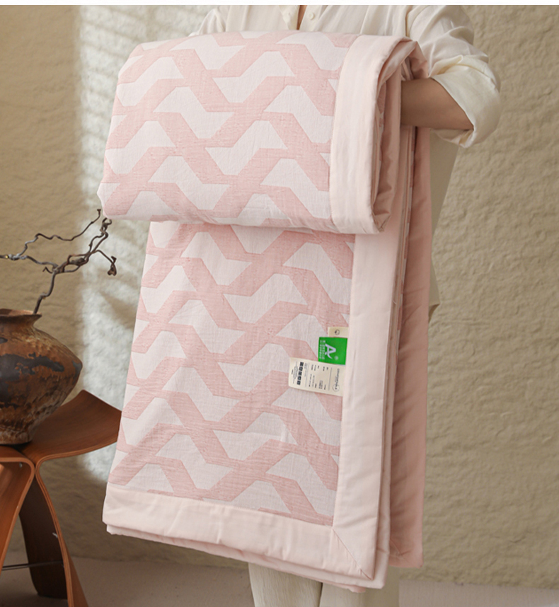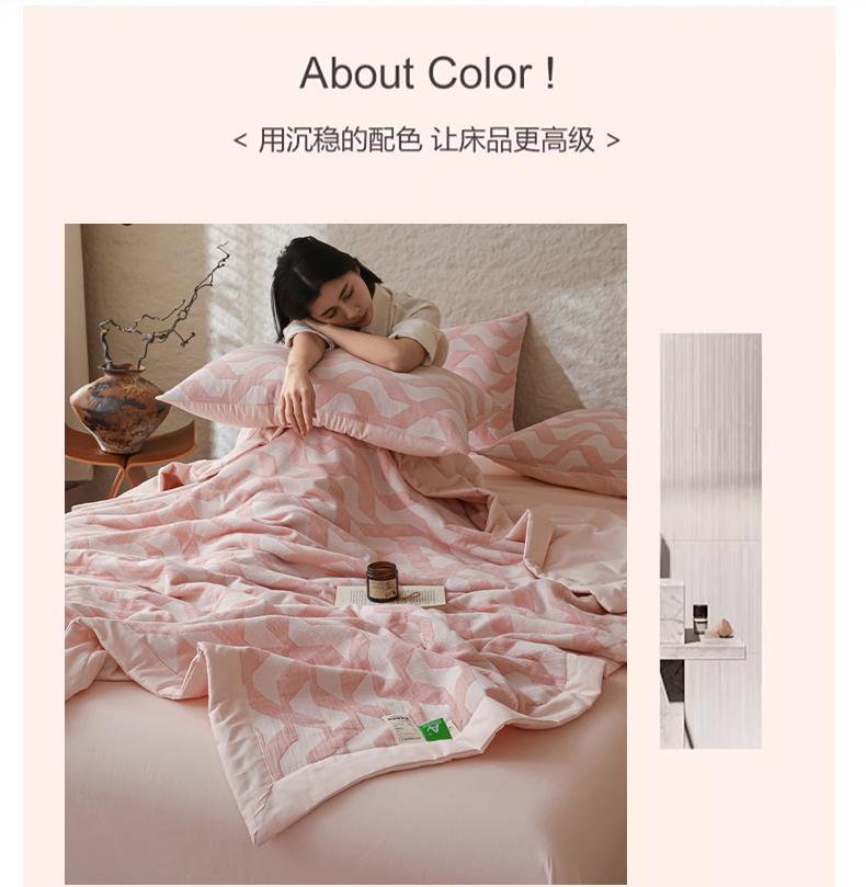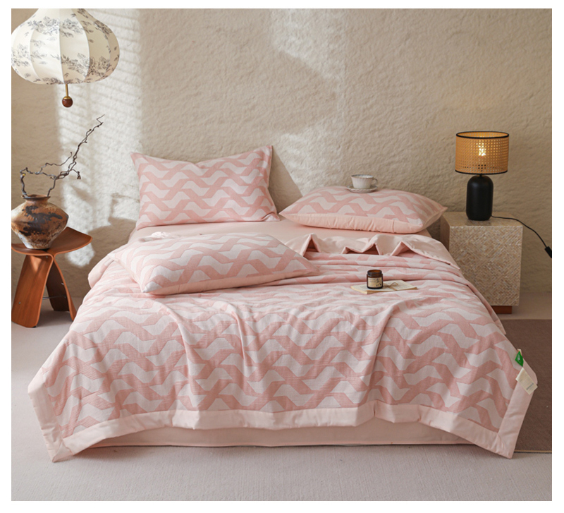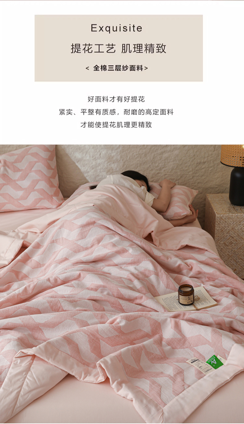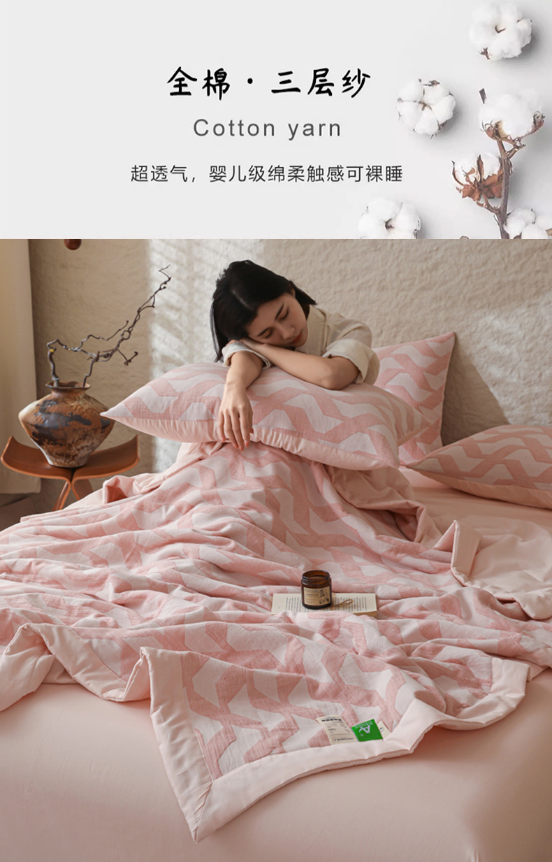 当前位置: 91家纺网 > 商品网购 > 床品套件 > 四件套 > 提花四件套 > 眠博士 2025新款A类全棉包边三层纱提花夏被四件套 包边三层纱夏被-慕斯-粉